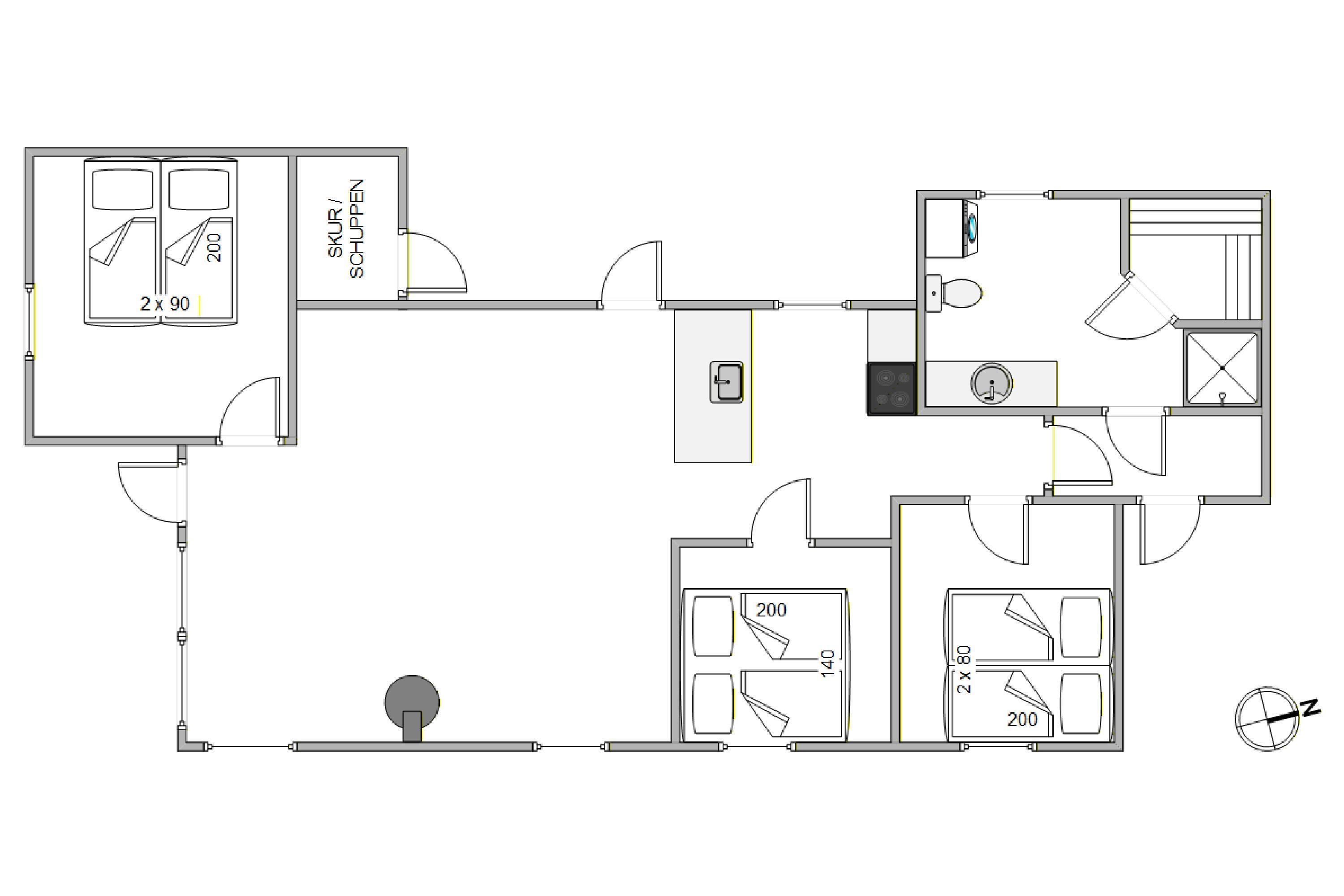 Sommerhuset på Klitdalen 11 er indrettet med 3 soverum, som alle er med dobbeltsenge.