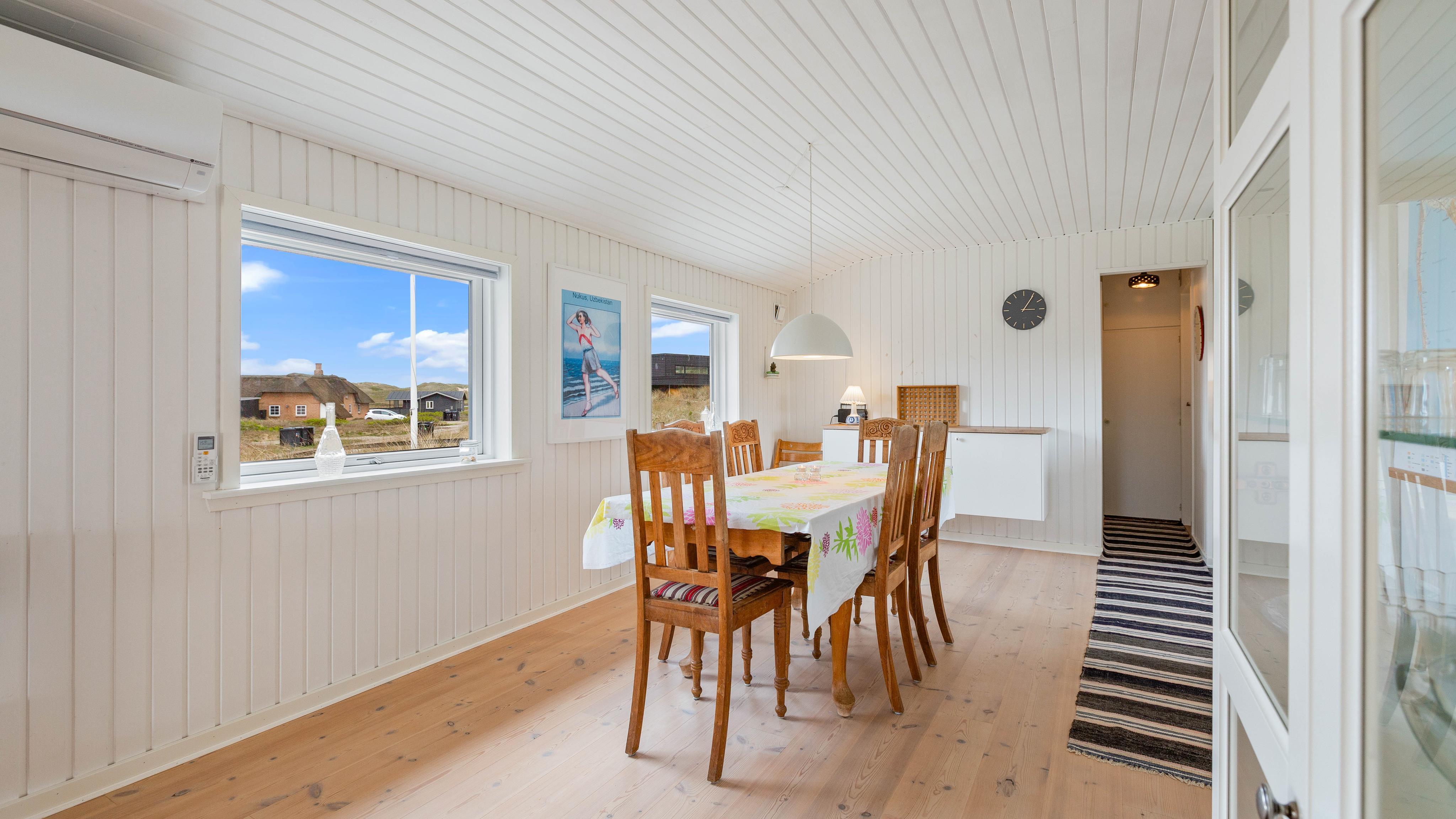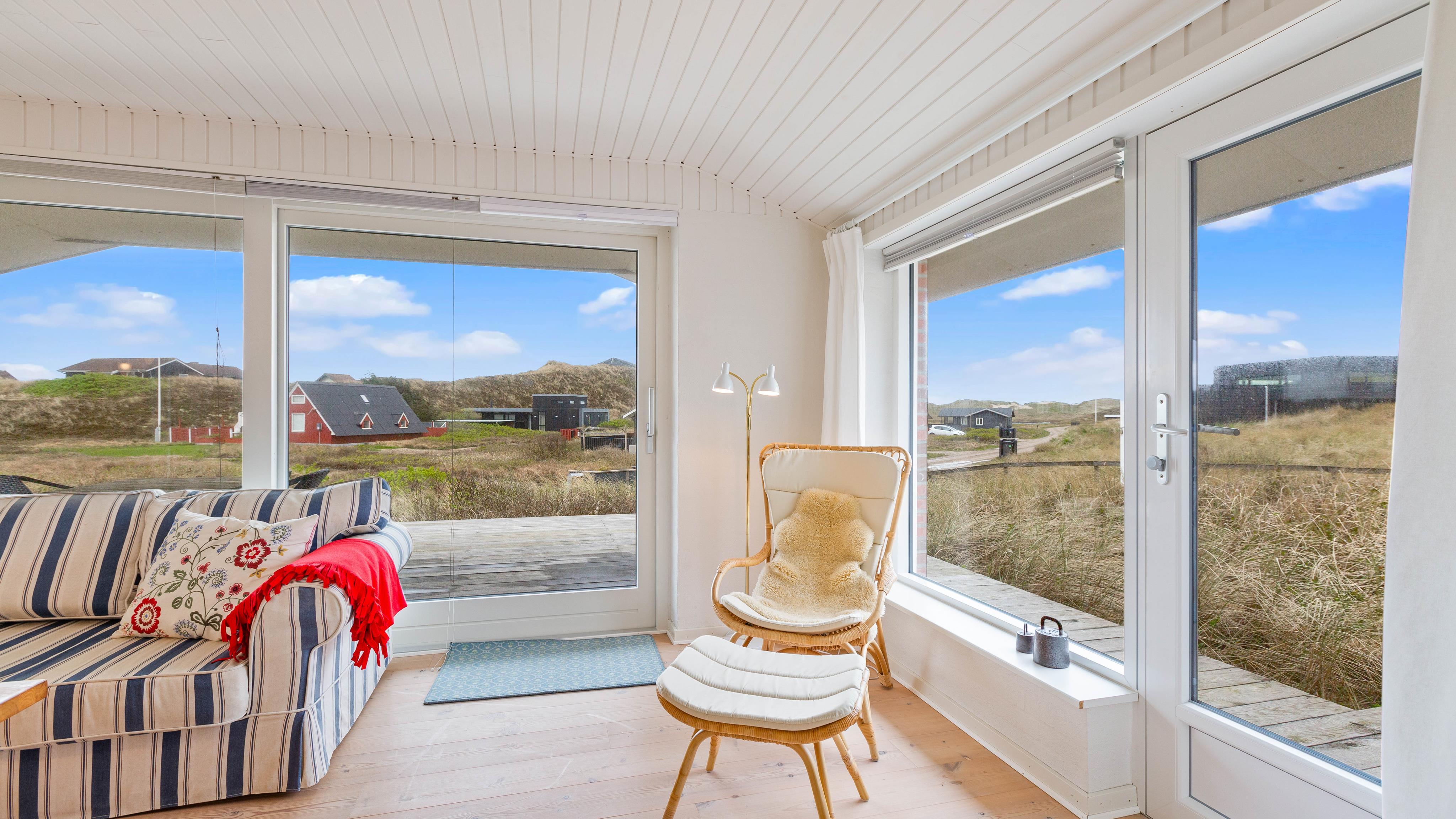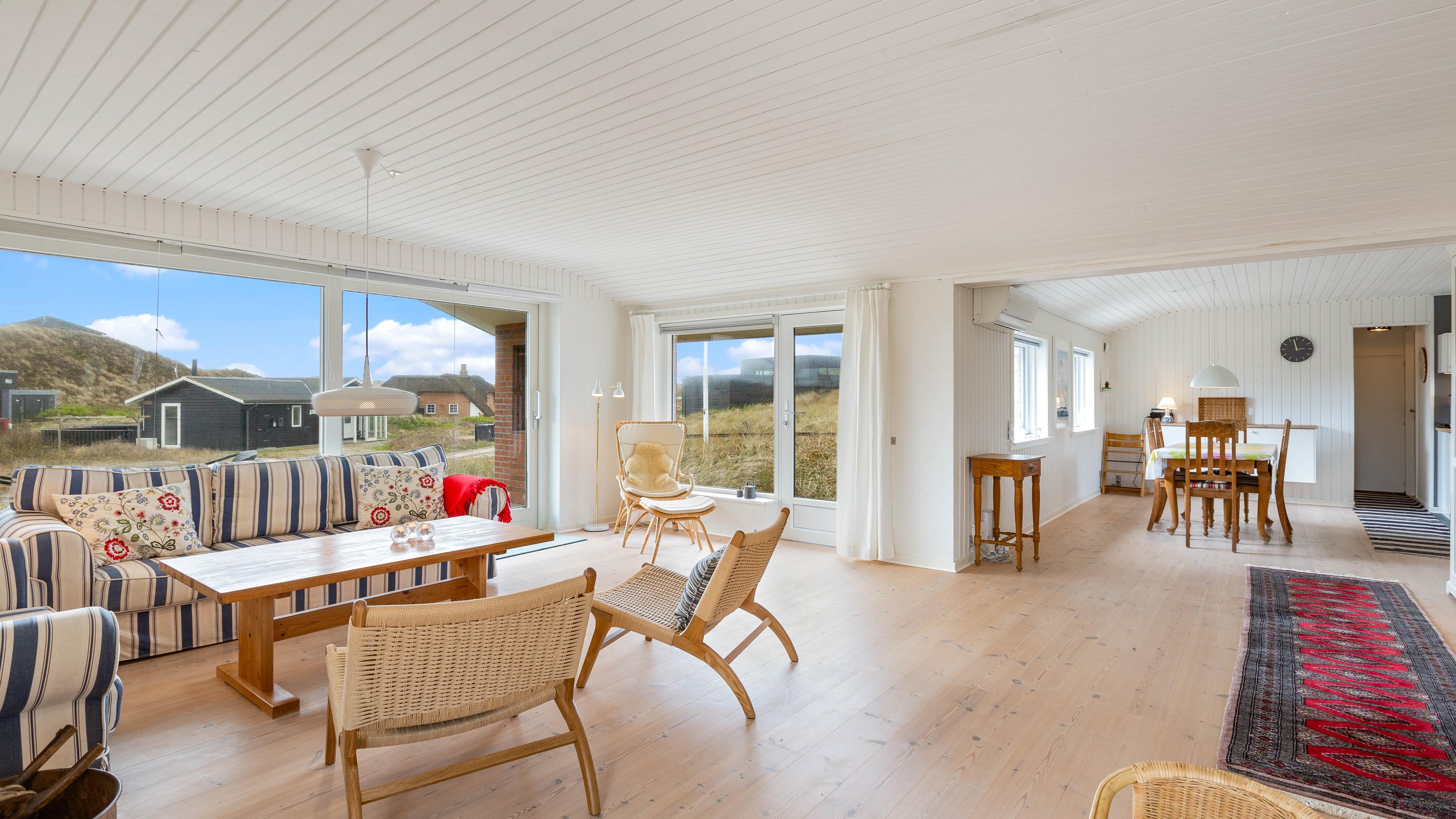 Der er kun ca. 400 meter fra feriehuset til den fine sandstrand og Vesterhavets brusende bølger. Den fine sandstrand indbyder til lange gåture, som jeres hund helt sikkert vil elske. Vesterhavet er et besøg værd på alle tider af året, så I kan bygge de største sandslotte om sommeren, mens I om efteråret og vinteren har chancen for at finde rav efter en storm.
