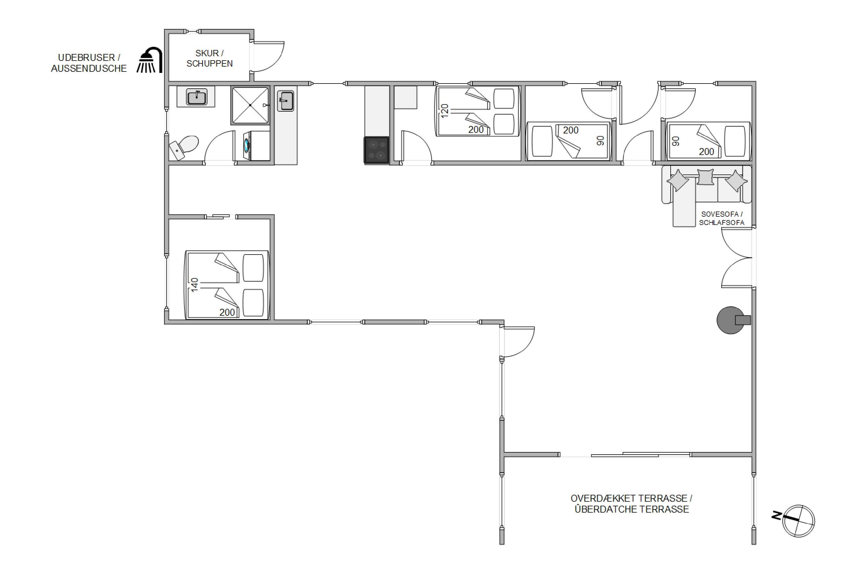 Har I været en tur på stranden, har i mulighed for at benytte jer af feriehusets udenruser, til at vaske det værste sand af kroppen. OBS. Udebruseren er åben i perioden april-november.