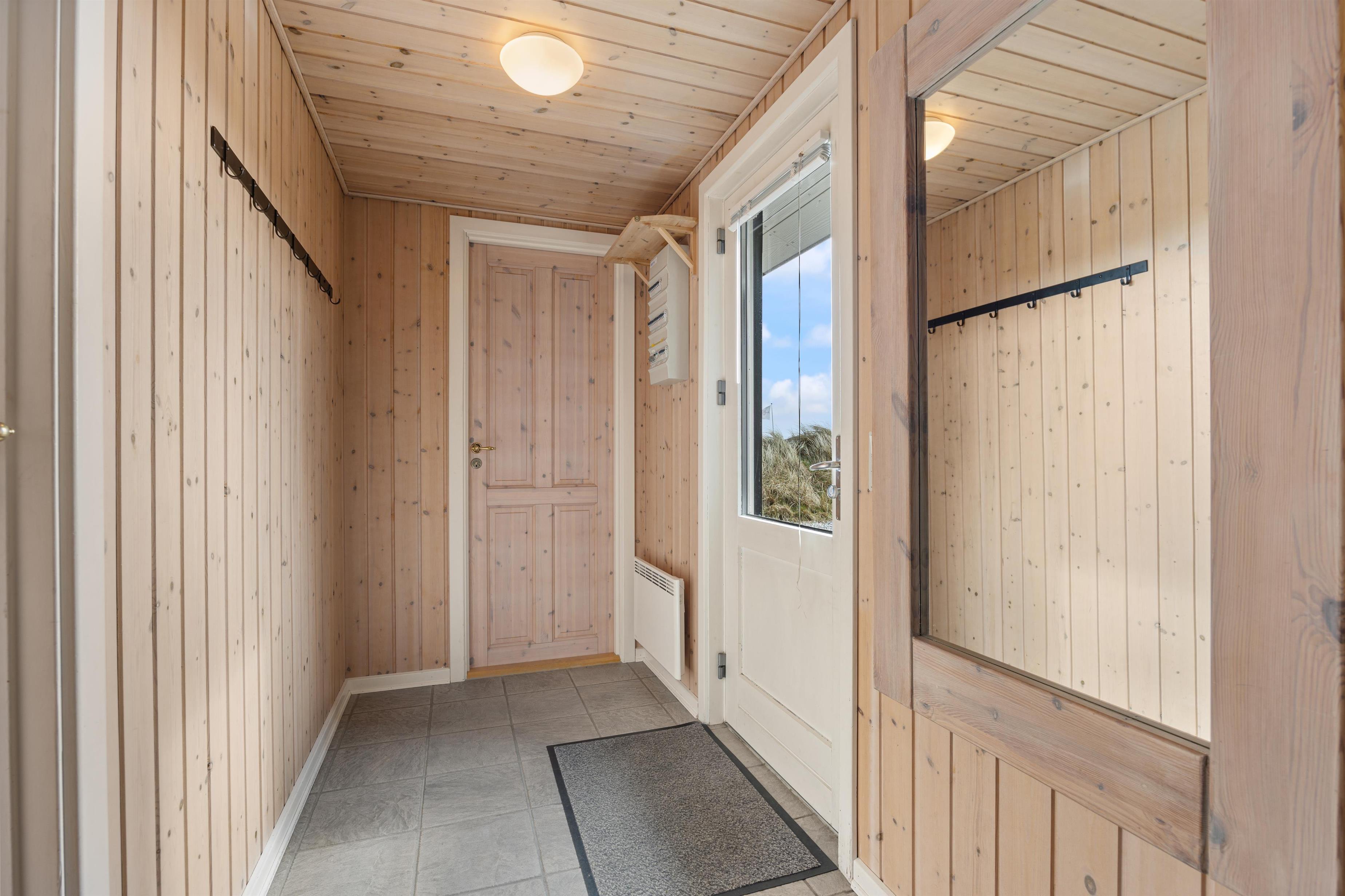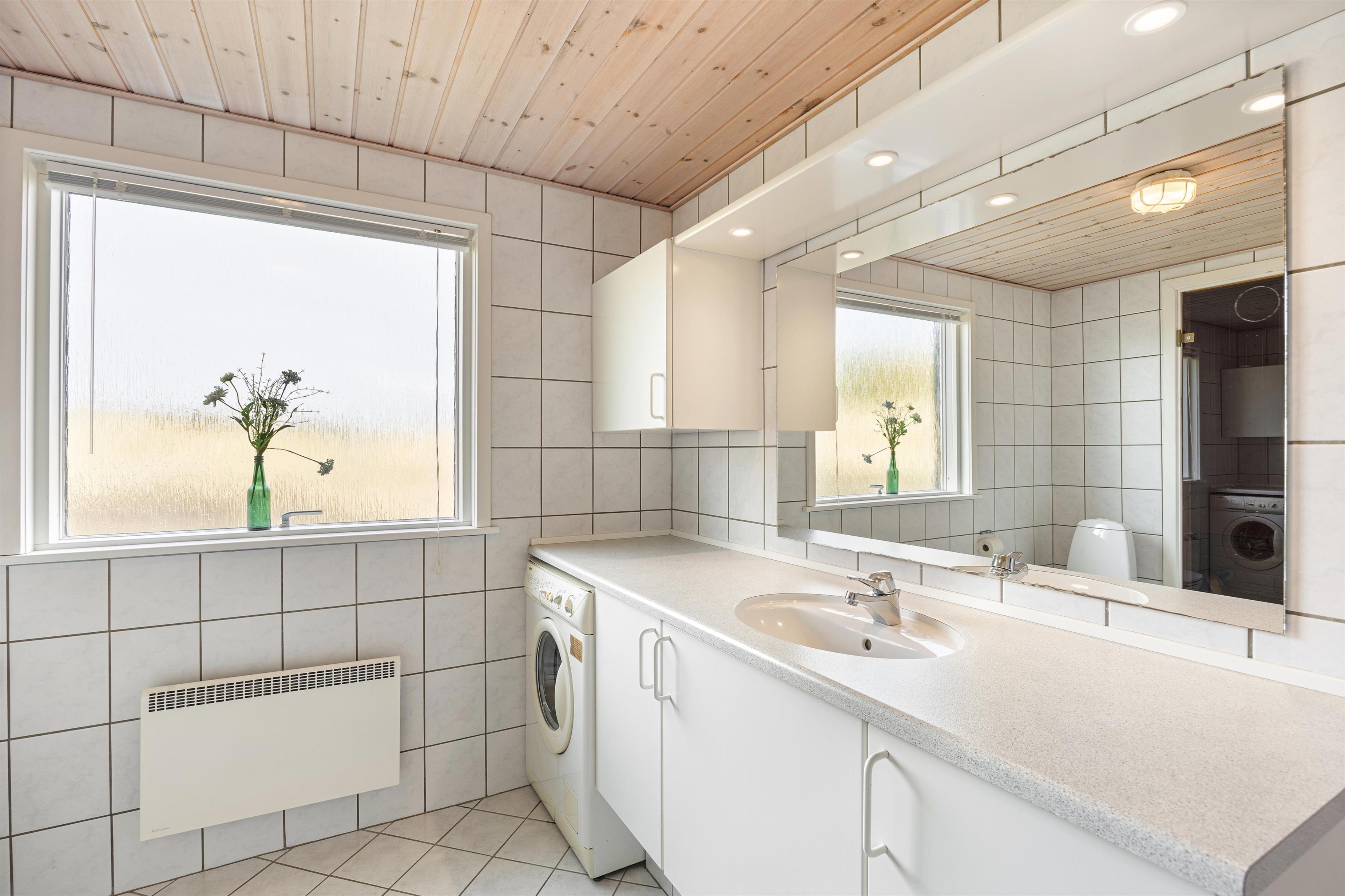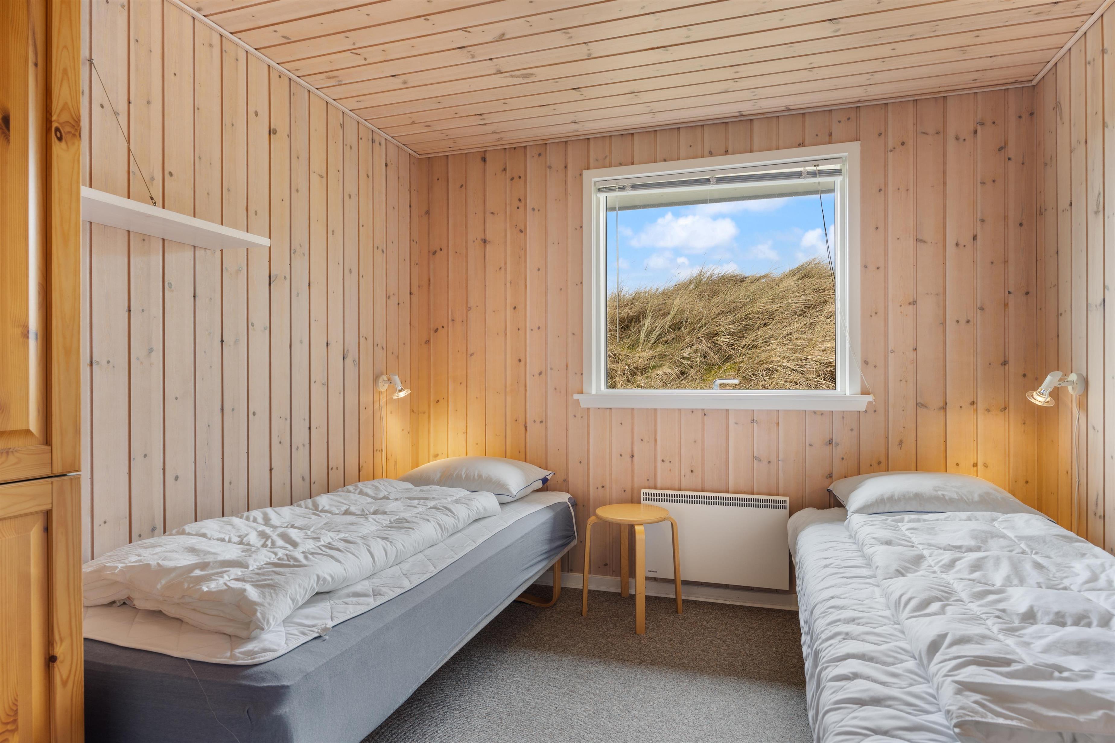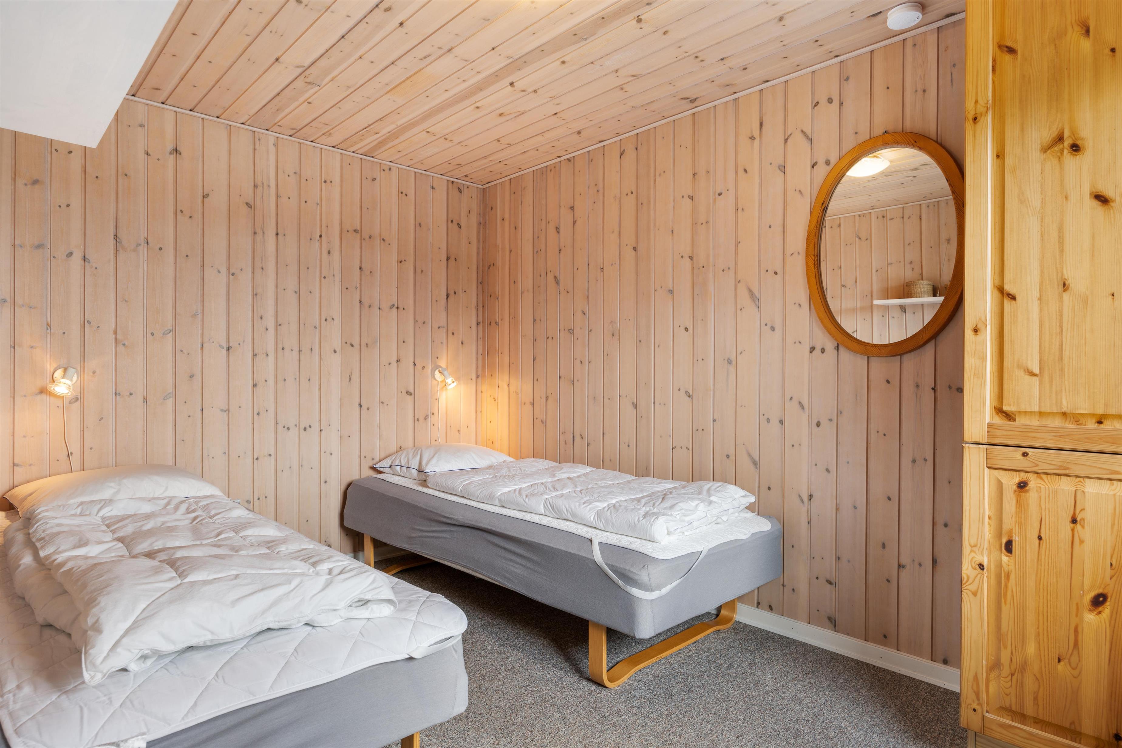 Fordelt over 3 soverum kan indretningen med 1 dobbeltseng og 4 enkeltsenge imødekomme jeres behov for komfort og afslapning. Sommerhuset er også udstyret med en praktisk vaskemaskine, der letter alle jeres daglige pligter. Sommerhusets køkken er stort og veludstyret køkken med bl.a. køleskab med fryser på 18 liter, opvaskemaskine og mikroovn. Rigtigt lækkert, lyst og rummeligt badeværelse med bruseniche, sauna, vaskemaskine og gulvvarme. Sommerhuset fremstår lyst og venligt, hvidmalet vægge og lofter.