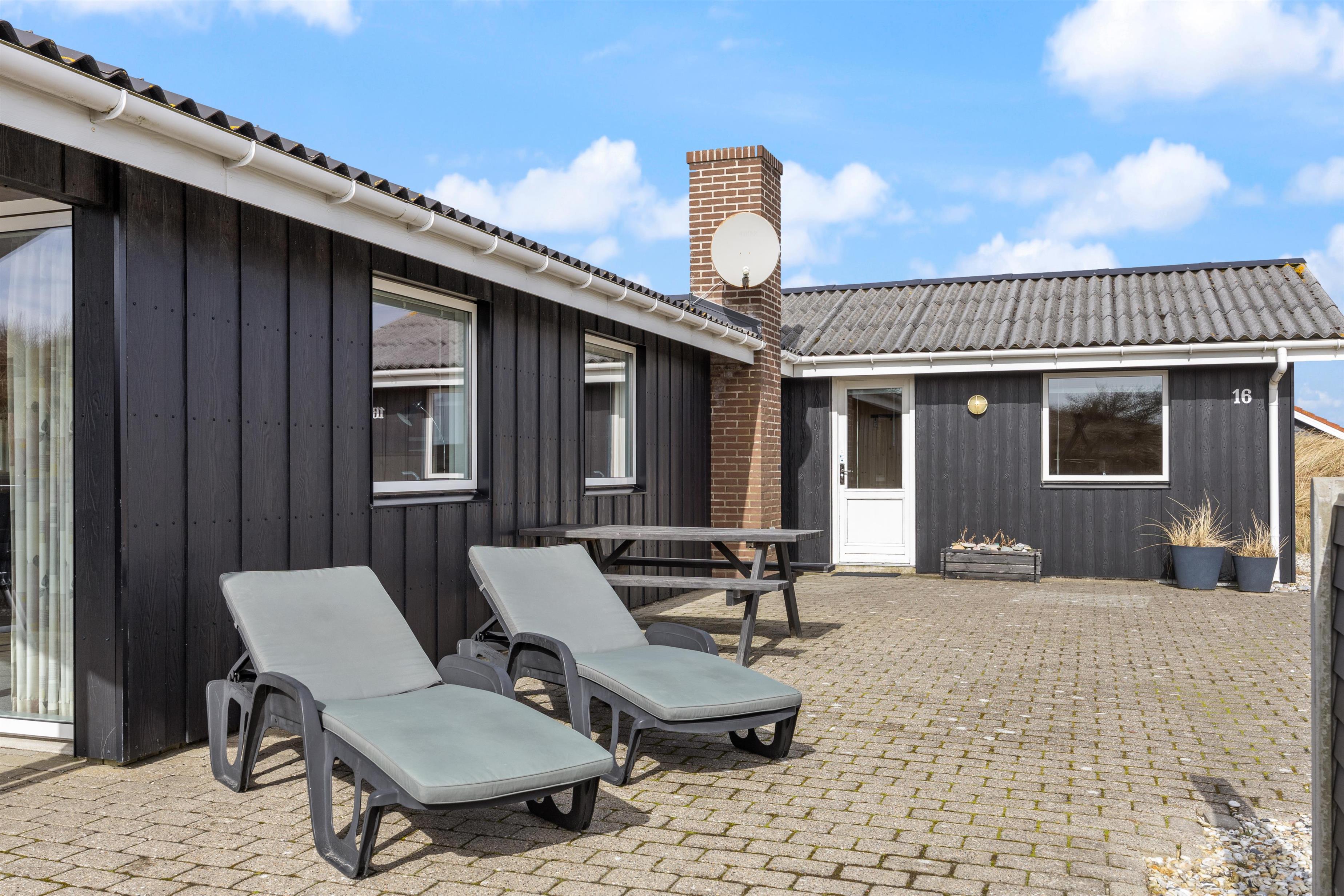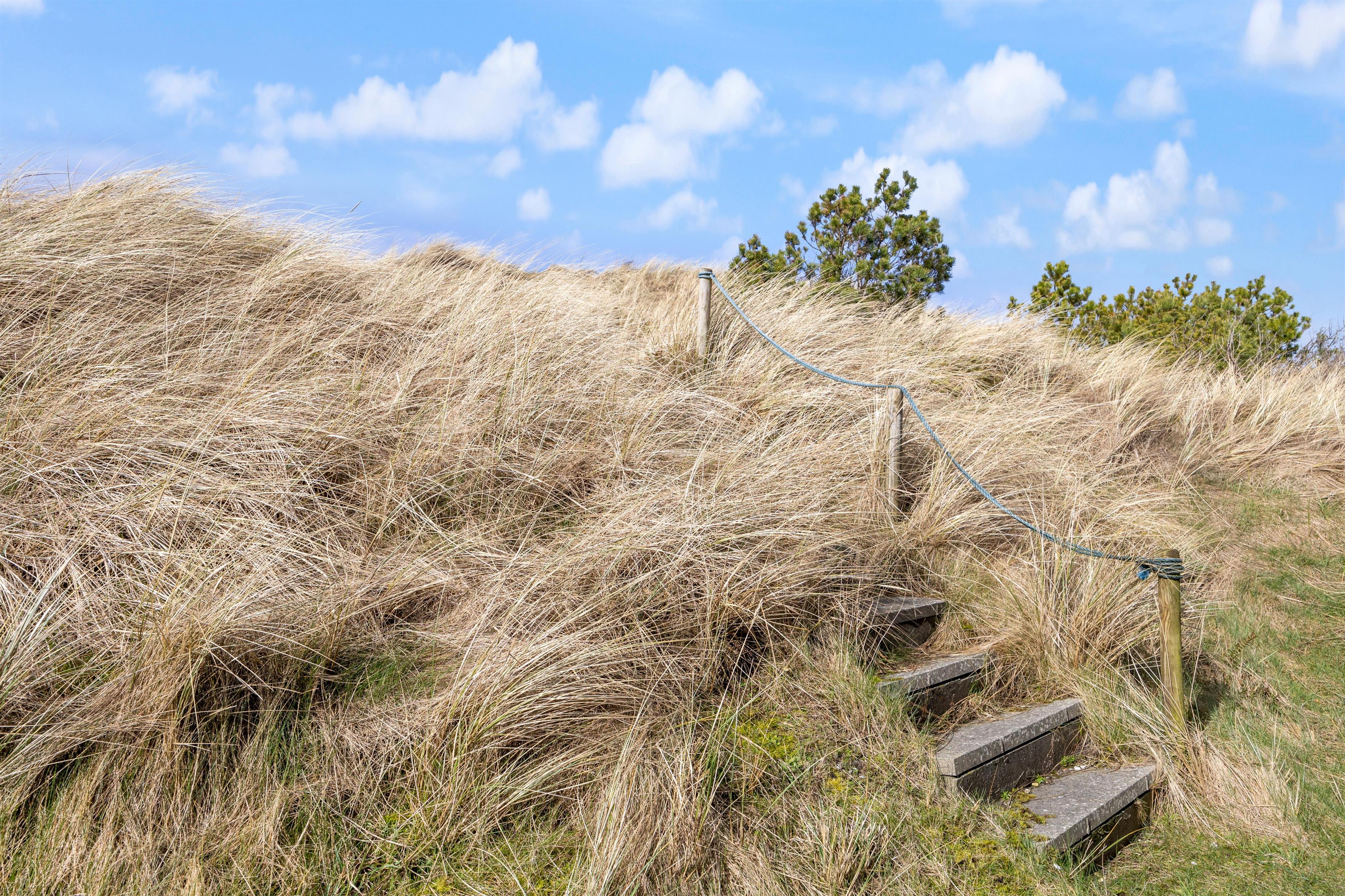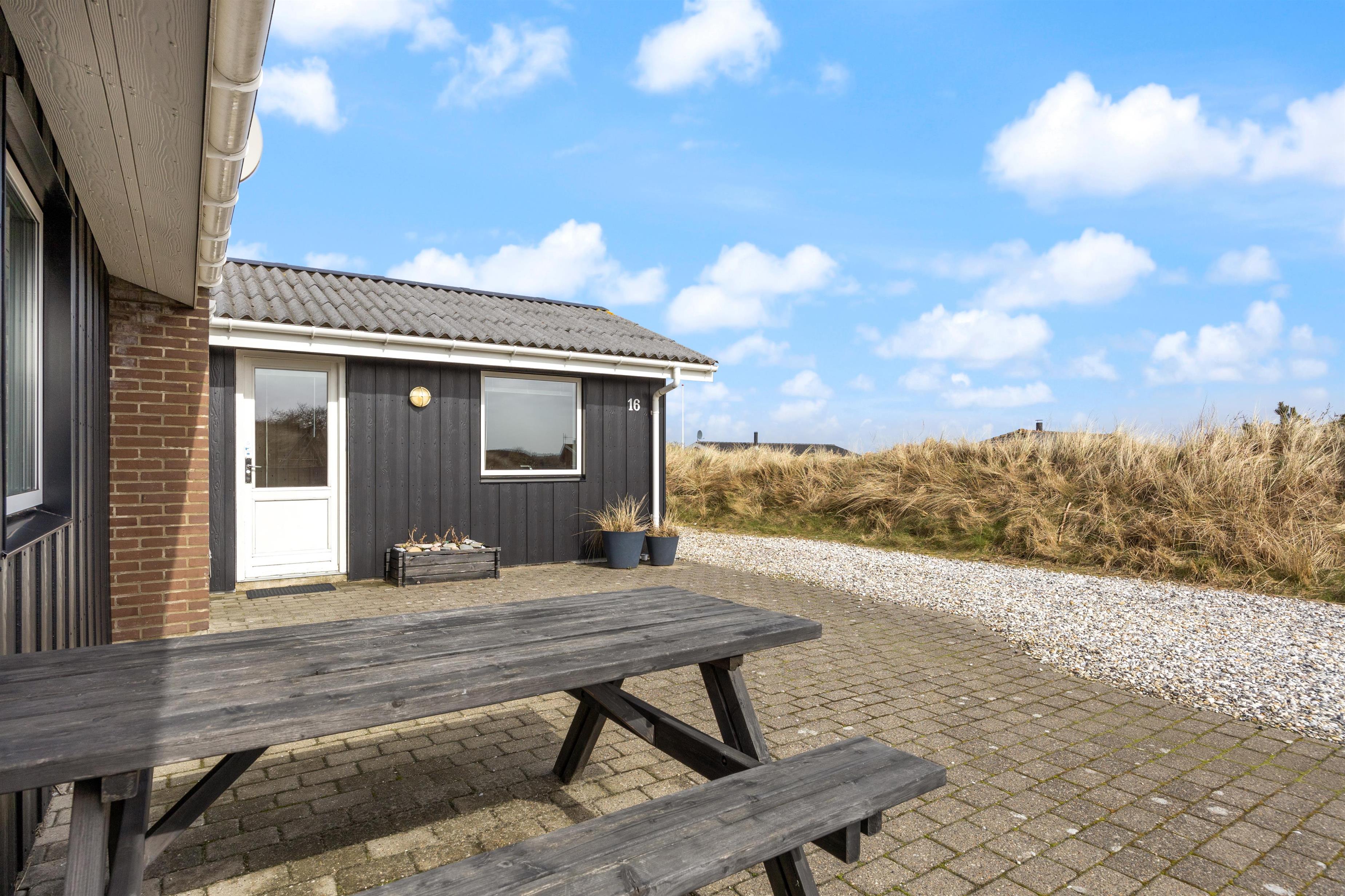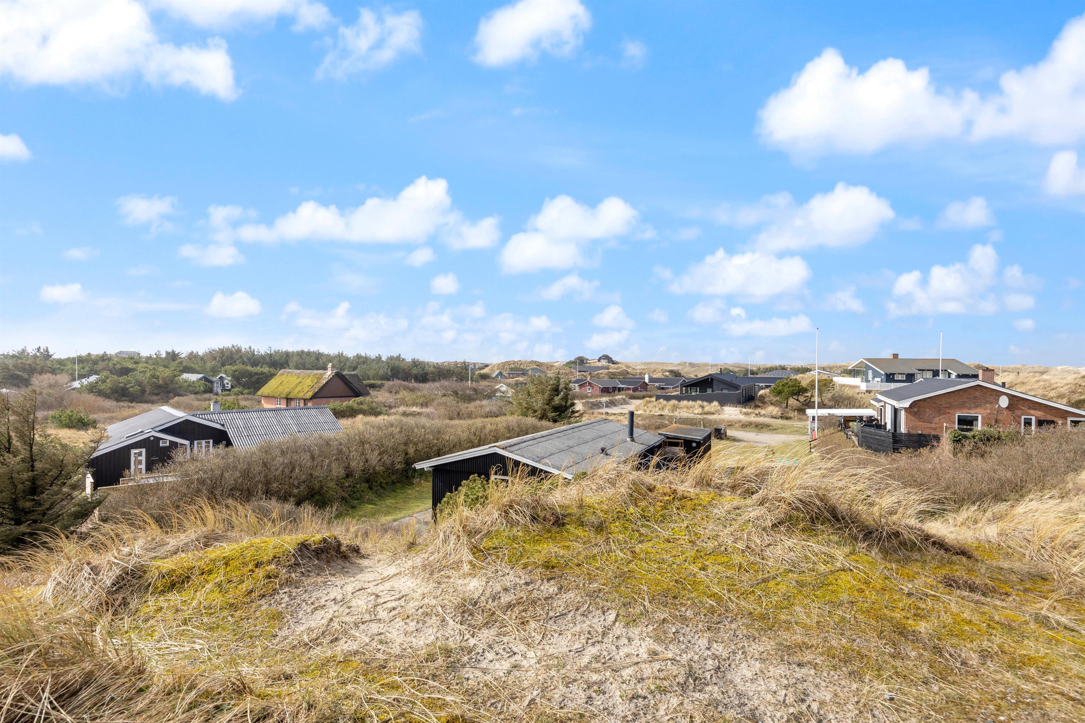 Sommerhuset ligger på en stille og rolig stikvej og blot 550 meter fra stranden i Houvig, og sommerhusets ydre er bestemt lige så charmerende som dets indre. Den overdækkede og afskærmede terrasse inviterer til lange grillmiddage med de medfølgende havemøbler, og I kan se børnene lege i sandkassen. Når solen går ned, kan I nyde en aften i haven med en dejlig grillmad. Med blot 2400 meter til indkøbsmuligheder er det nemt at proviantere til en afslappende dag i sommerhusets naturskønne omgivelser.