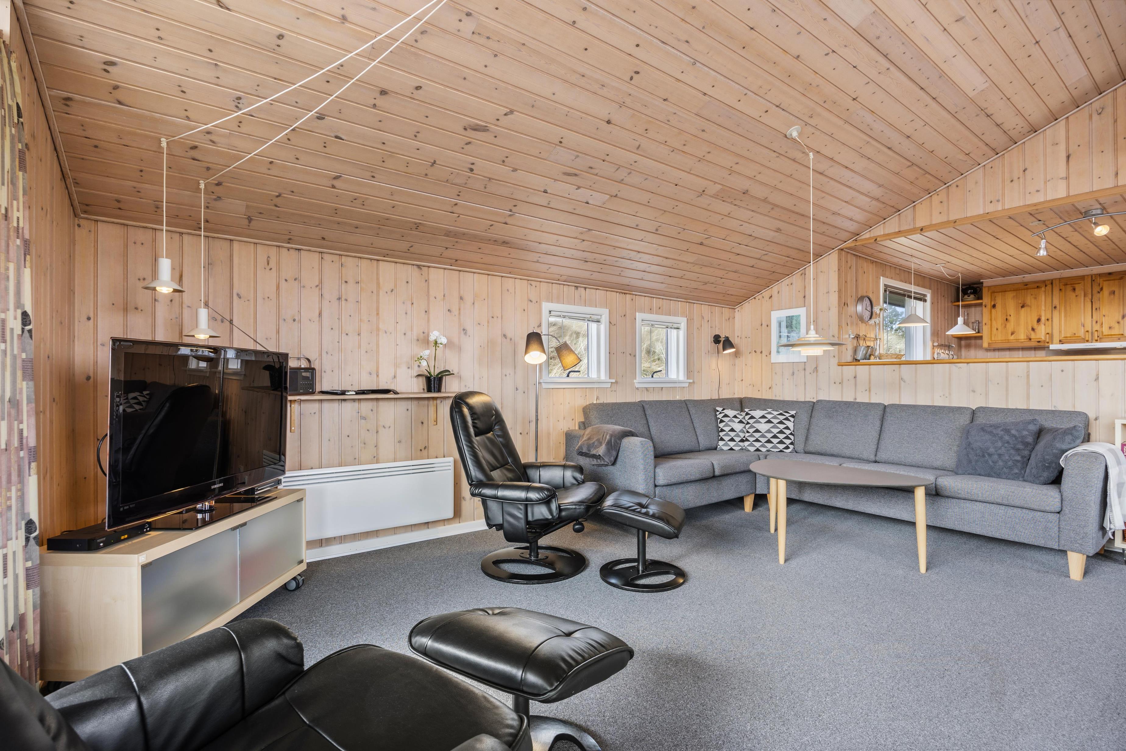En enkelt hund er tilladt, så jeres familie kan nyde ferien sammen. Som et alternativ opvarmningsmiddel til brændovnen, råder husets også over en praktisk luft-til-luft varmepumpe, der sikrer komfortabel og billigere opvarmning hele året rundt. Badeværelset byder også på gulvvarme, der gør morgenerne lidt mere behagelige, og hvis I virkelig vil blive varmet igennem, kan I tage en tur i sommerhusets sauna.