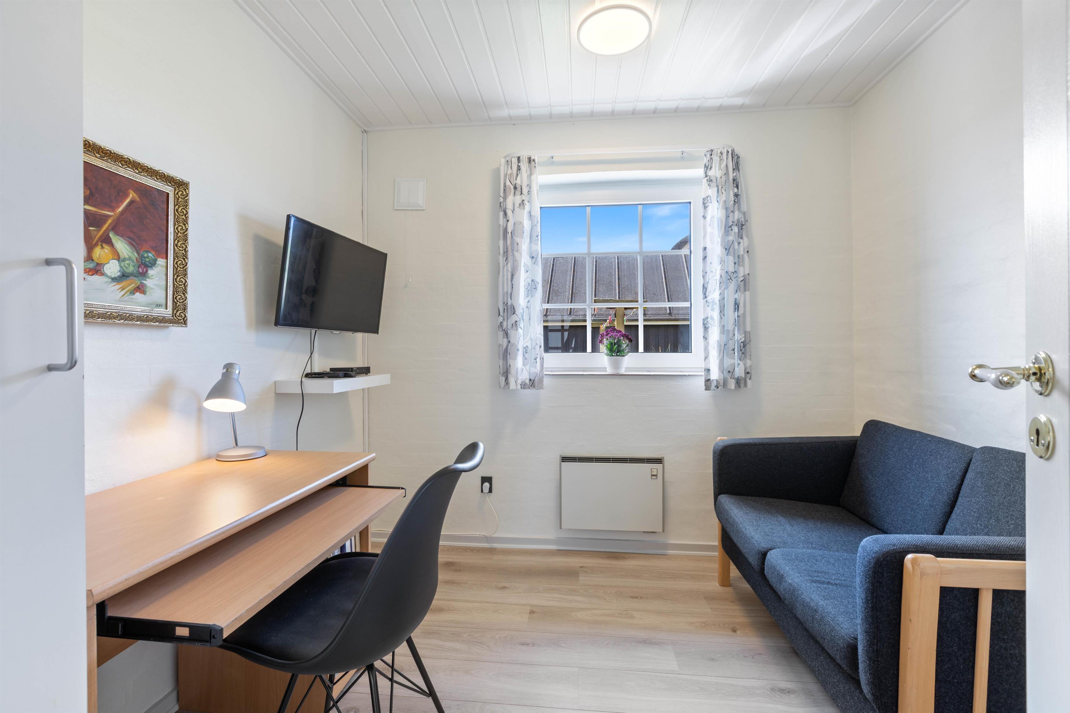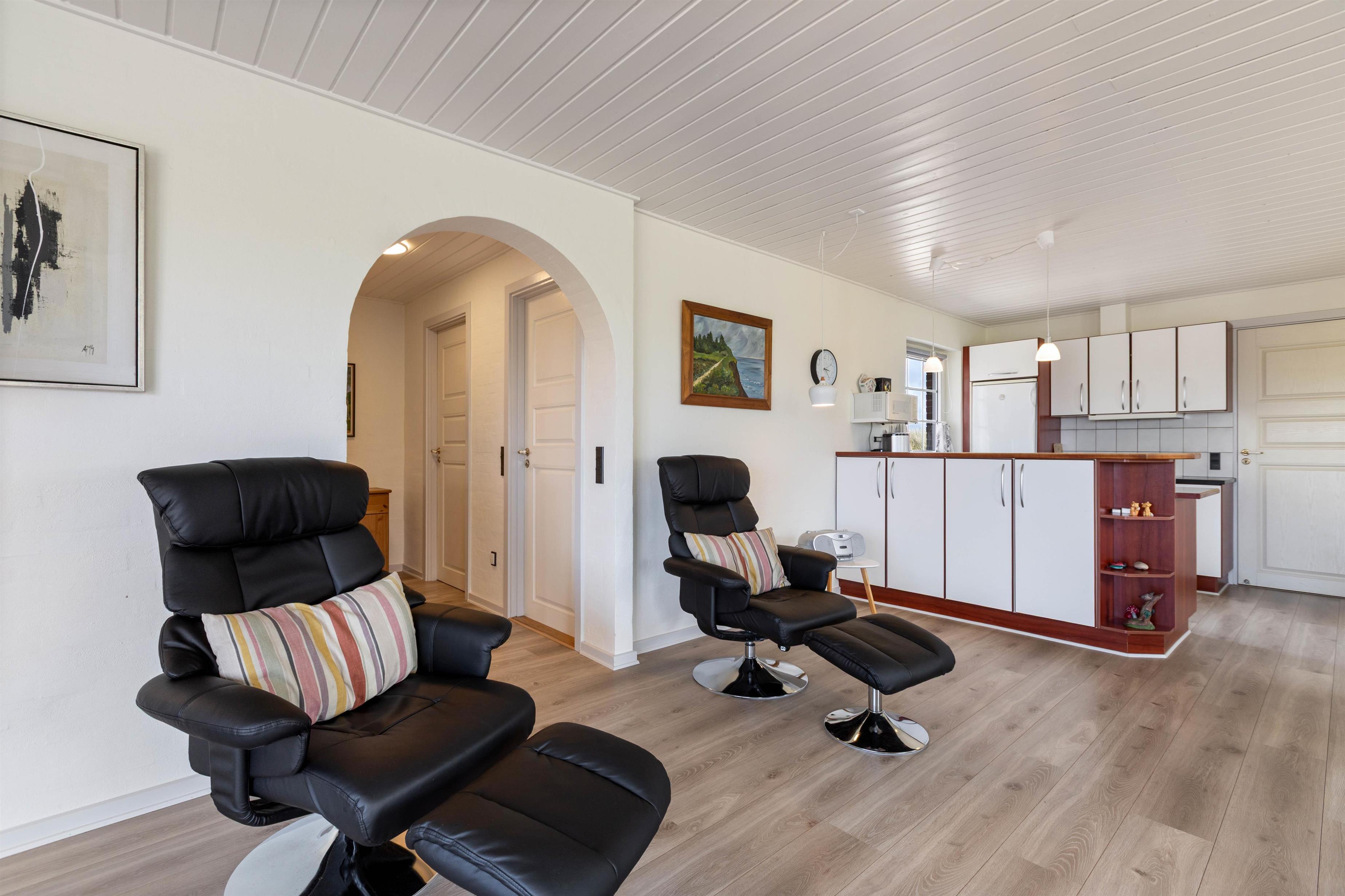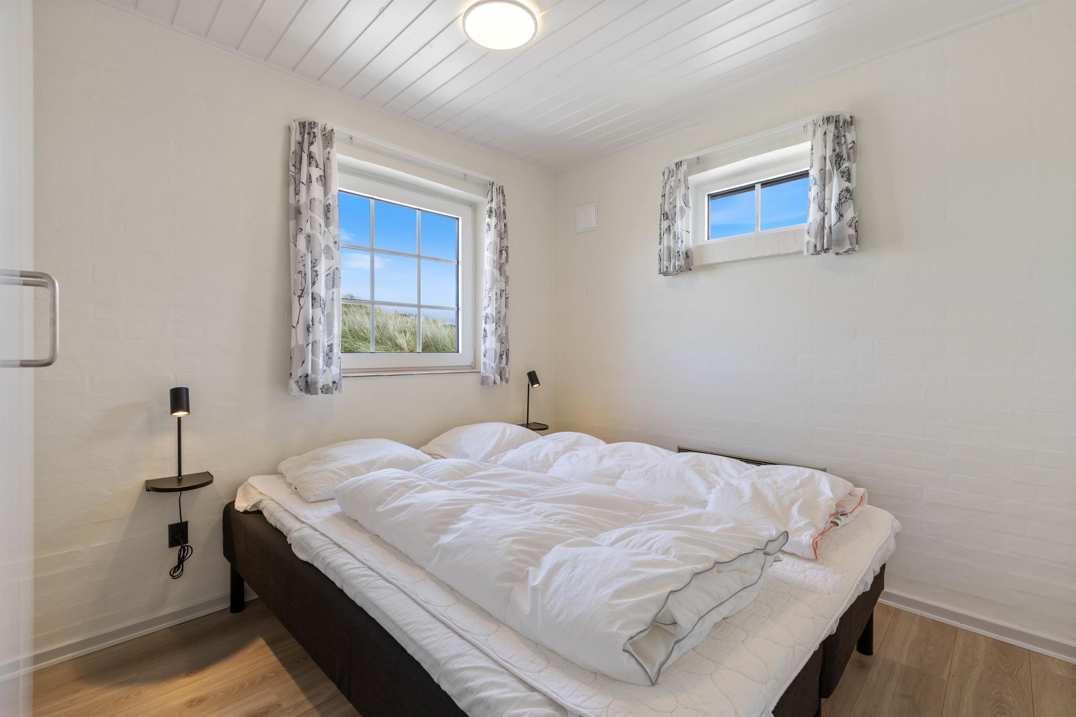 Udvendigt finder I en afskærmet terrasse, hvor I kan nyde det gode vejr og den friske havbrise (og selvfølgelig det skønne klitlandskab, I er omgivet af). I sommertiden kan der tændes op i grillen, og liggestole og havemøbler står klar, så I kan udnytte hver eneste solstråle.