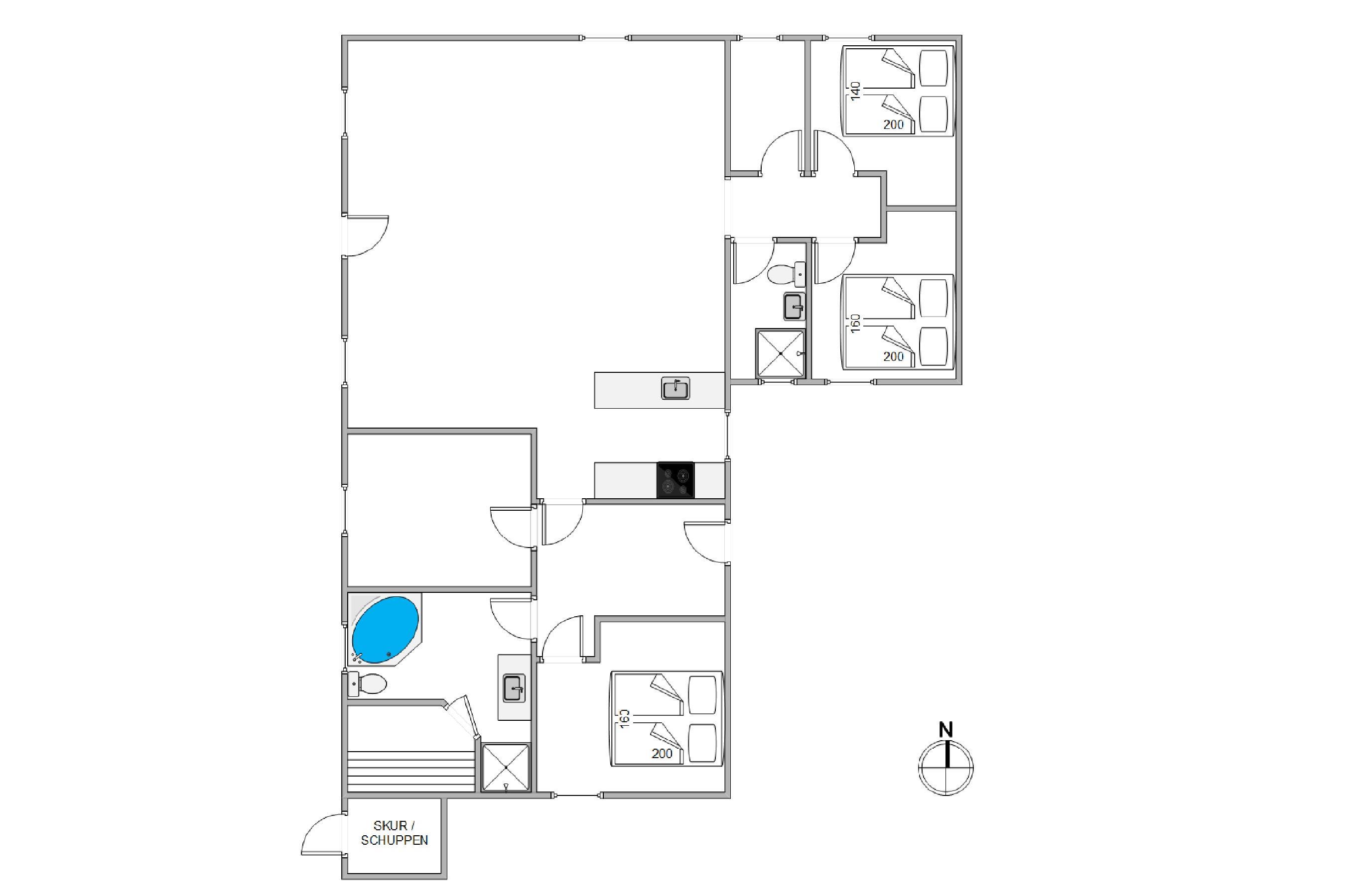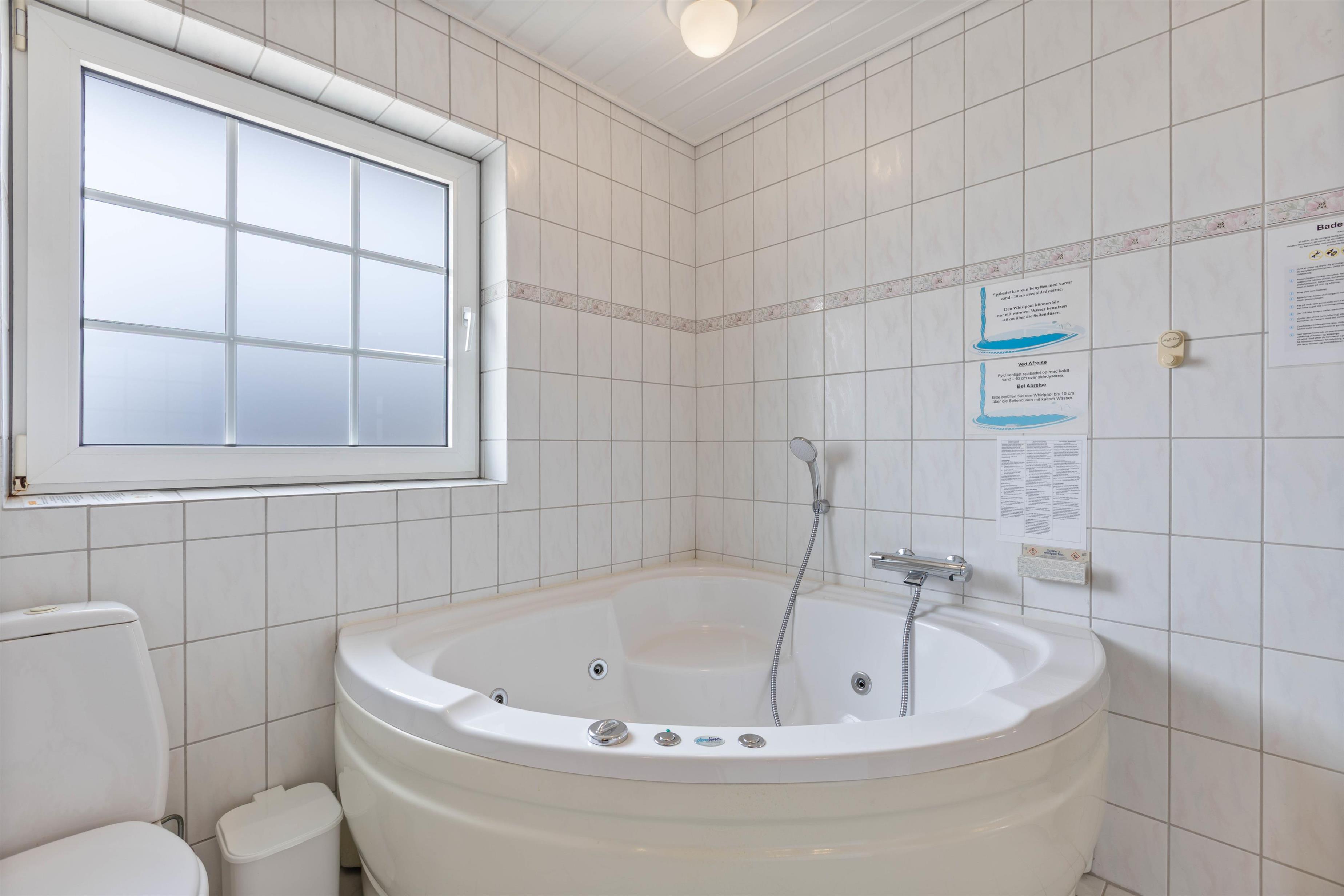 Huset råder - rigtig praktisk - over 2 badeværelser, og på det ene finder I jeres helt egen lille wellnessoase med både spabad og sauna. Nyd lidt ekstra forkælelse i de sene aftentimer, efter ungerne er lagt i seng, eller få varmen efter en gåtur i den friske havluft.