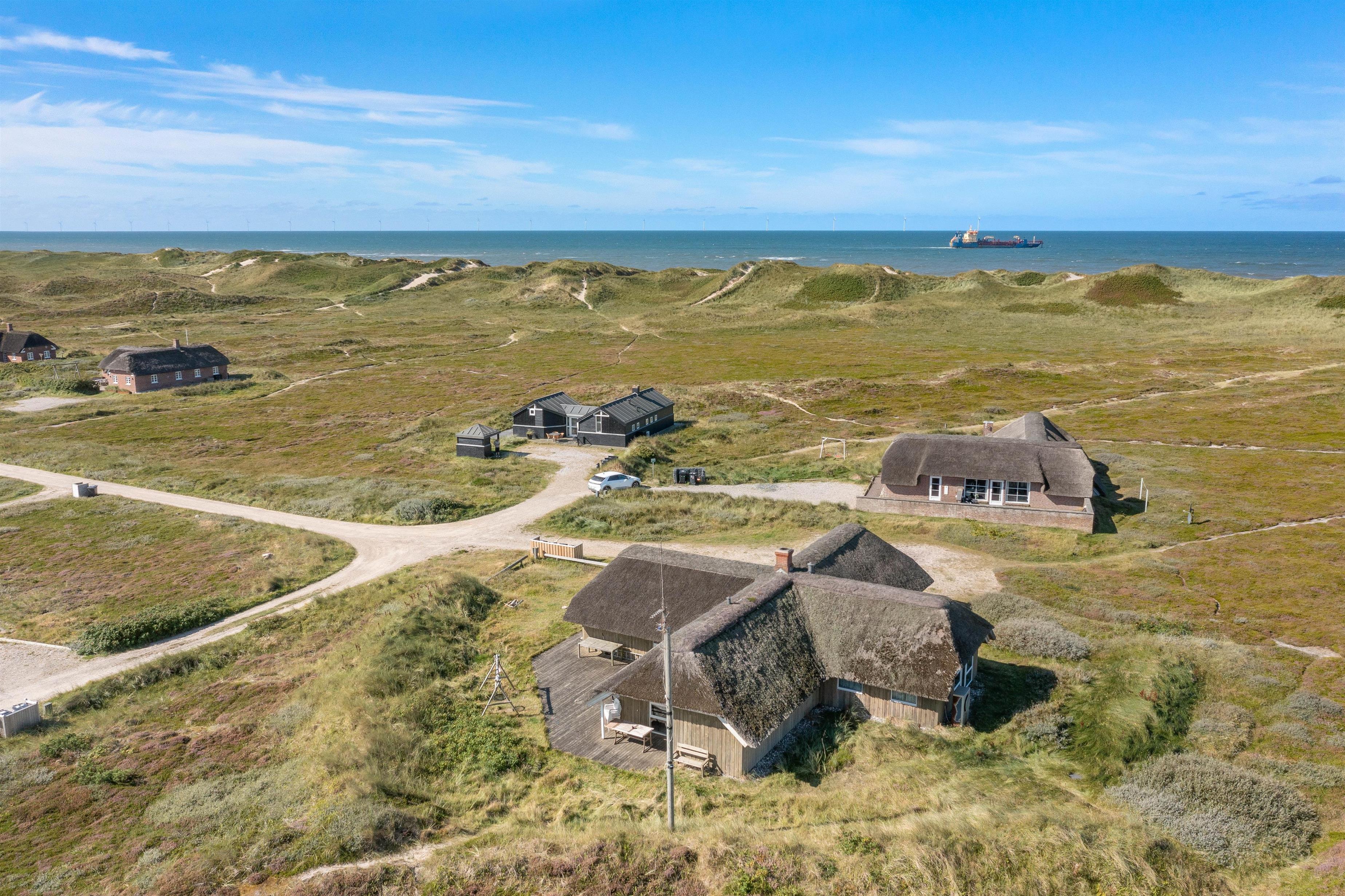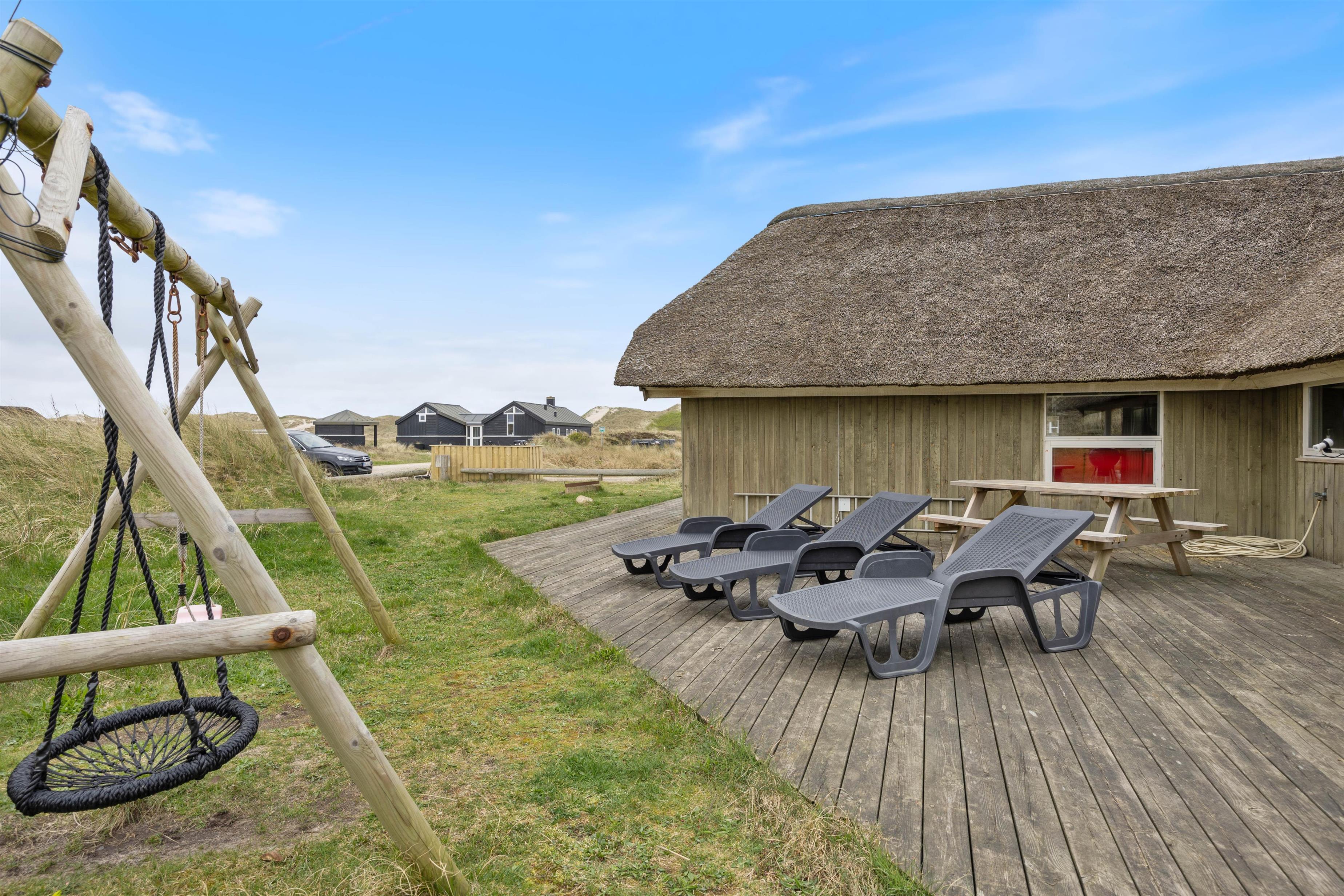 Udendørsområdet med den store terrasse er et dejligt sted for alle. Jeres børn har mulighed for at rende rundt på feriehusets grund og tage en tur på gyngen, imens I kan sidde på husets store terrasse og nyder et koldt glas. På terrassen er der mulighed for at sidde under halvtag, men også mulighed for at sidde under åben himmel, og mærke solens varme stråler. Da stranden og det brusende Vesterhav kun ligger 250 meter fra Sommerhuset, er der ikke noget, der står i vejen for en dejlig gåtur langs vandet.