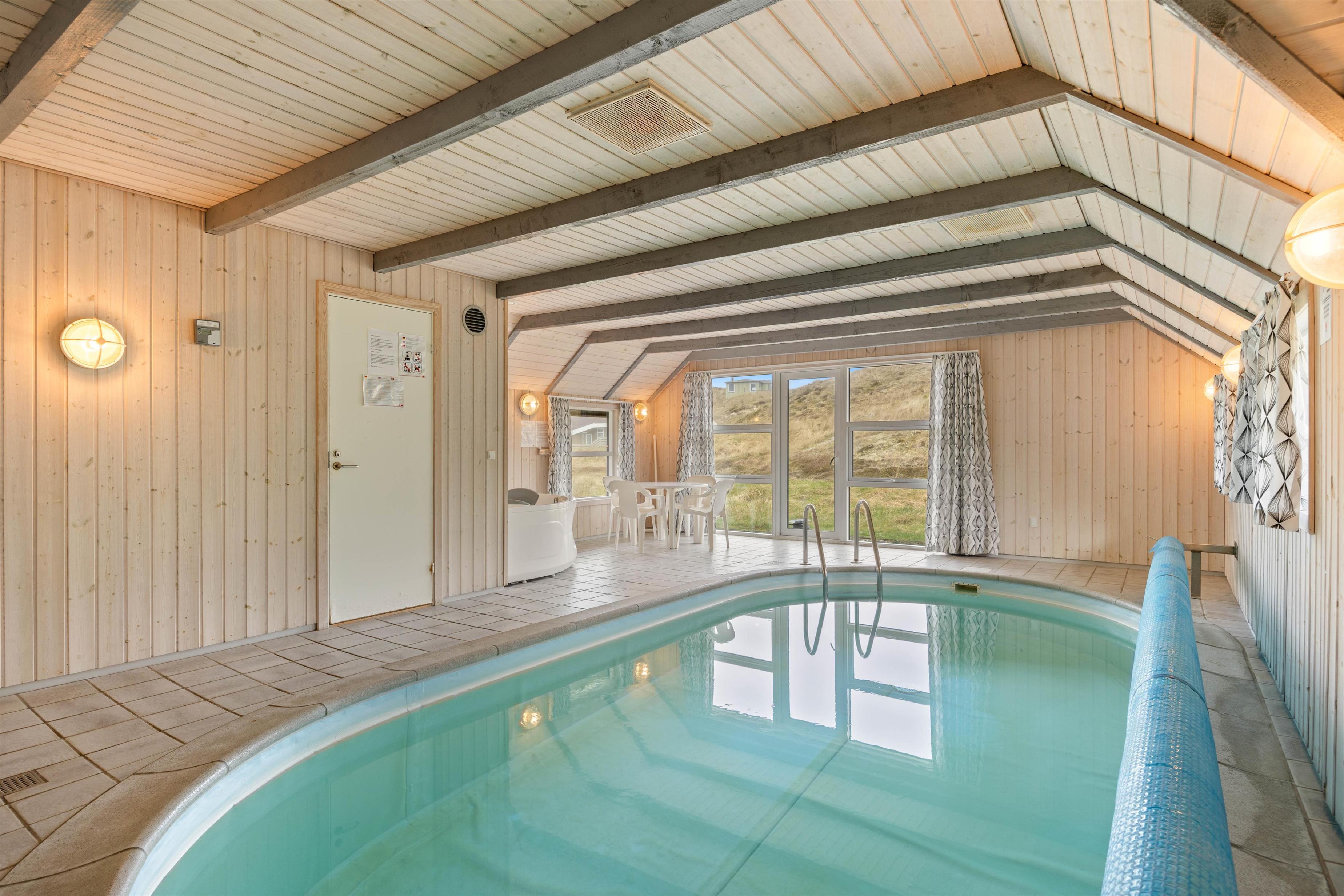 I har i dette dejlige feriehus mulighed for at tage en dukkert i den 15 m2 store pool, og derefter slappe af i sommerhusets 2-personers spabad. Når i rigtig skal slappe af, har i mulighed for at tænde op i sommerhusets brændeovn, og bare side i sofaen og lytte til ildens knitren. I stuen og værelserne er der gulvtæppe, som gør det behageligt og hyggeligt, at gå rundt. Sommerhuset har en energibesparende luft-til-luft varmepumpe, som sørger for et behageligt indeklima.