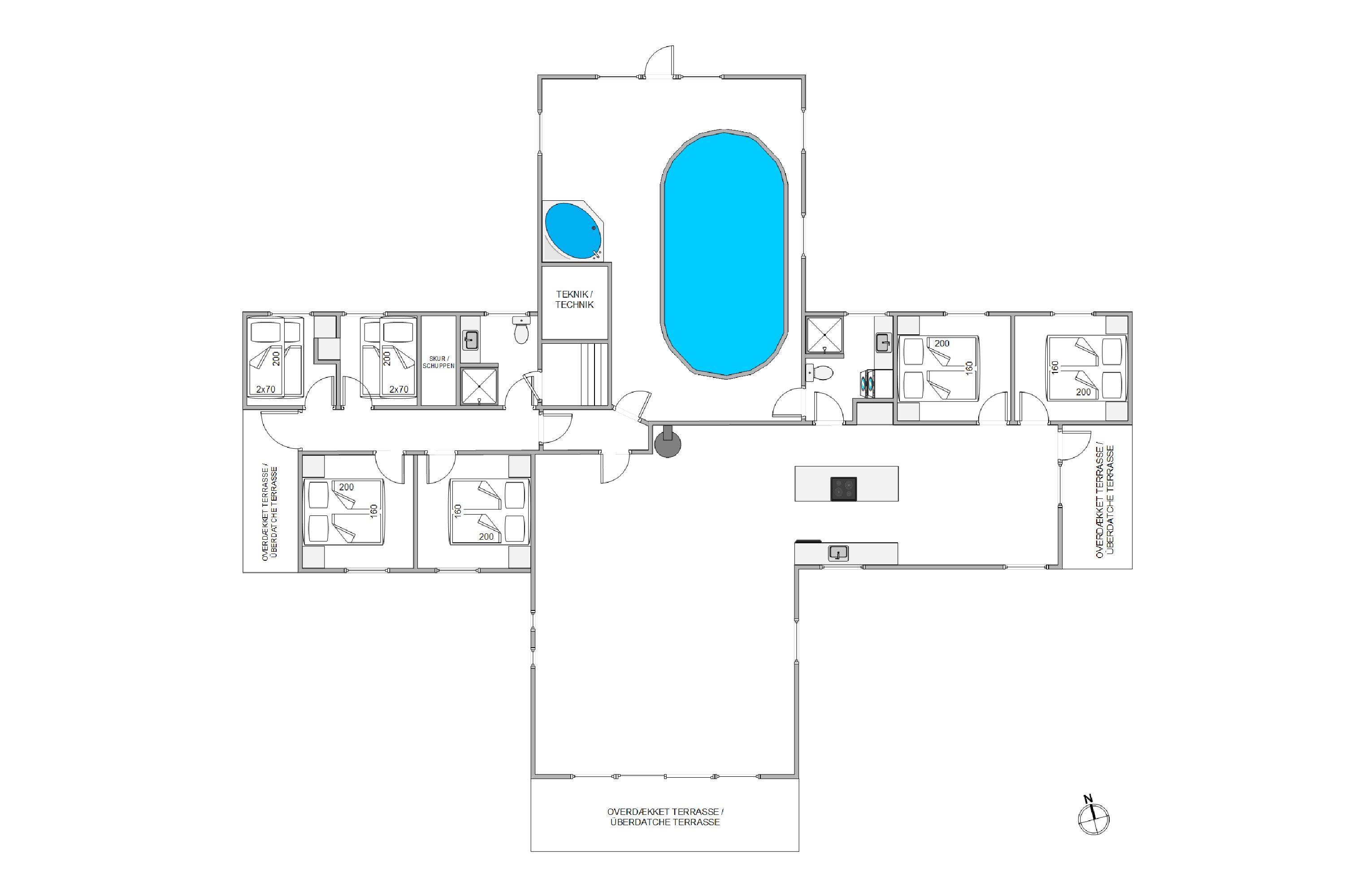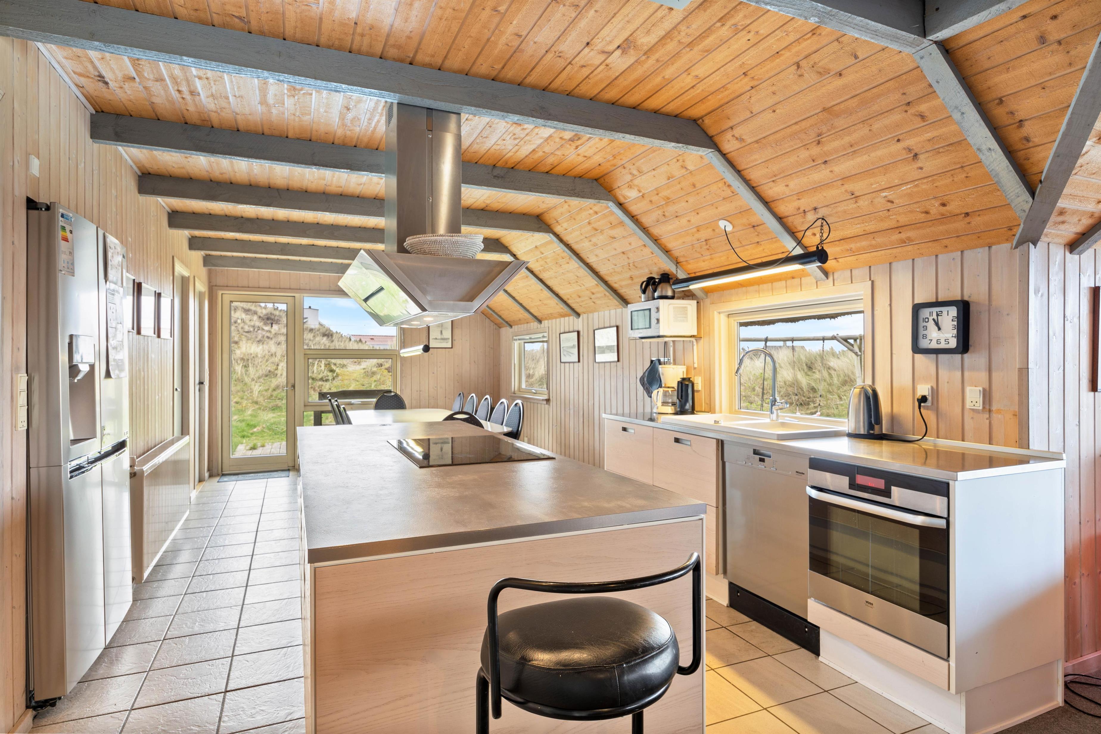 I det 202 m2 store sommerhus har I al den plads, som I har brug for til en dejlig ferie. Det store køkkenalrum, som er forbundet med køkkenet, byder på masser af muligheder. Når I har lavet et lækkert måltid sammen i det store rummelige køkken, klarer opvaskemaskinen opvasken, så I ikke skal tænke på det, men bare bruge tiden på at hygge jer sammen.