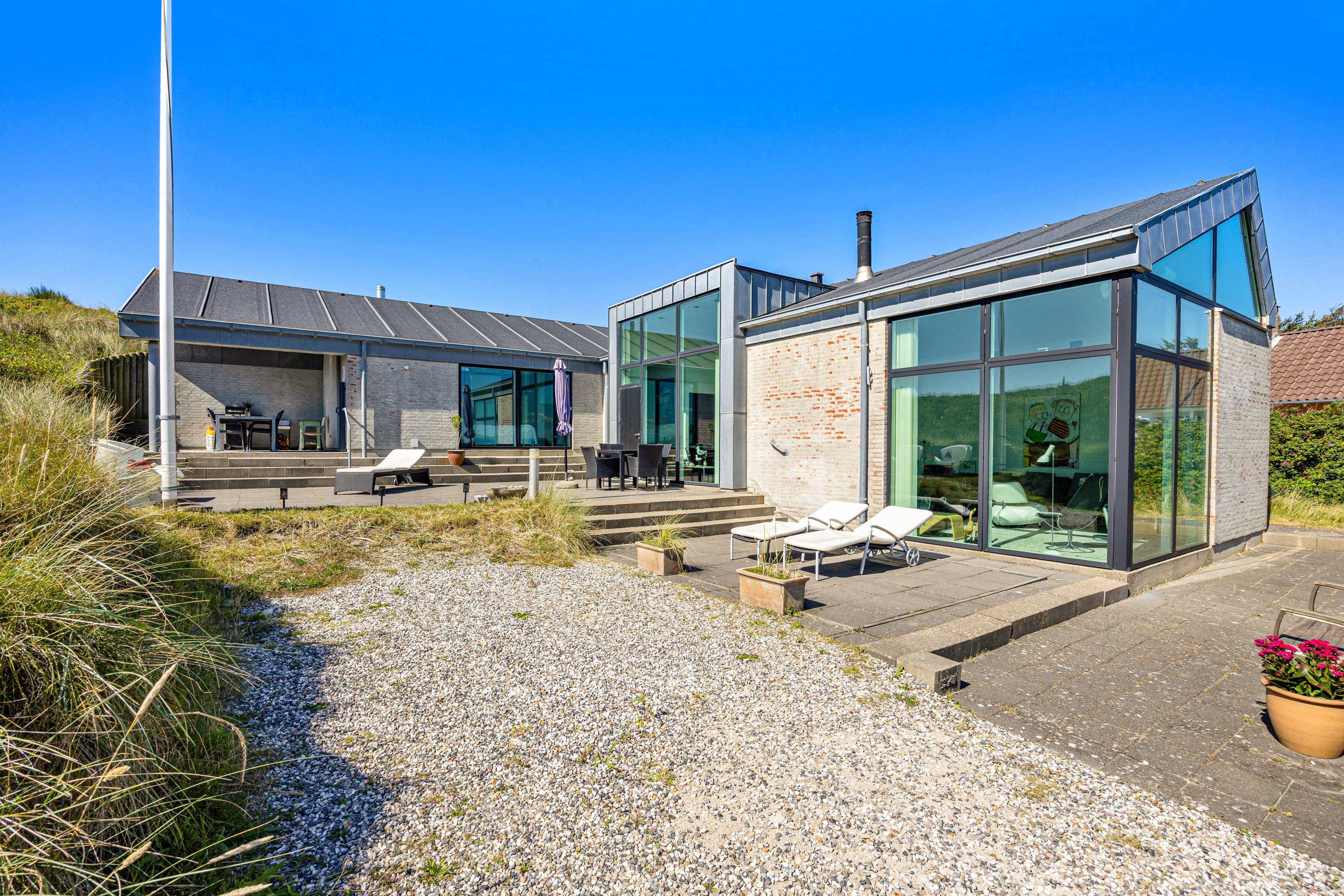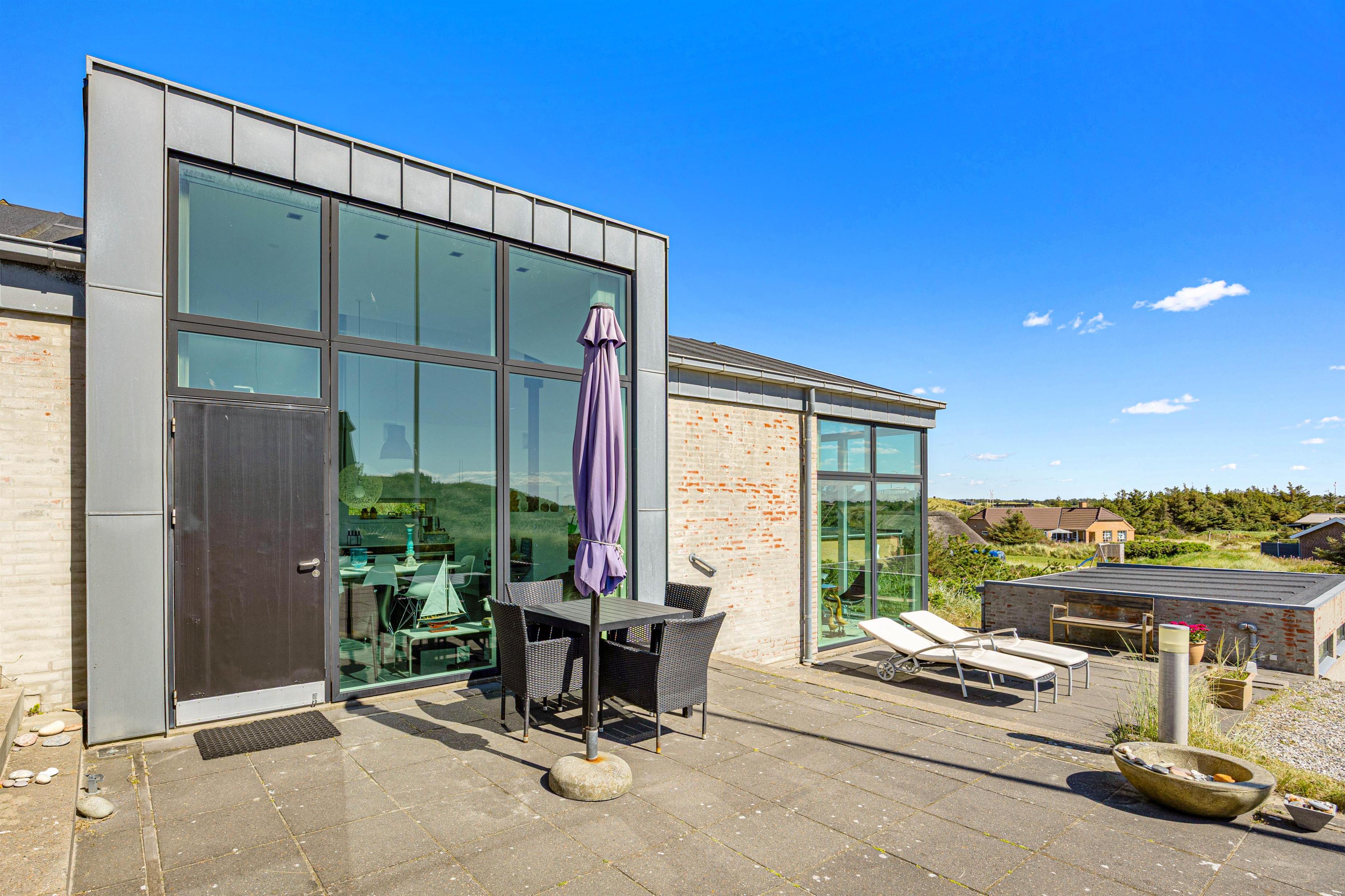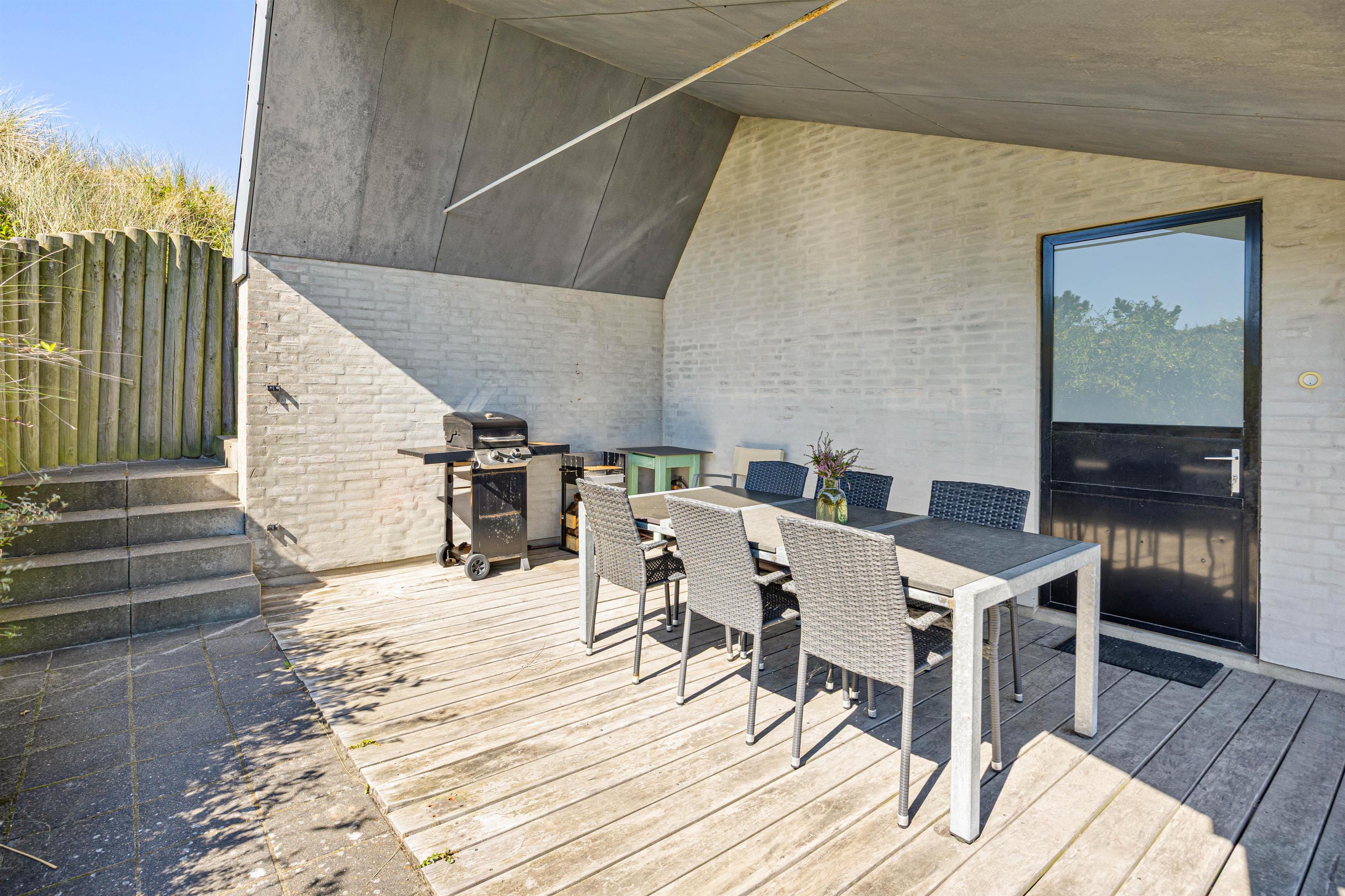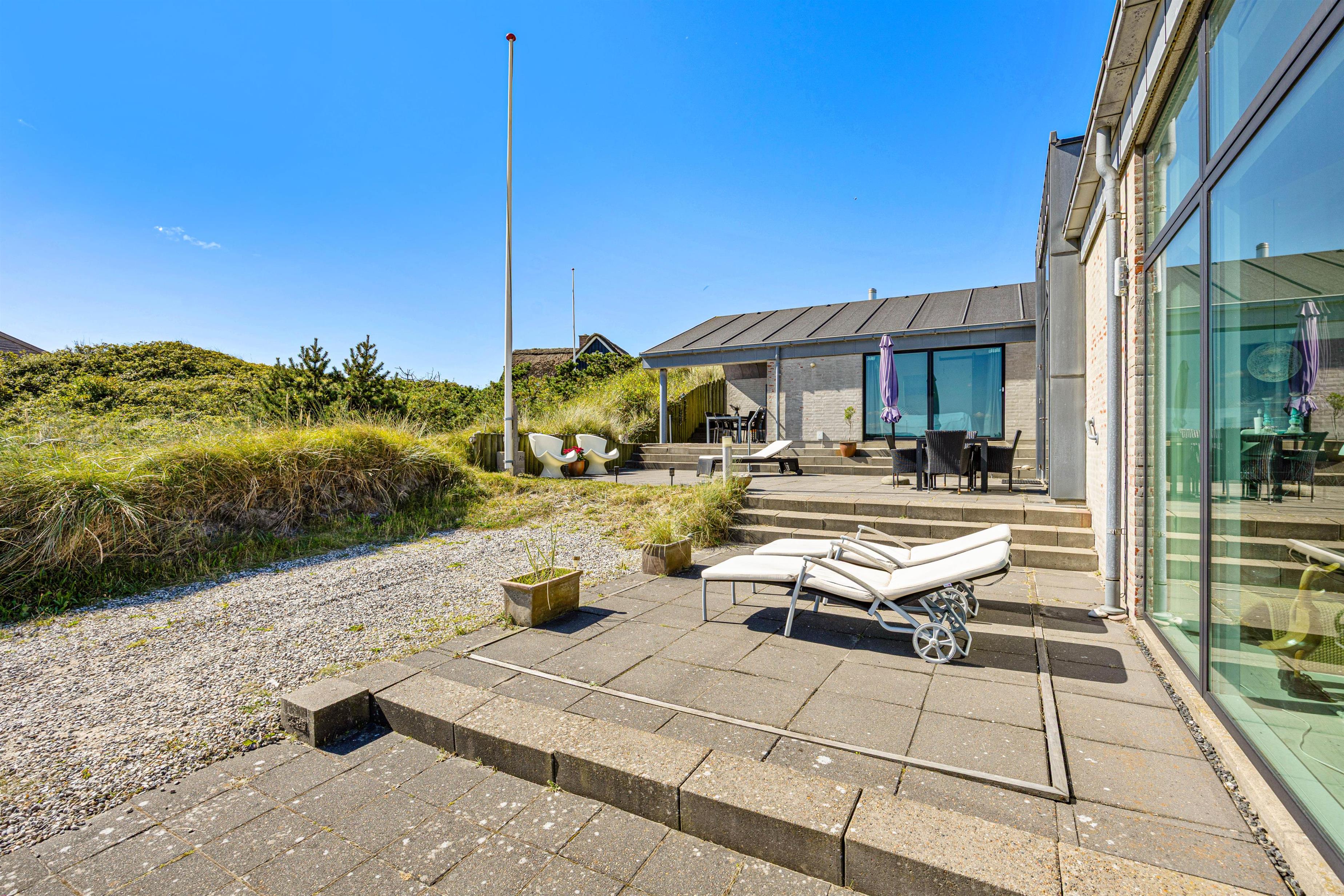 Vest for feriehuset finder du endnu en terrasse. Den ligger i det åbne klitlandskab og tilbyder dermed den smukkeste udsigt over klitterne og til Vesterhavet – helt ideel til de smukke solnedgange.