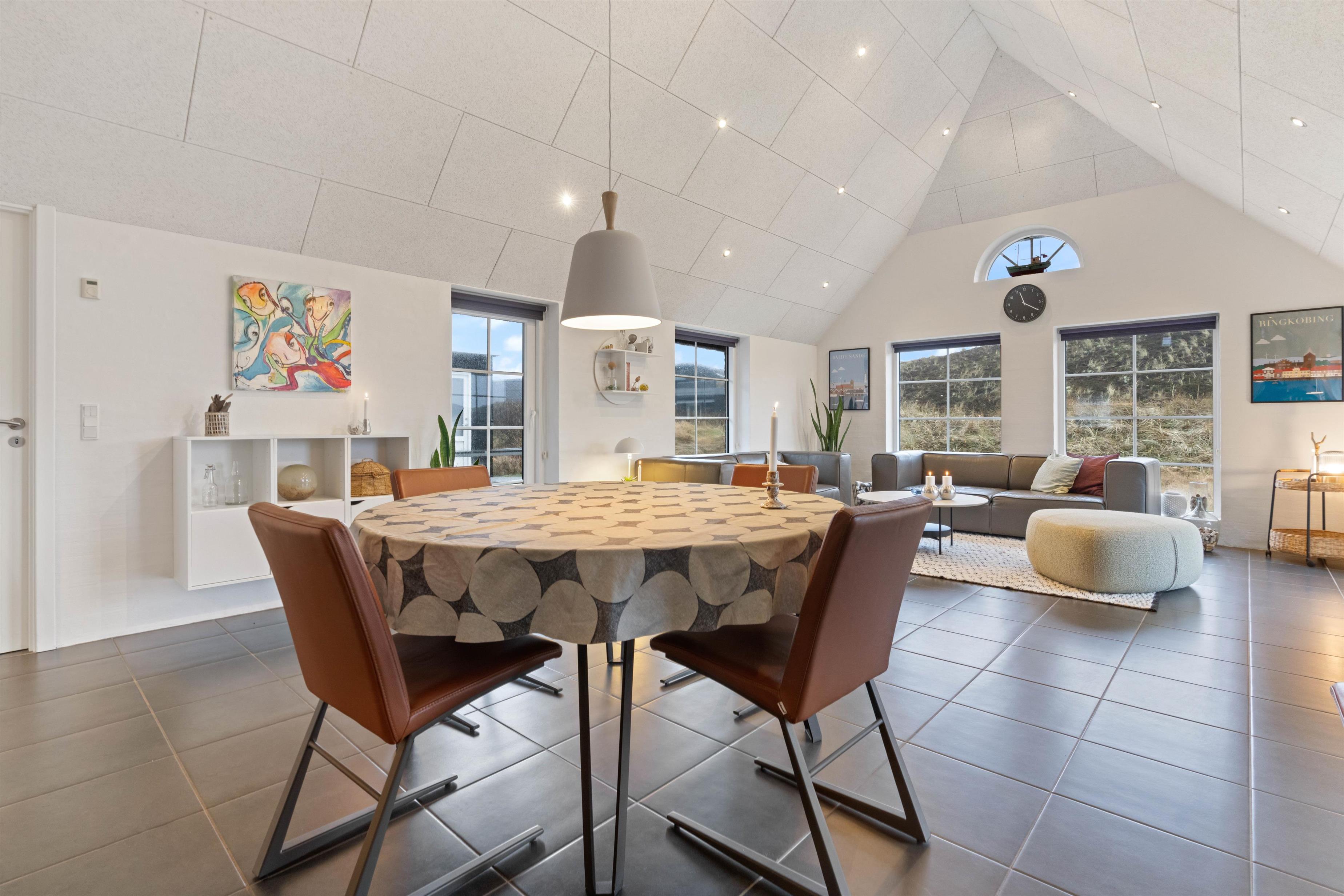 Sommerhuset på Vibedalen 8 er indrettet i en flot, moderne skandinavisk stil. Hjertet i sommerhuset er uden tvivl det store opholdsrum, som ligger i åben forbindelse med køkkenet. Her er der højt til loftet, masser af lys og plads til at slappe af og være sammen med familien. Hvad enten det er i køkkenet eller i stuen. Alle kan følge med i madlavningen eller planlægningen af feriens næste aktiviteter.