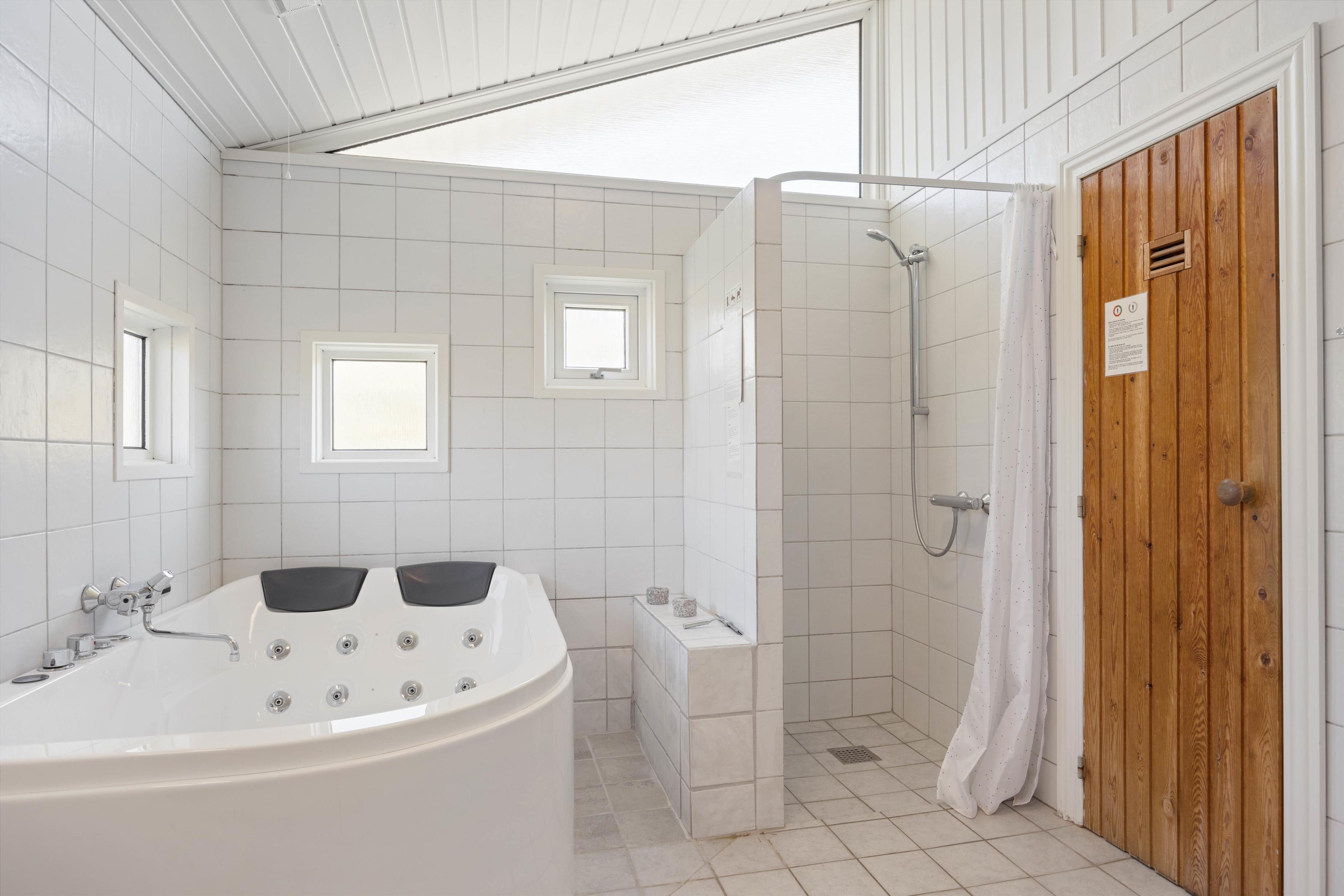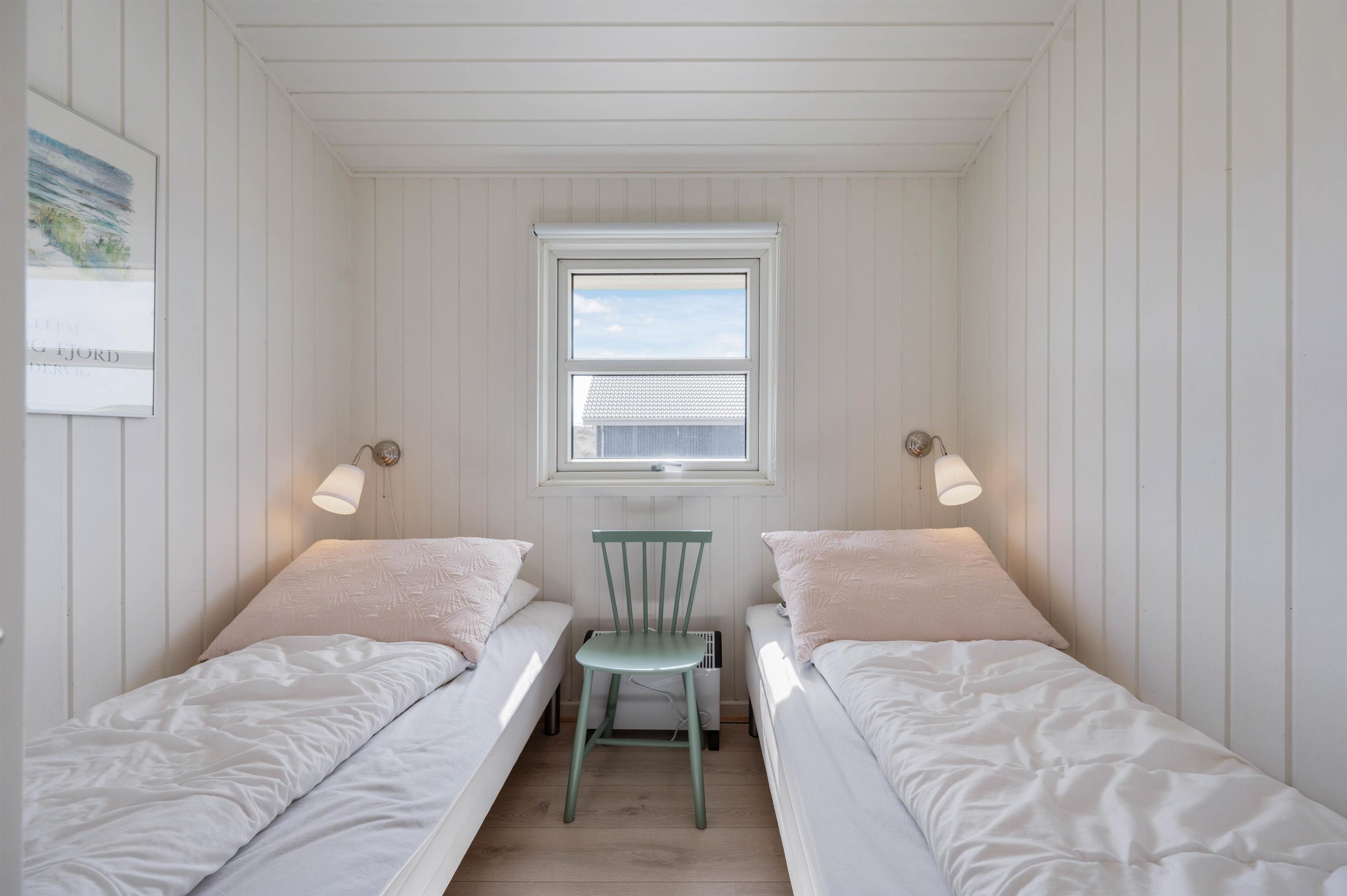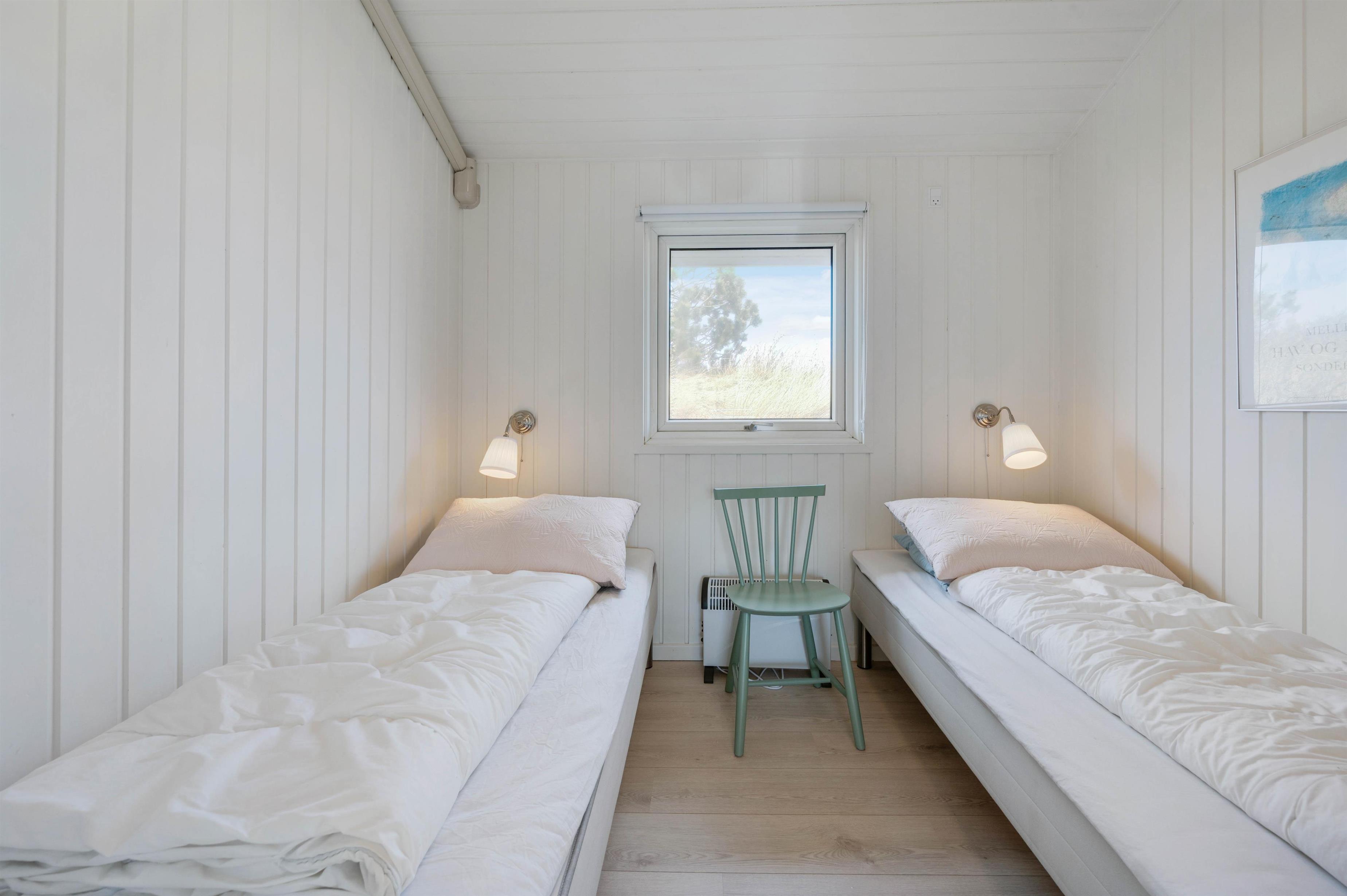 Huset råder over 4 gode værelser, hvoraf 2 værelser er indrettet med dobbeltseng og 2 værelser er indrettet med hver 2 enkeltsenge. Herudover er der 2 lyse og skønne badeværelser. Det ene badeværelse er blevet renoveret i 2020 og byder på lidt ekstra wellness og selvforkælelse i form af et dejligt spabad og en sauna med rigtig god plads.