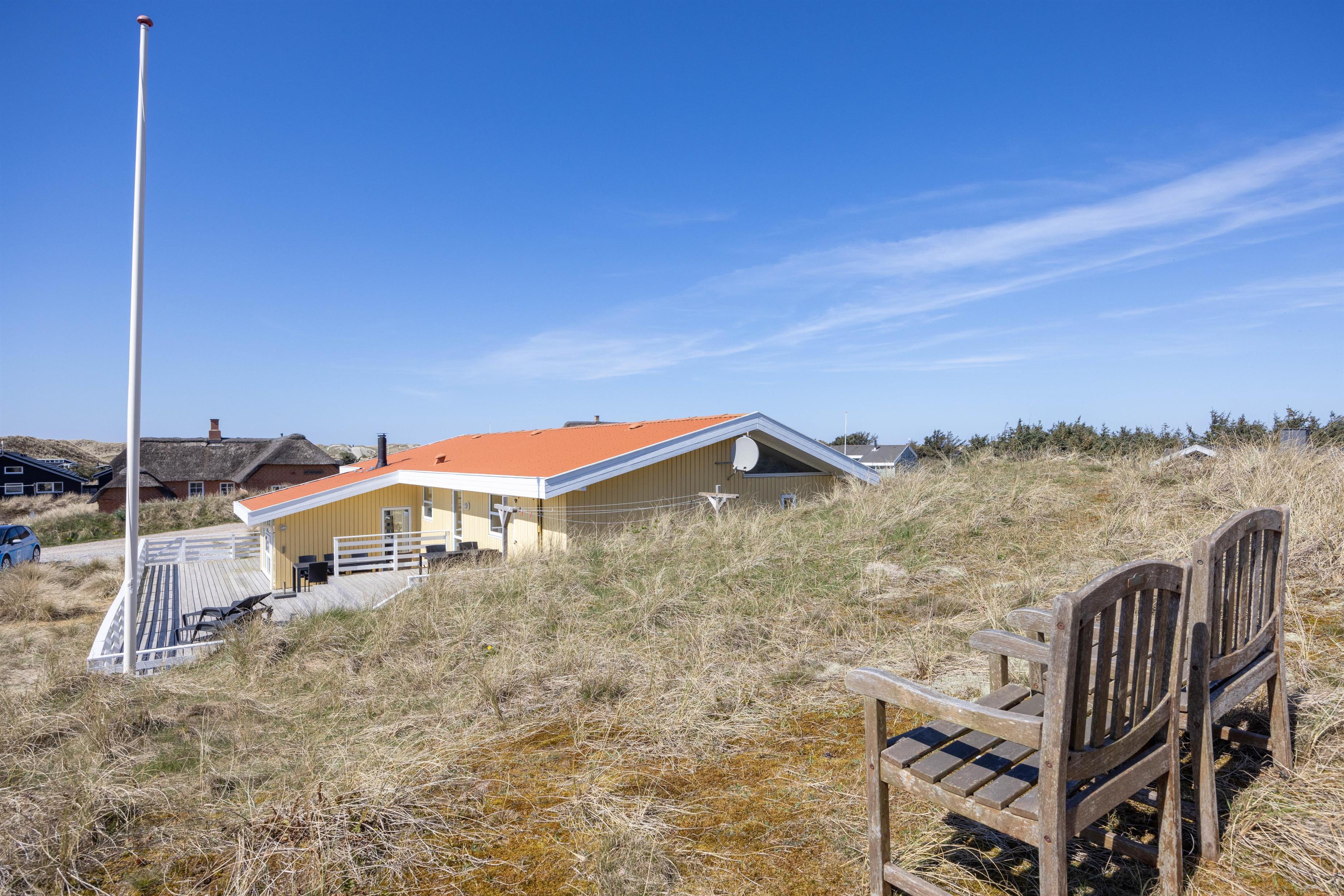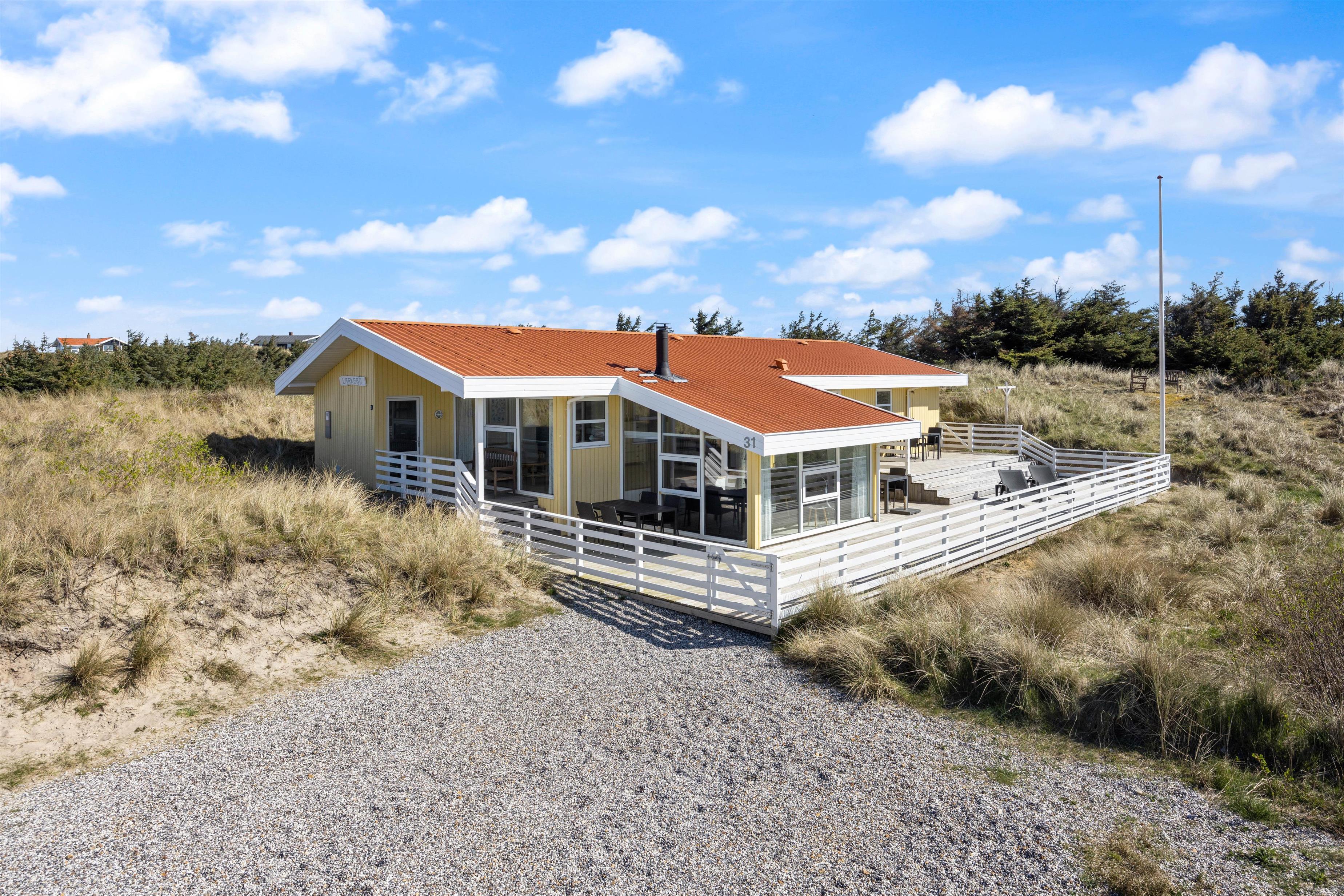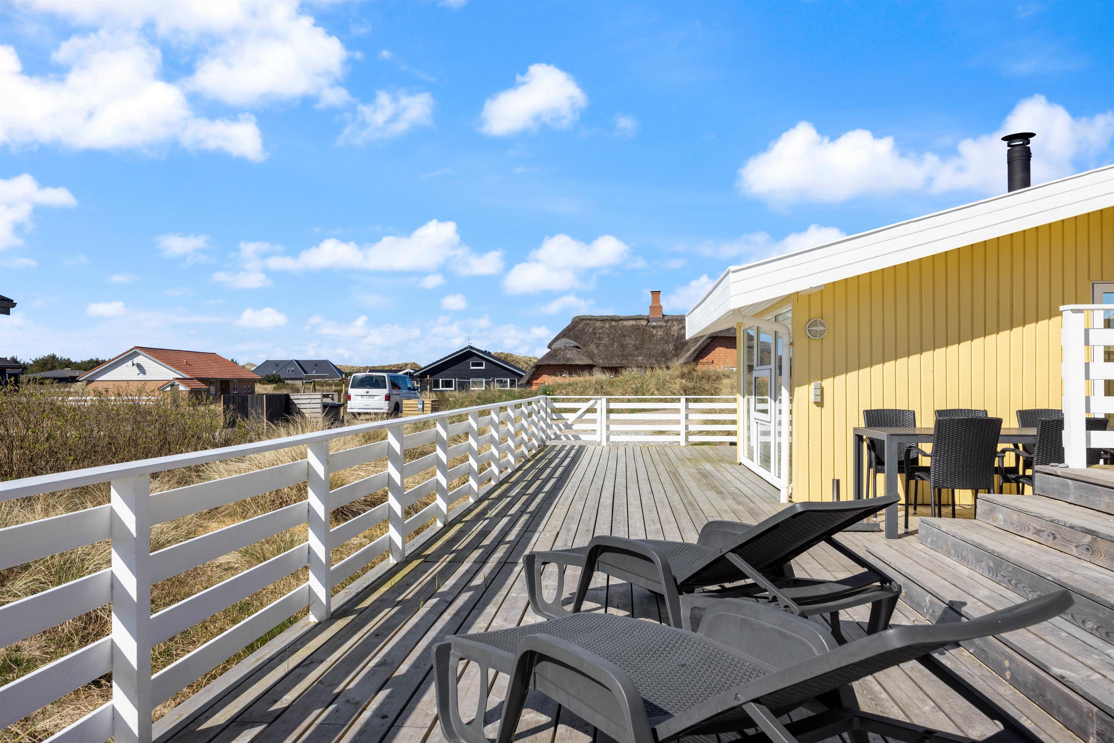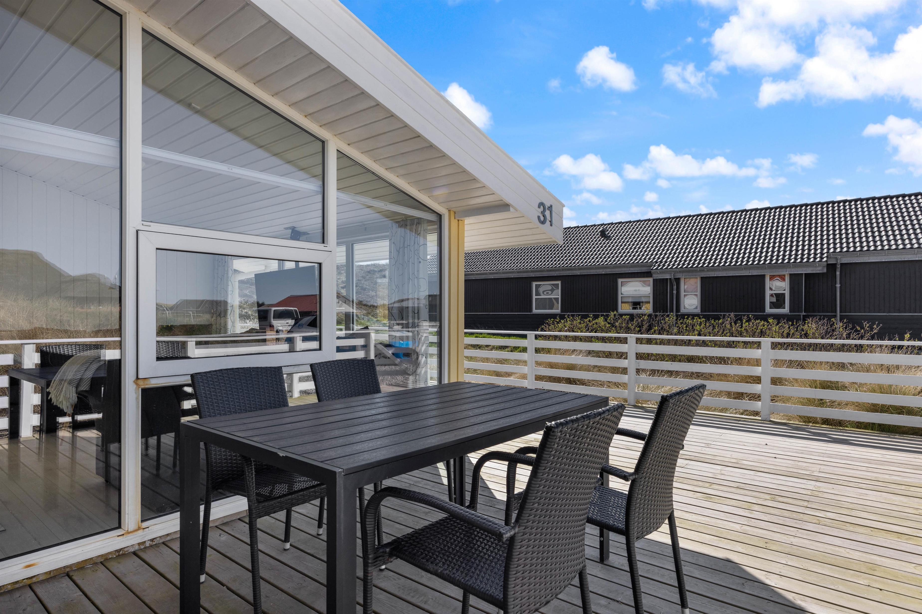 Noget af det skønneste ved et ophold i sommerhuset er den korte afstand til havet og de brede strande. Faktisk kræver det ikke mere en 5-10 minutter på gåben for at nå vandet, der ligger 450 meter fra adressen. Når I ikke tilbringer dagene ved vandet, kan I slappe af på terrassen på den dejlige naturgrund, hvor der er havemøbler, grill og stangtennis til rådighed.