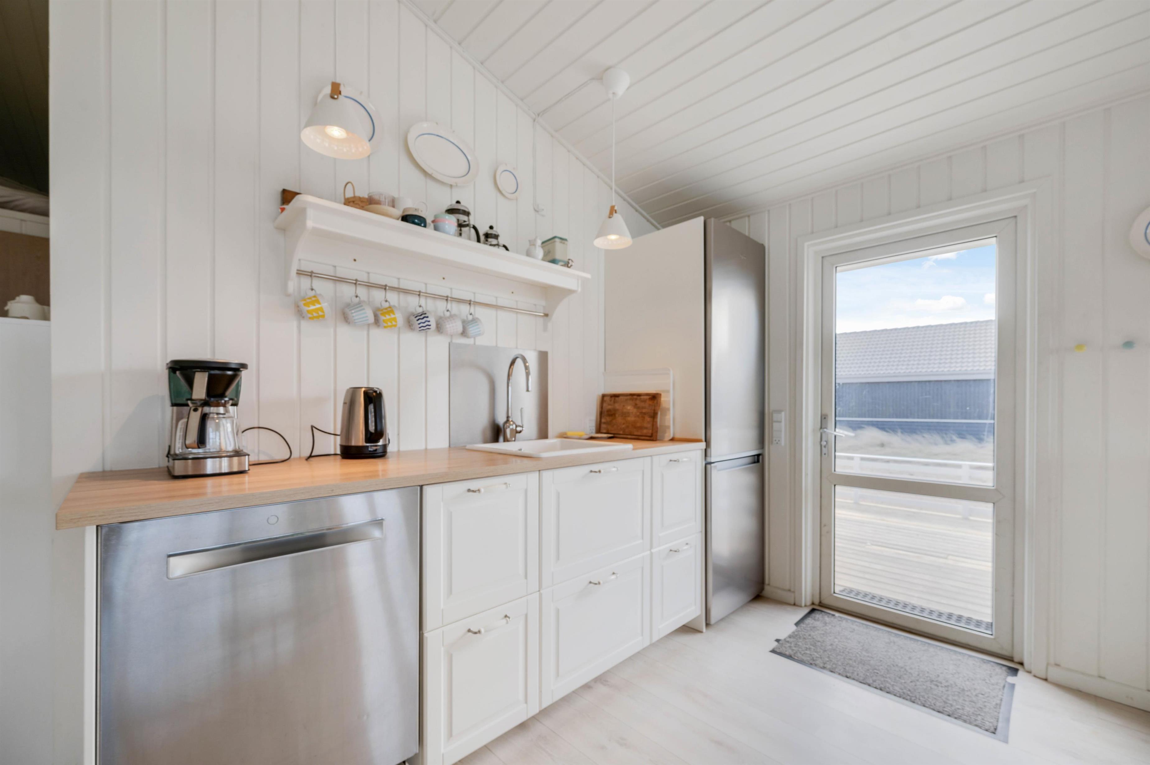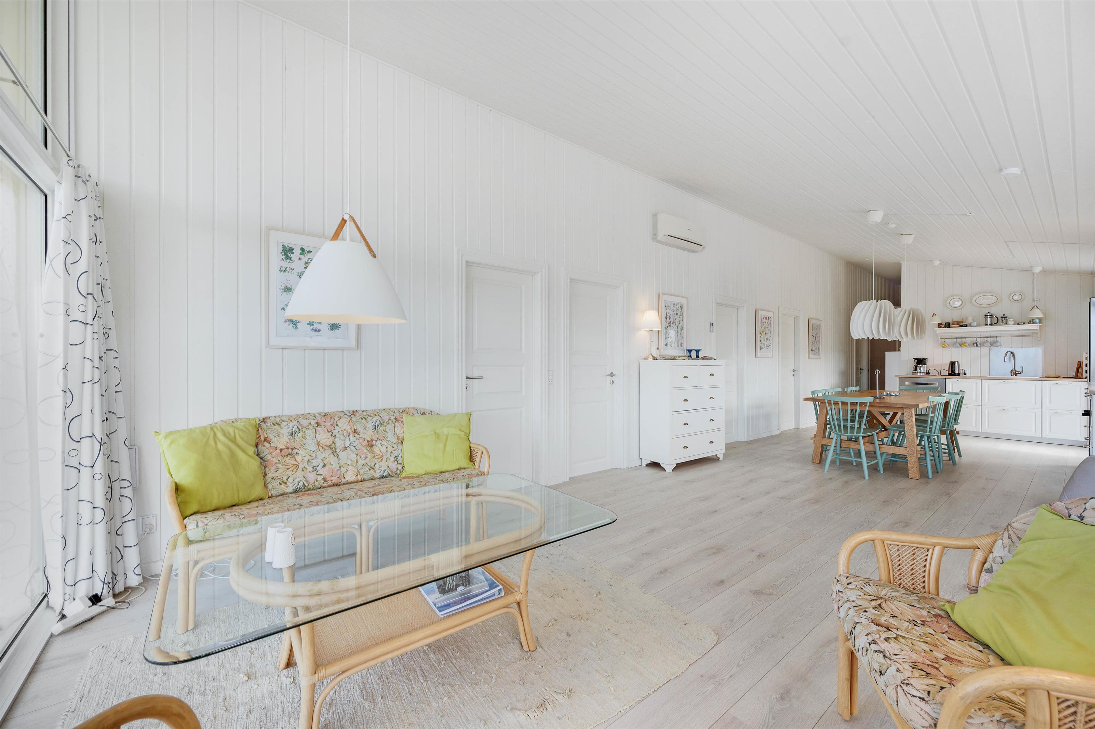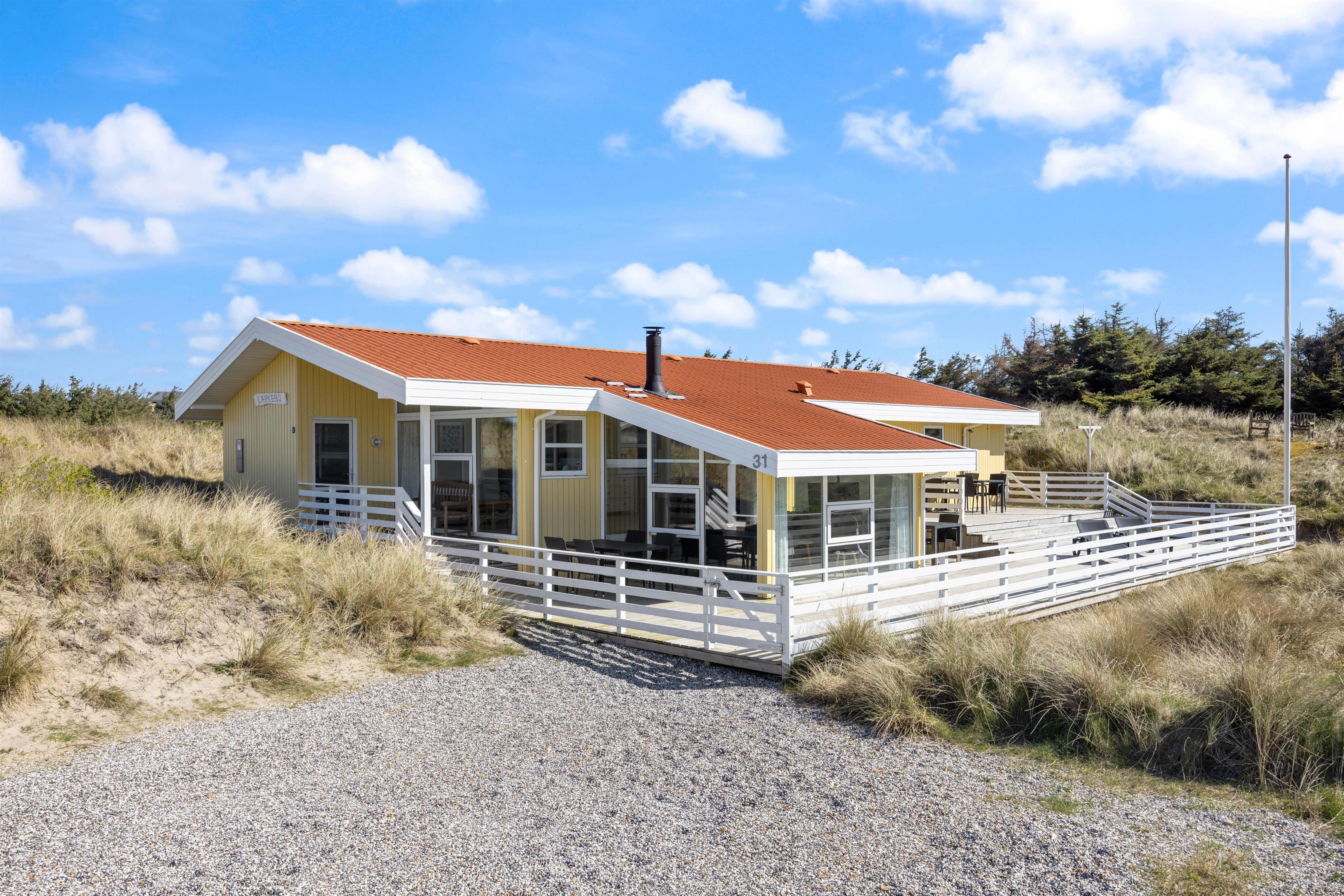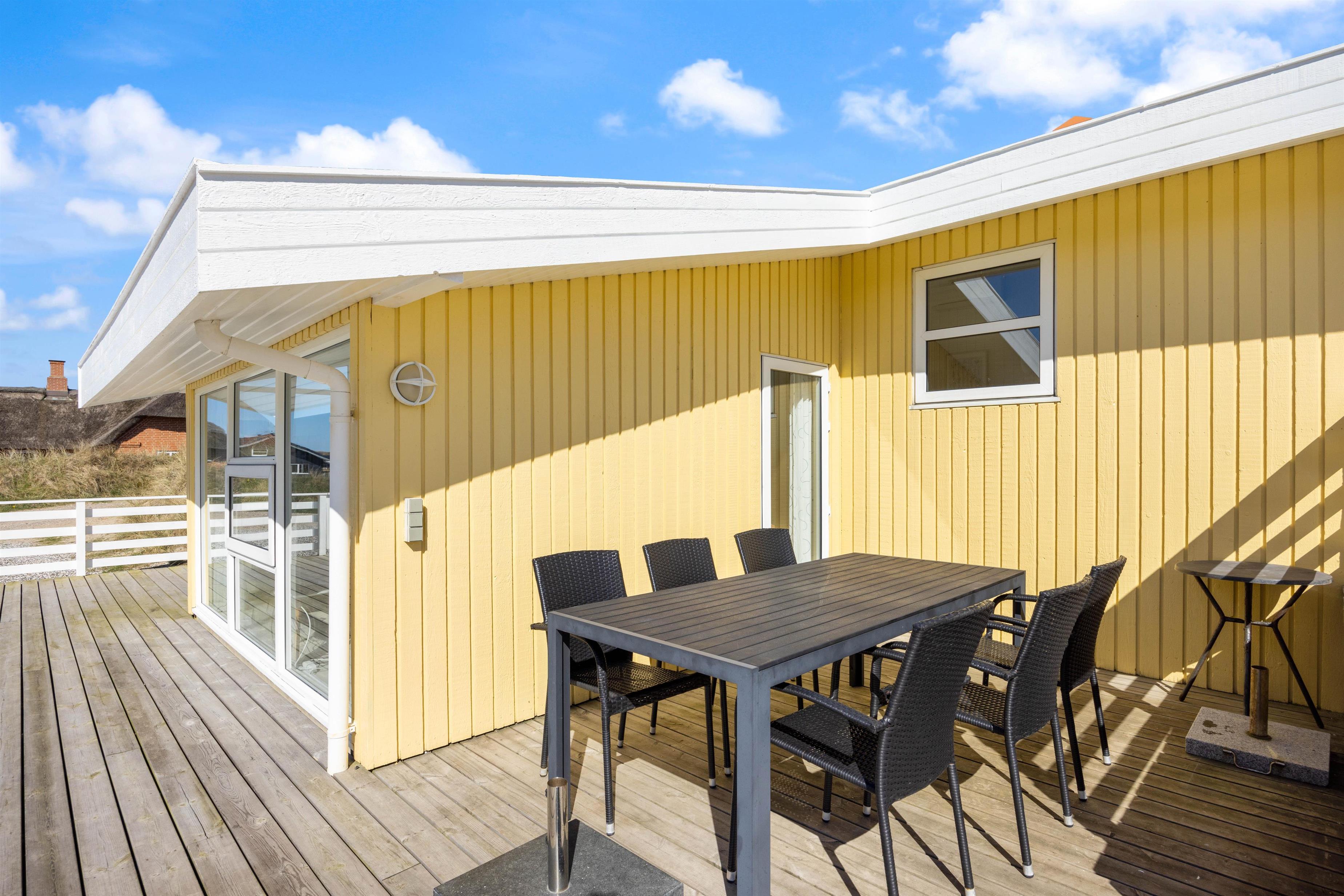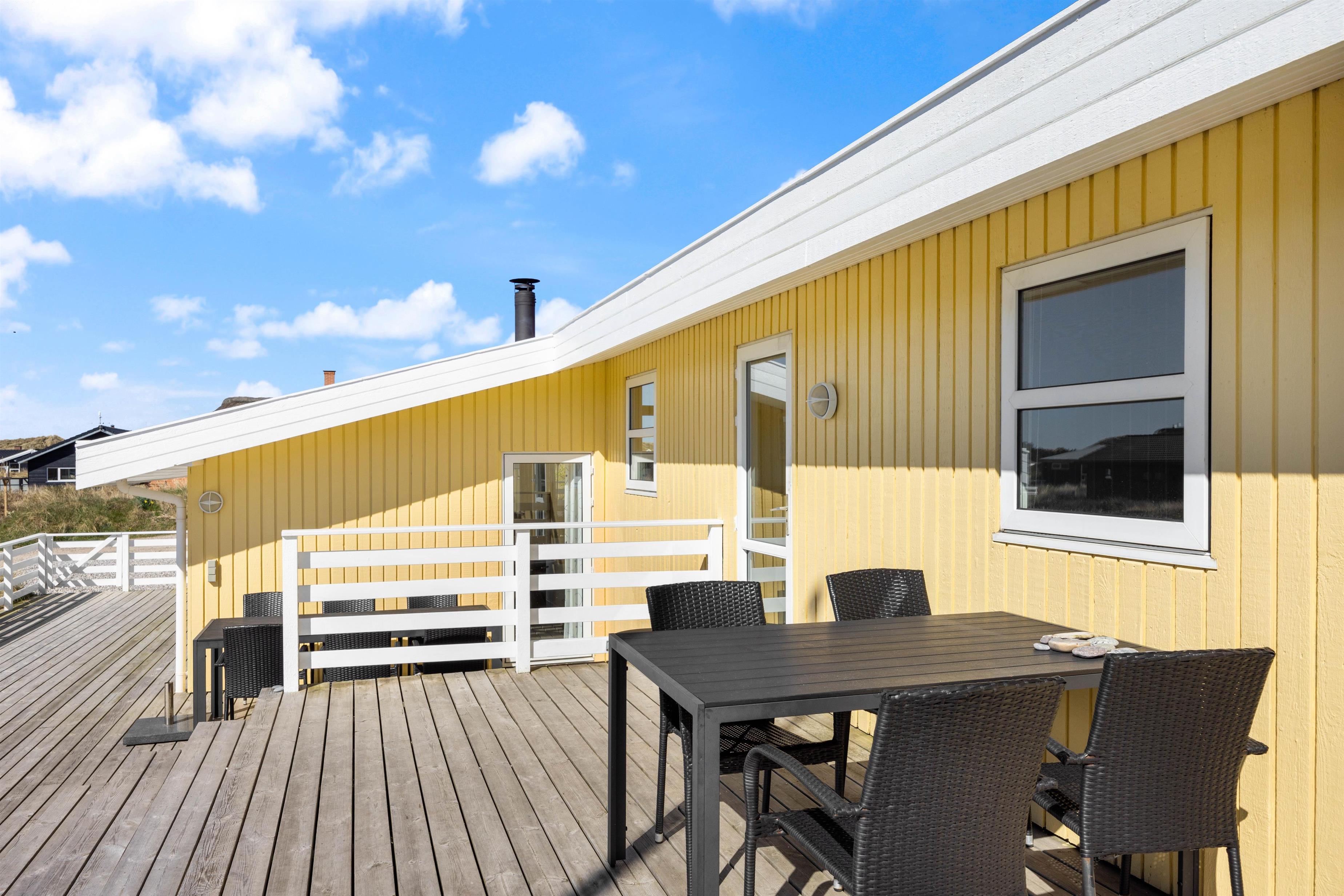 Noget af det skønneste ved et ophold i sommerhuset er den korte afstand til havet og de brede strande. Faktisk kræver det ikke mere en 5-10 minutter på gåben for at nå vandet, der ligger 450 meter fra adressen. Når I ikke tilbringer dagene ved vandet, kan I slappe af på terrassen på den dejlige naturgrund, hvor der er havemøbler, grill og stangtennis til rådighed.