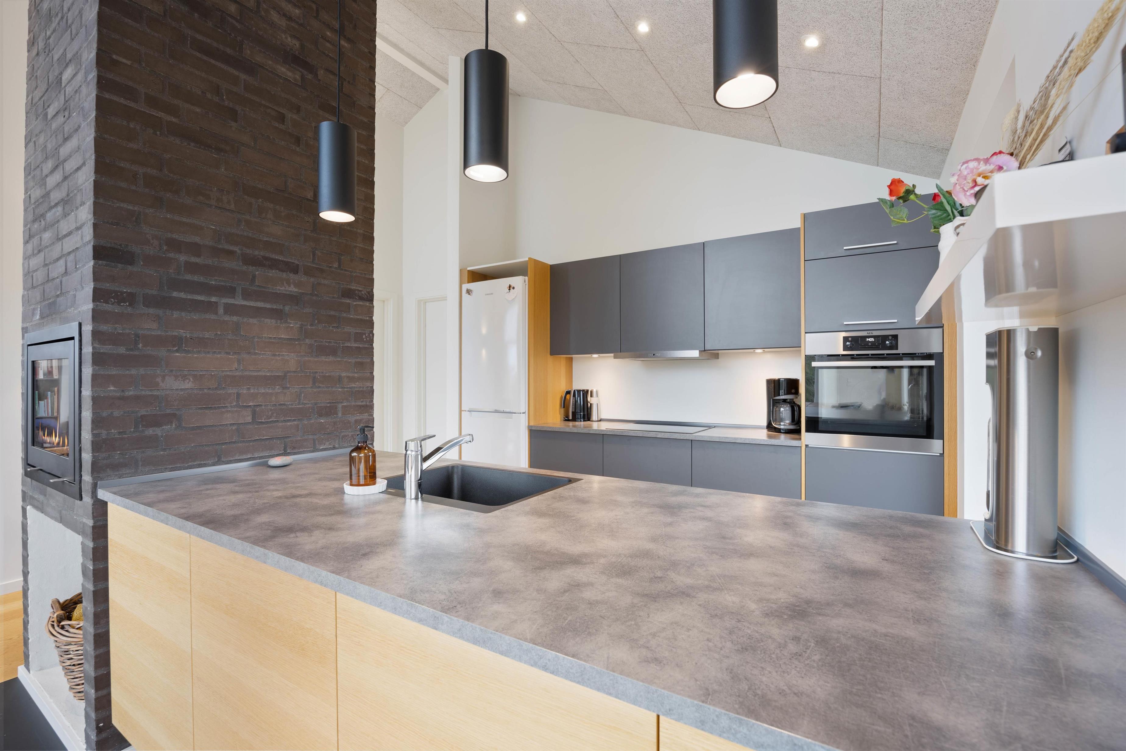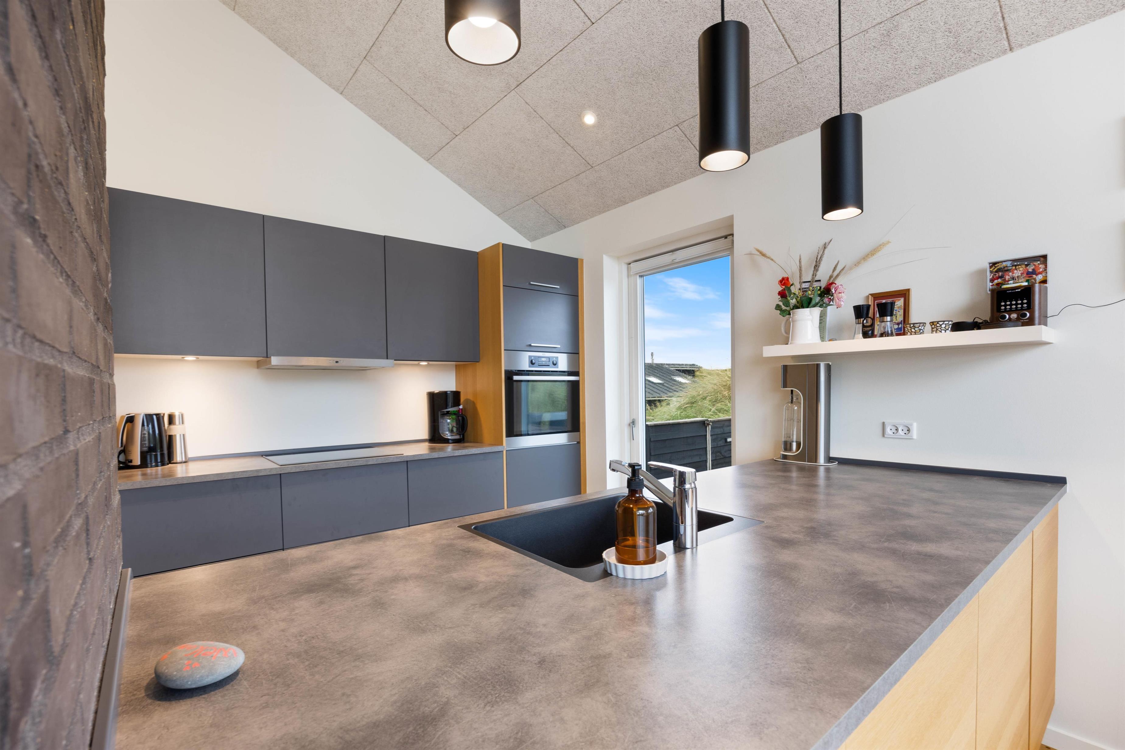 Det åbne og veludstyrede køkken og hyggelige opholdsrum indbyder til fælles madlavning, hygge i sofaen med en god film på feriehusets Apple TV eller planlægning af ugens aktiviteter. Vælger I at holde ferie i det skønne efterår, kan I tænde op i brændeovnen og igen få varmen efter en god gåtur langs det fascinerende Vesterhav.