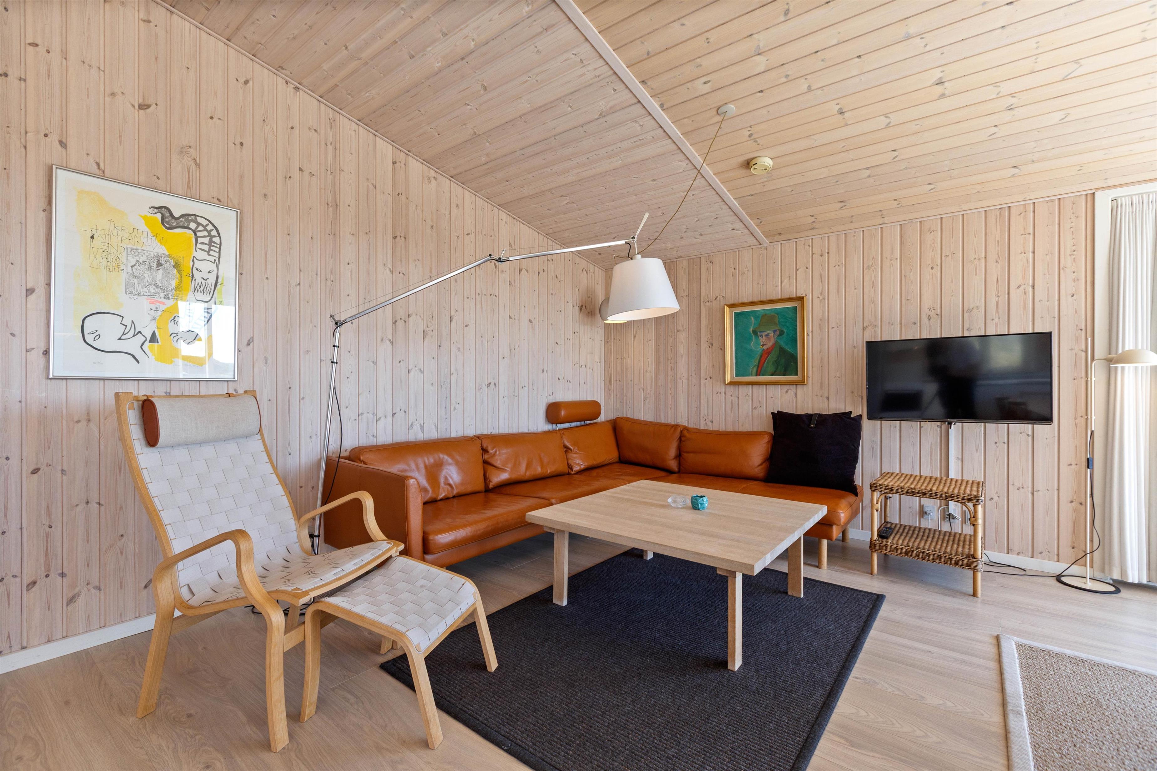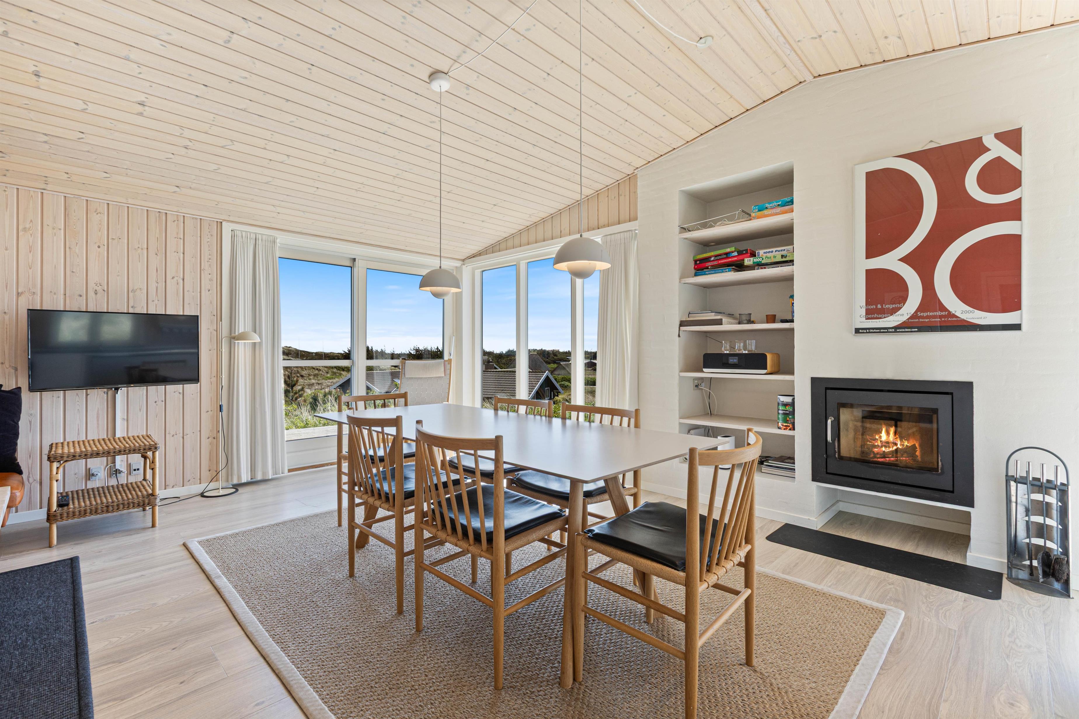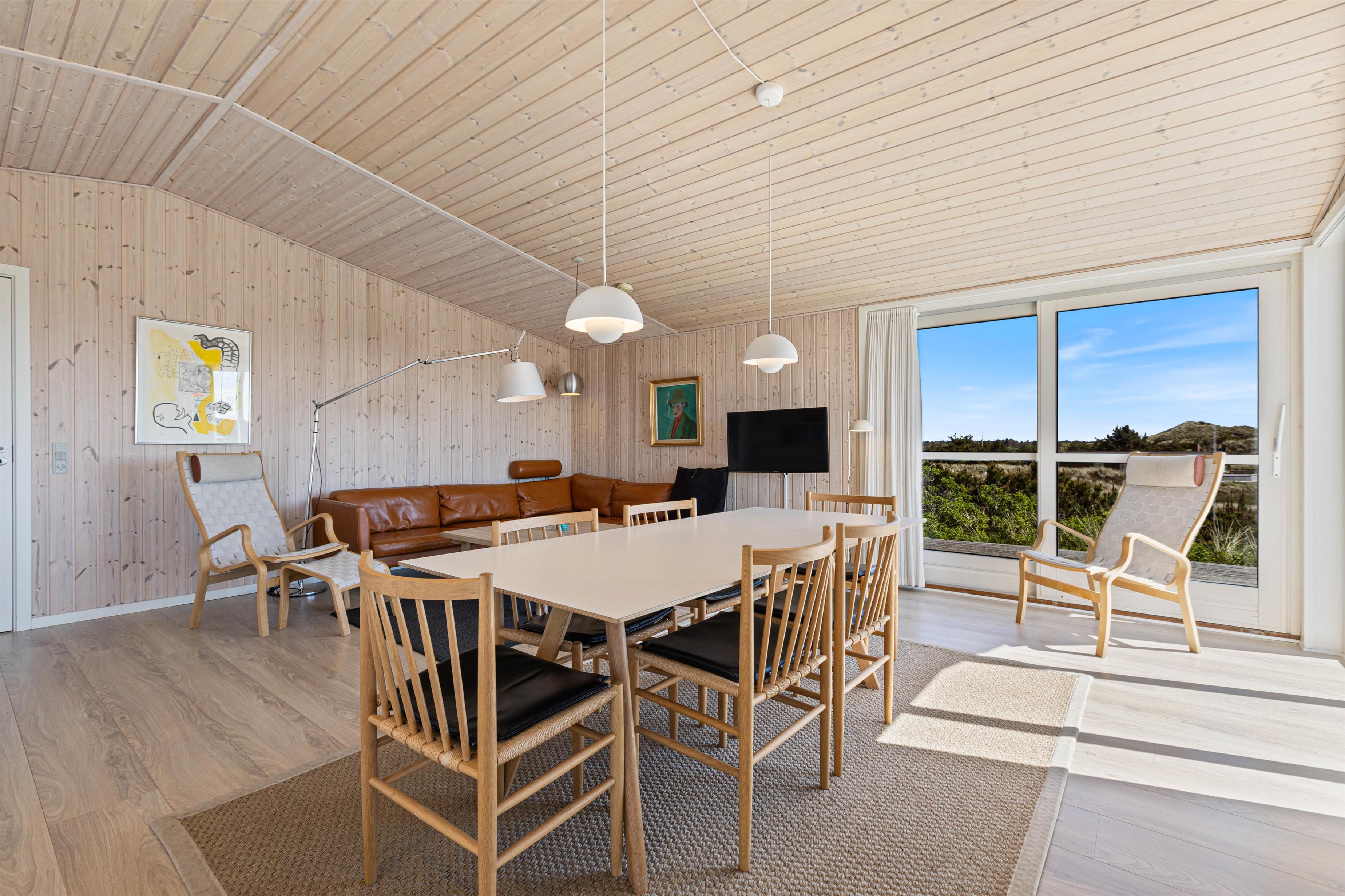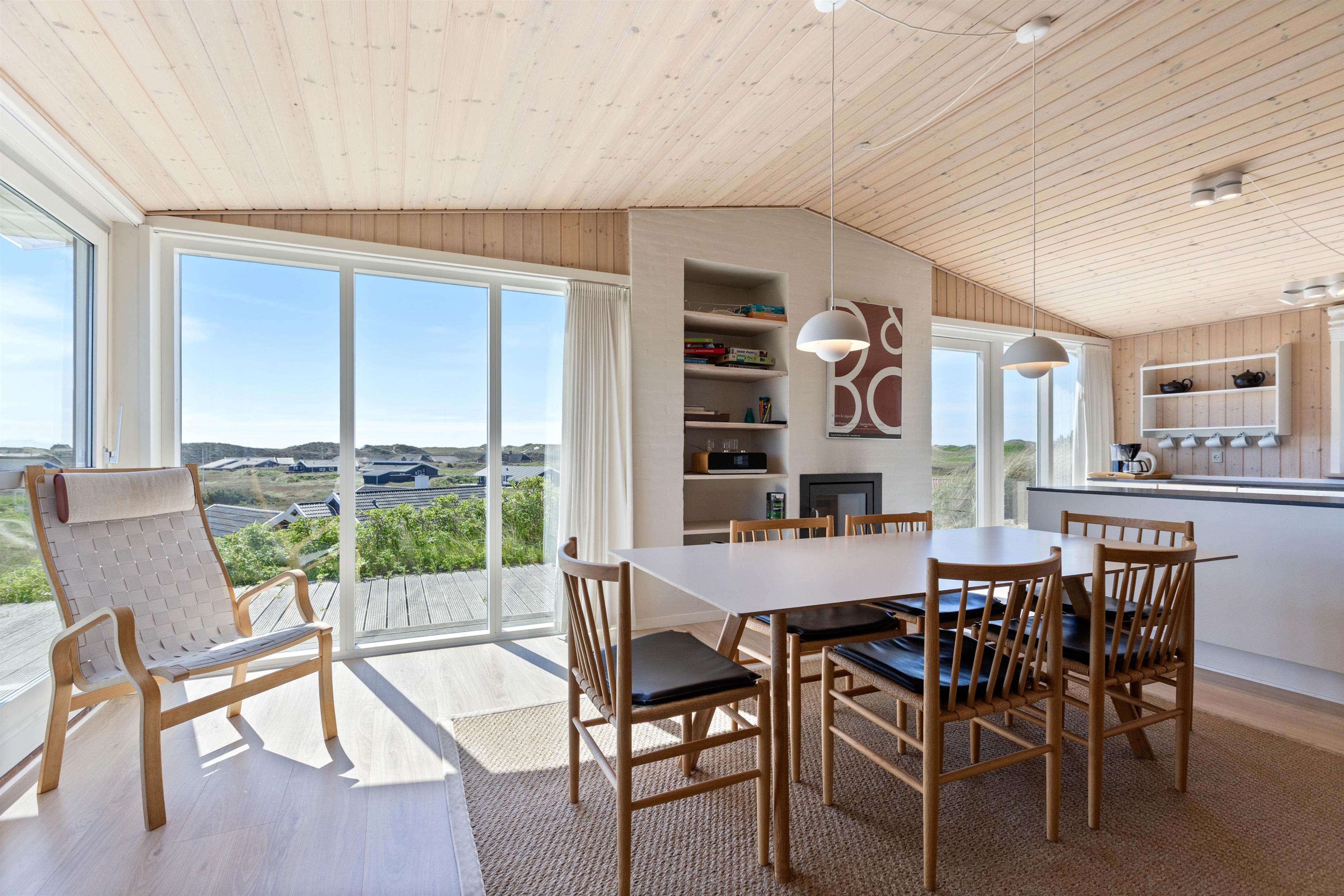 Sommerhuset er i 2020 blevet moderniseret. Det er smagfuldt indrettet med øje for detaljer. Den store opholdsstue huser ikke kun en behagelig sofa og lænestol, men også et stort spisebord, en pejs og det integrerede, åbne køkken. Køkkenet er veludstyret og har naturligvis en opvaskemaskine, som gør hverdagen i sommerhuset lige dét lettere. Sommerhuset fremstår lyst og pænt, og har et fint køkkenalrum, hvor der er god plads til masser af godt samvær med familien. De store flotte vinduespartier sørger både for et godt lysindfald og ikke mindst en dejlig udsigt.
