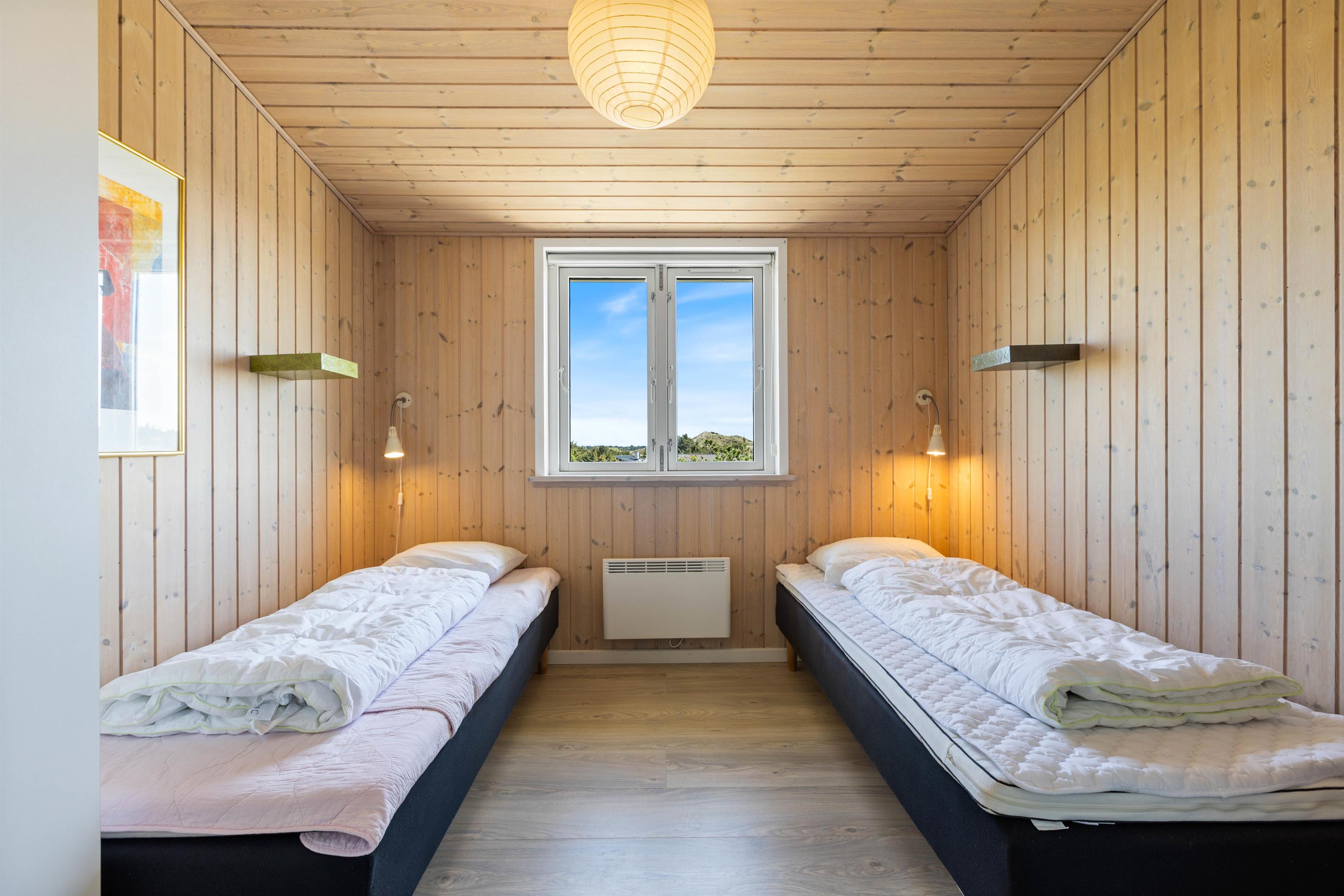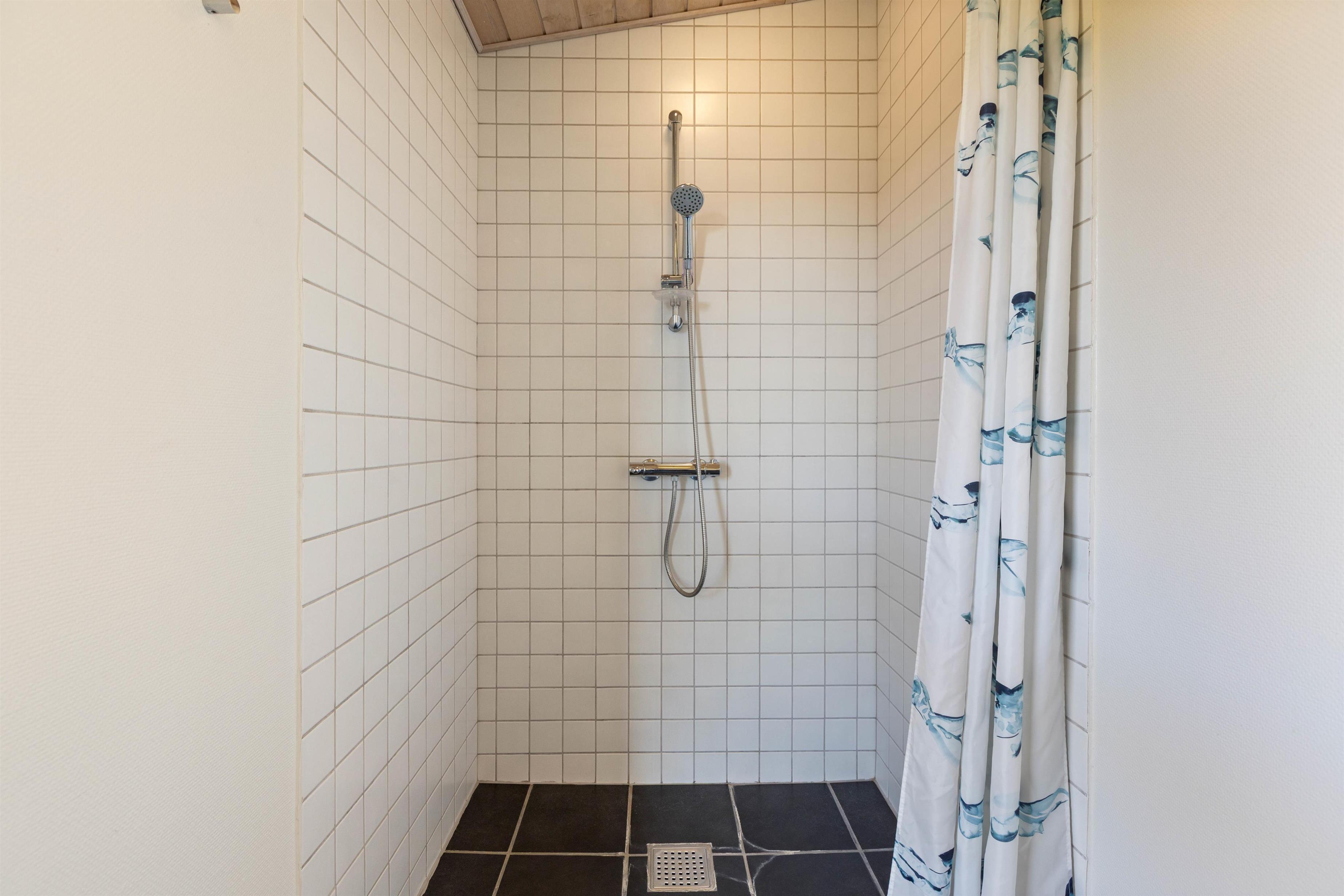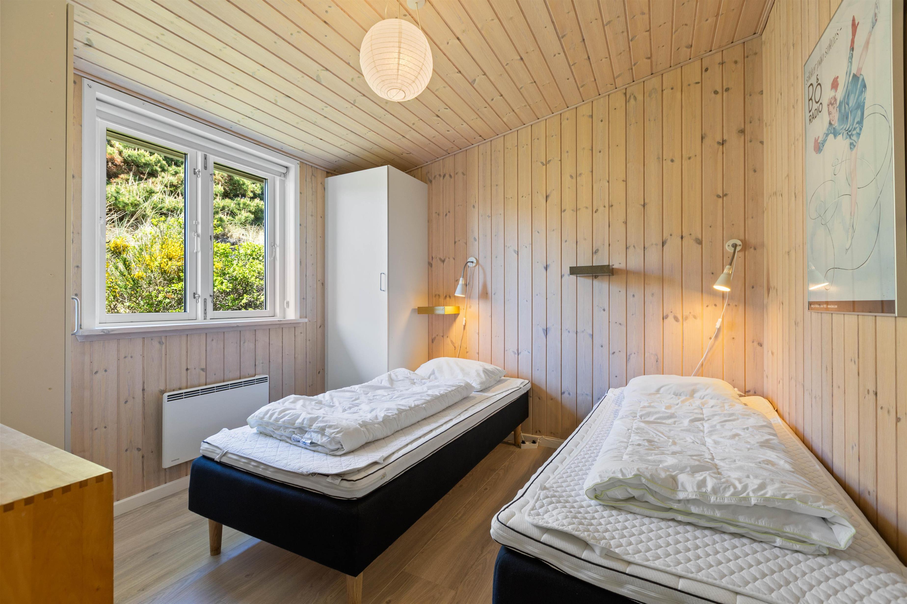 Husets seks sovepladser er fordelt over tre soveværelser med enkeltsenge. Sommerhuset rummer desuden to badeværelser. Utrolig praktisk, især om morgenen. Der er bruser og gulvvarme på begge badeværelser, så varme fødder er garanteret.