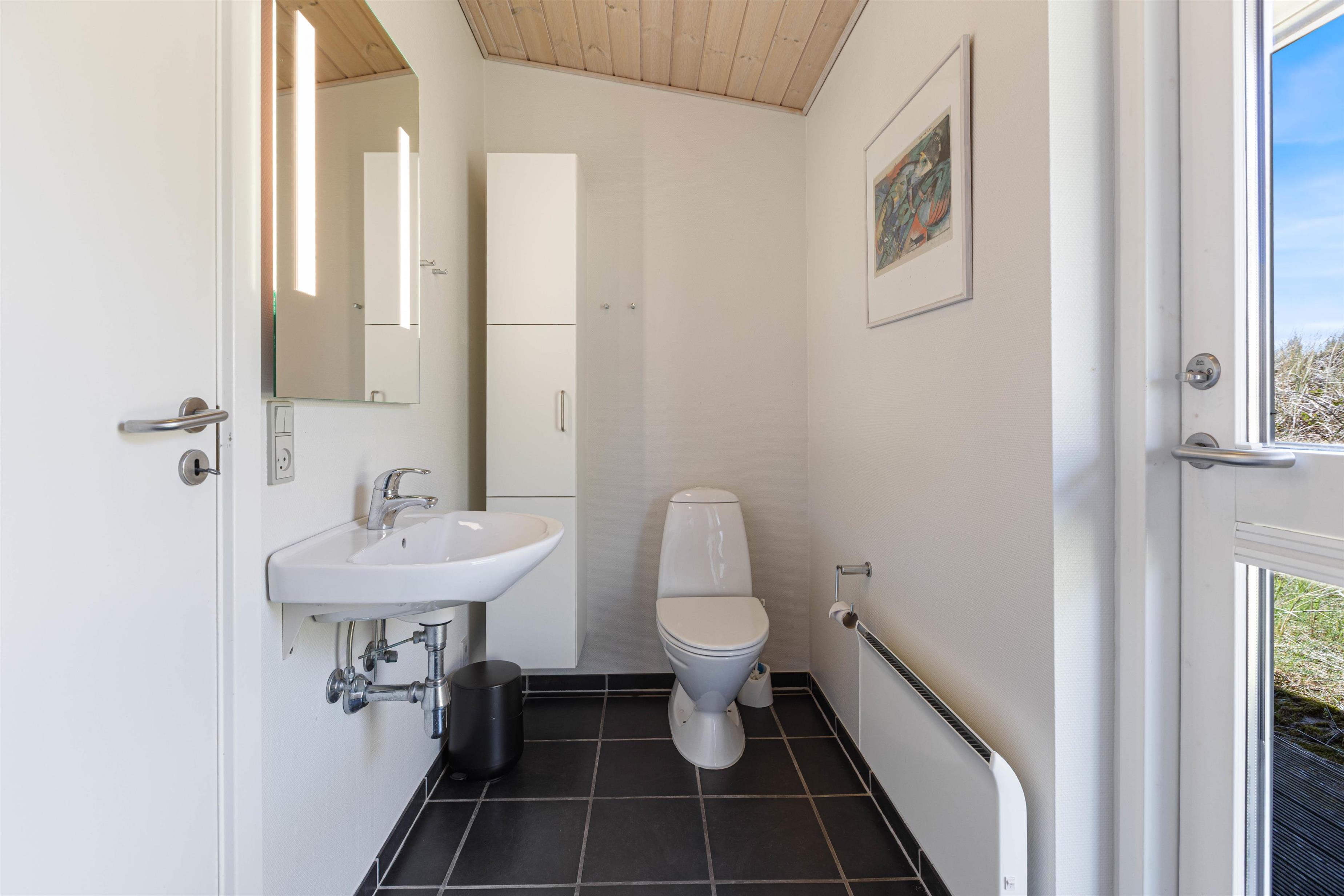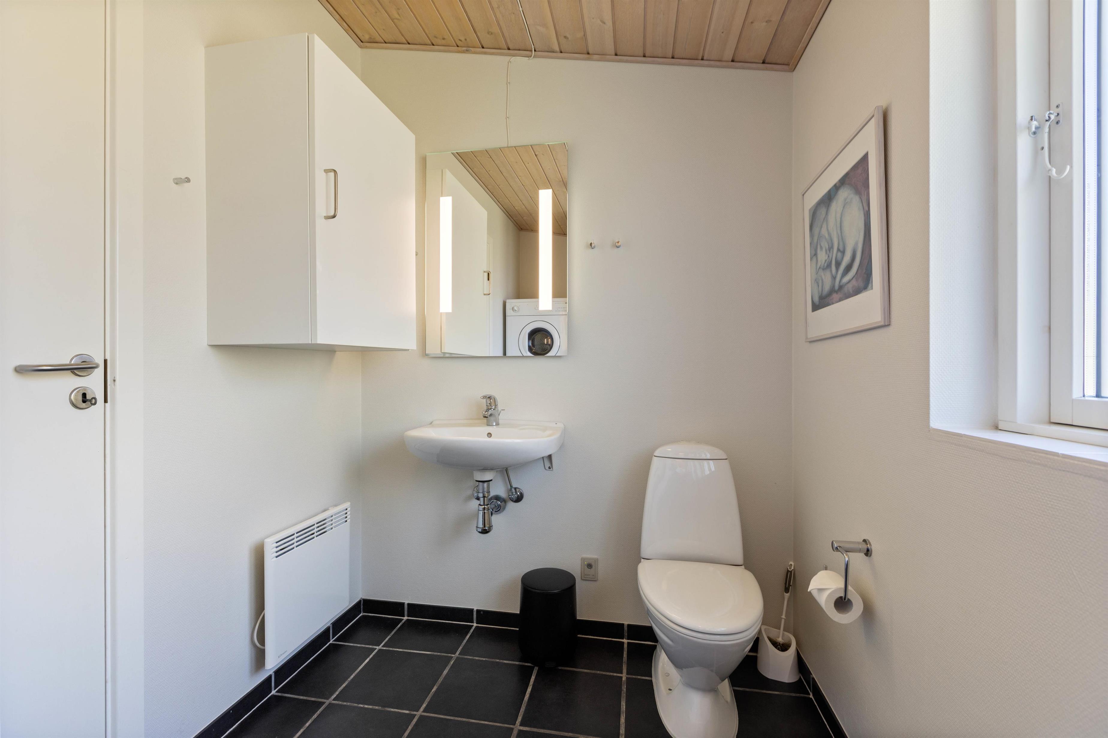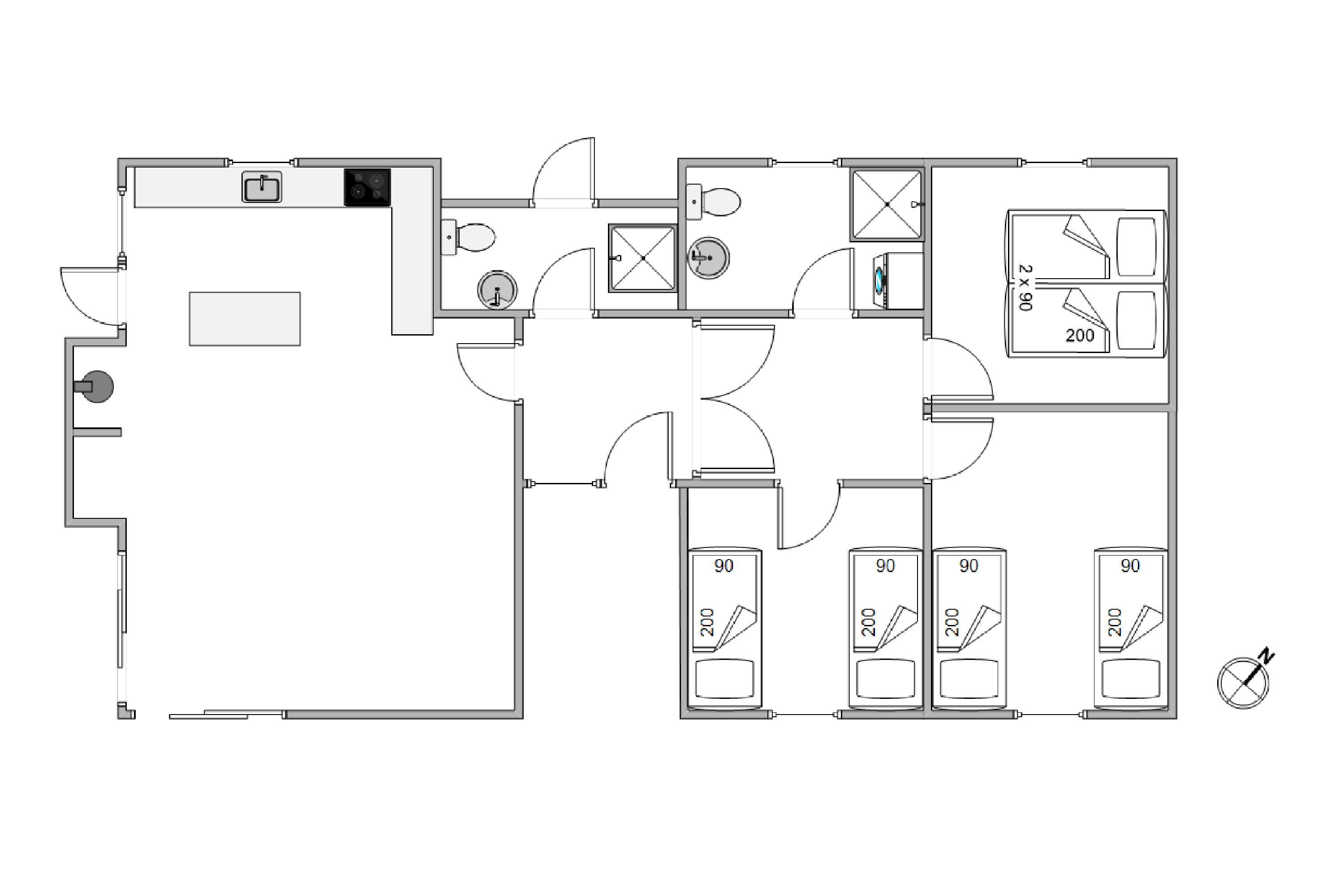 Husets seks sovepladser er fordelt over tre soveværelser med enkeltsenge. Sommerhuset rummer desuden to badeværelser. Utrolig praktisk, især om morgenen. Der er bruser og gulvvarme på begge badeværelser, så varme fødder er garanteret.