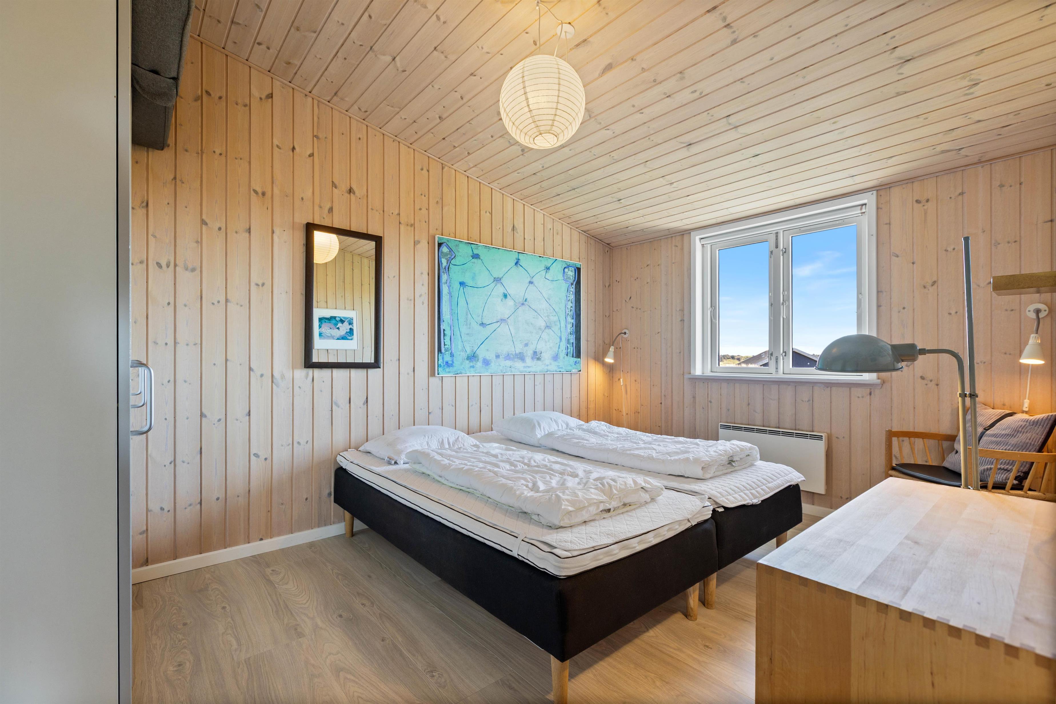 På en 3795 kvadratmeter stor, kuperet klitgrund i Houvig, nær Søndervig, ligger dette, i 2020 renoverede, skønne sommerhus. Op til 6 personer og 2 hunde kan tilbringe nogle skønne dage i den smukke vestjyske natur, kun 350 meter fra stranden. Naturligvis må jeres hunde også komme med på Sortebærdalen 15!