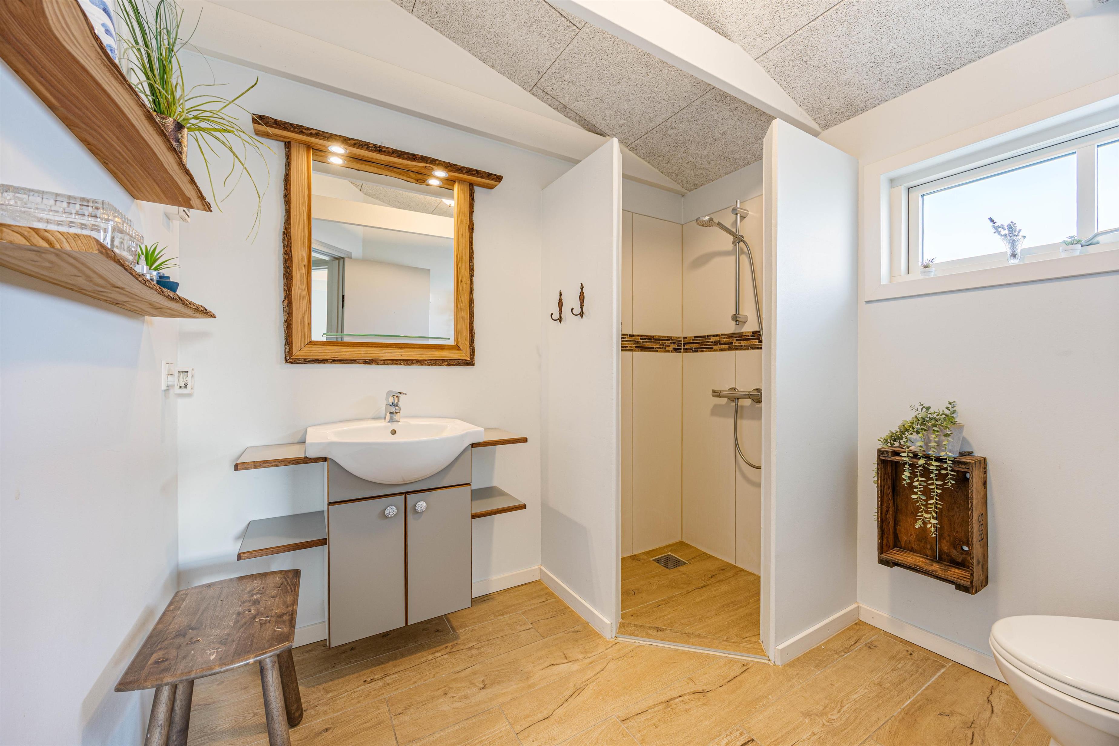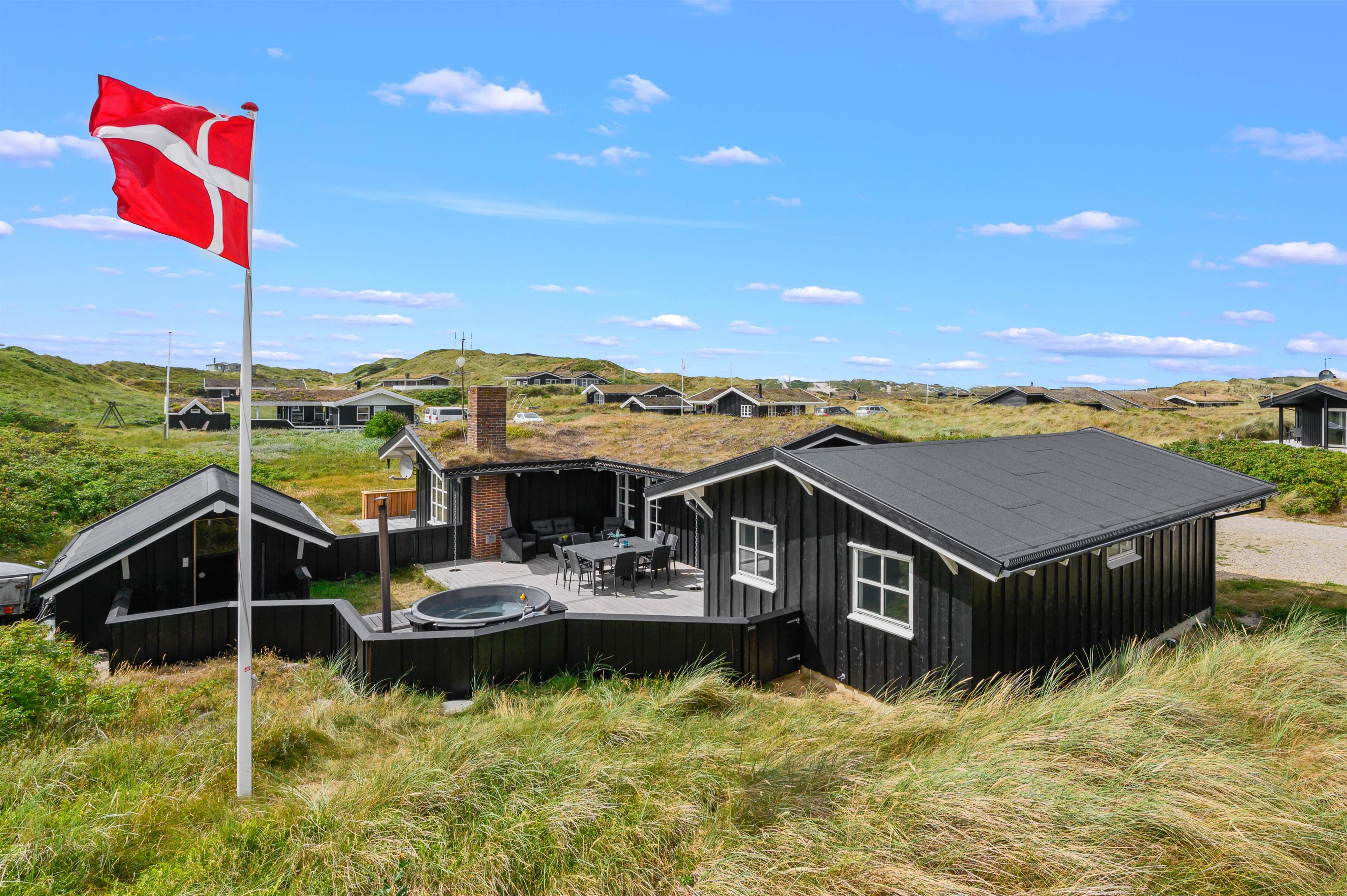 Dette flotte sommerhus rummer plads til 8 gæster og er i den grad indrettet med kærlighed og sans for detaljen. Ud over et indbydende indre får I her et lækkert udendørsareal med flere terrasser, gode havemøbler og ikke mindst jeres helt egen saunahytte. Stranden ligger kun 350 meter væk, og få minutters kørsel bringer jer ind til Søndervigs hyggelige centrum. Hund er tilladt.