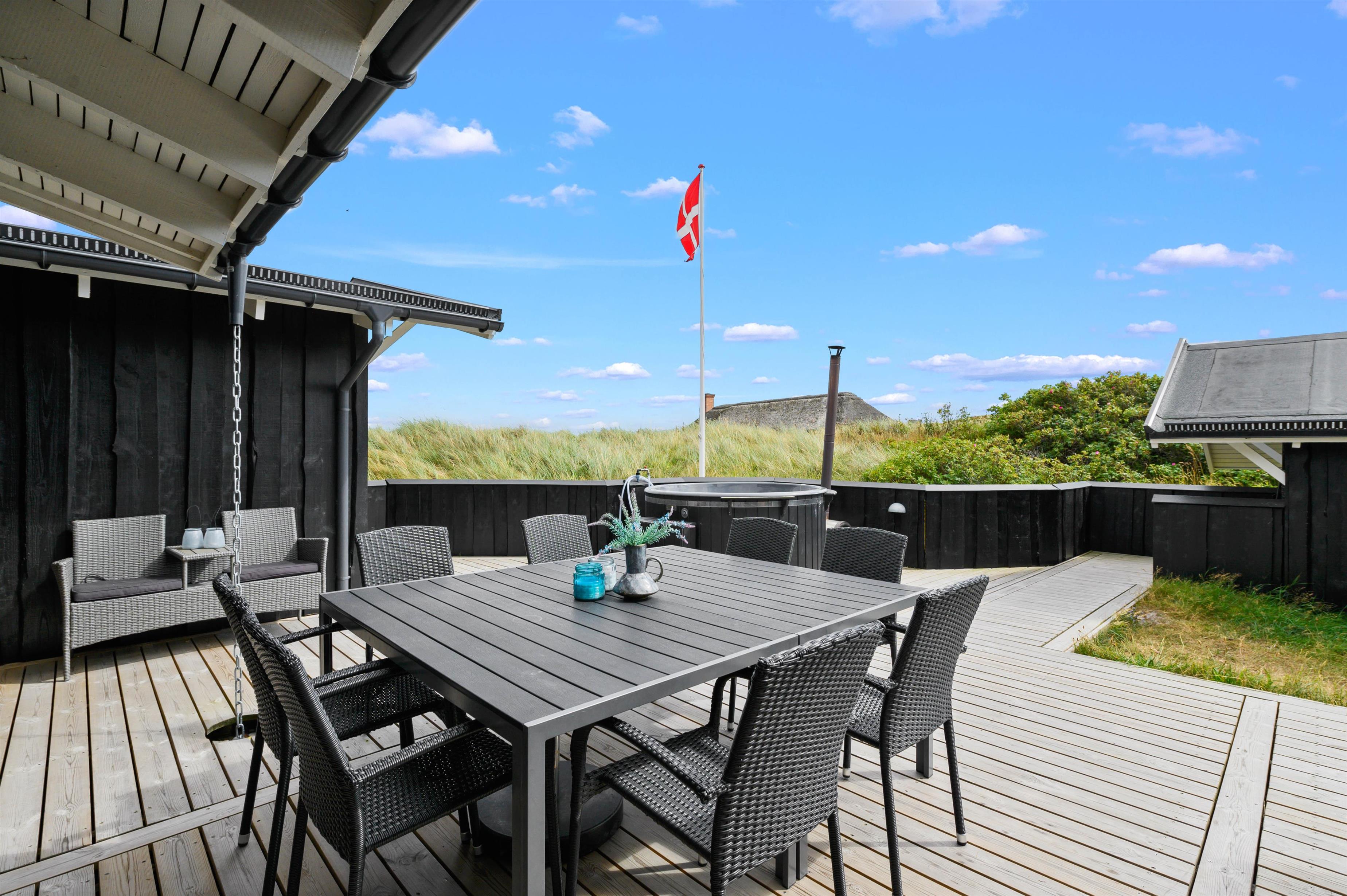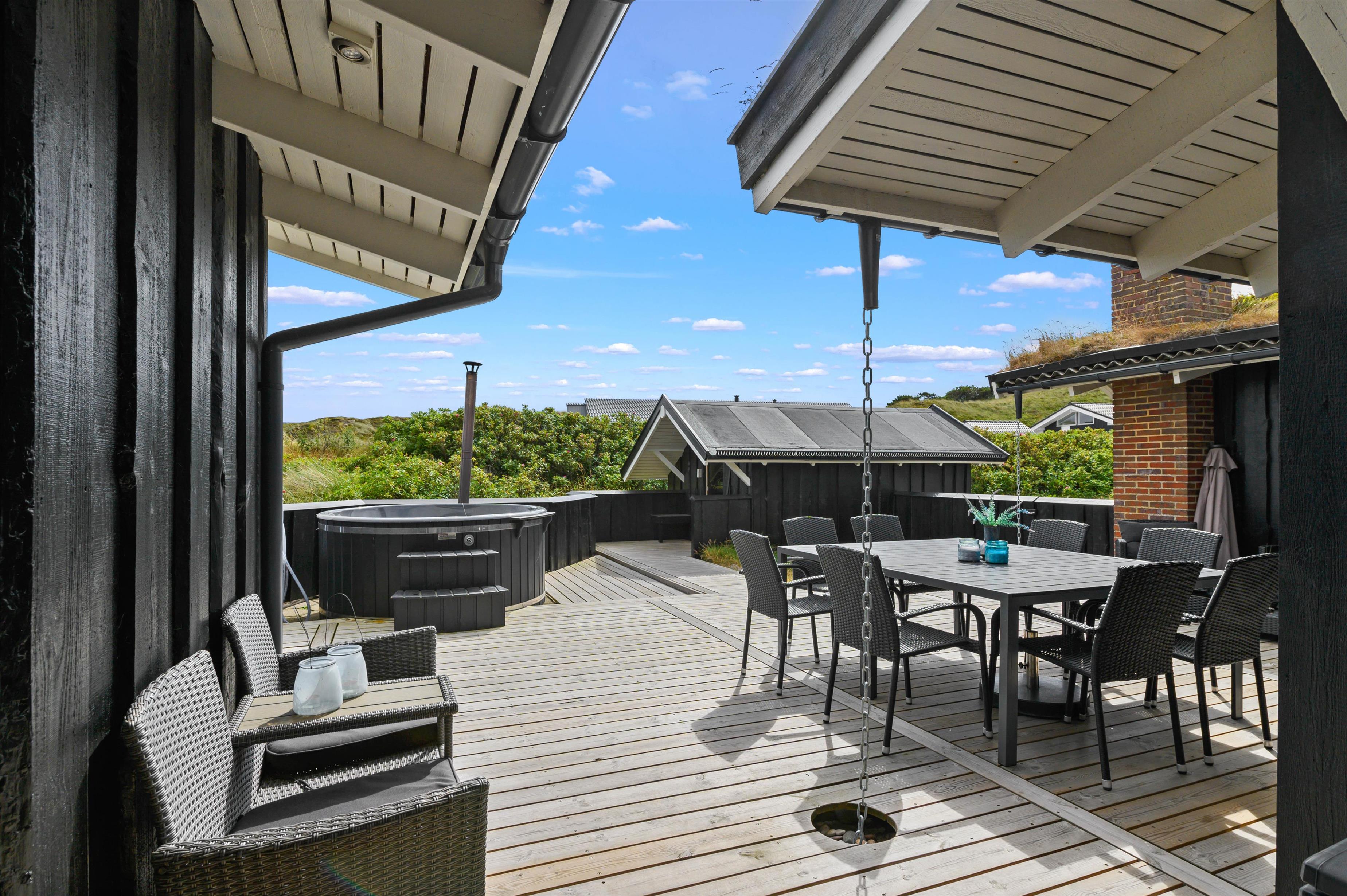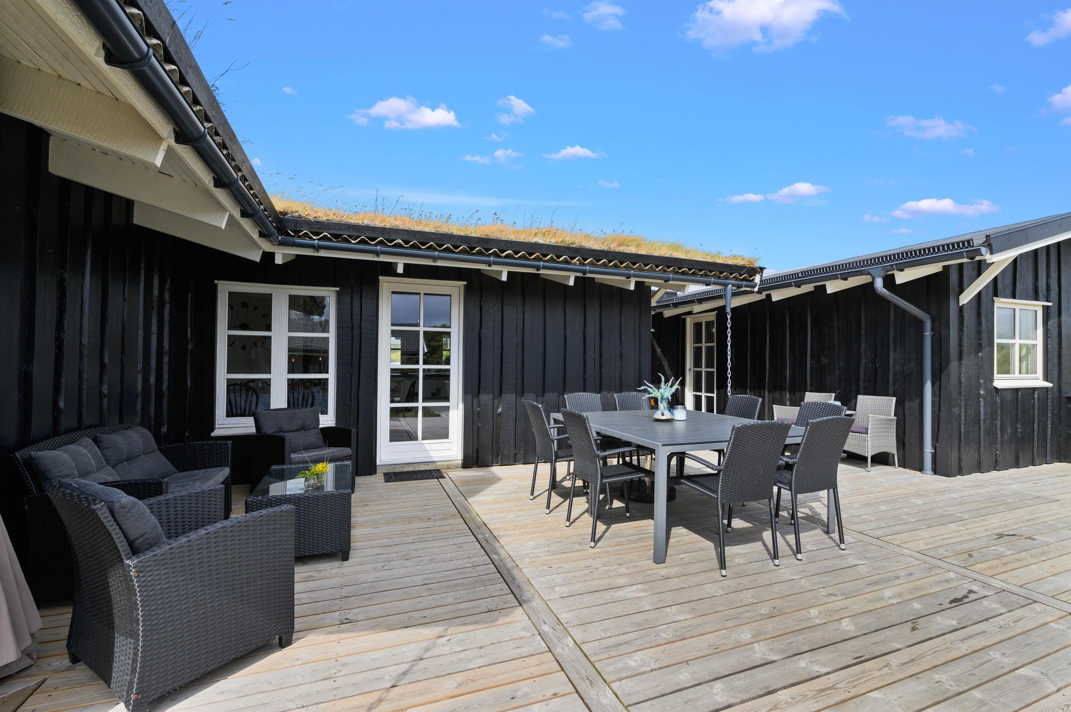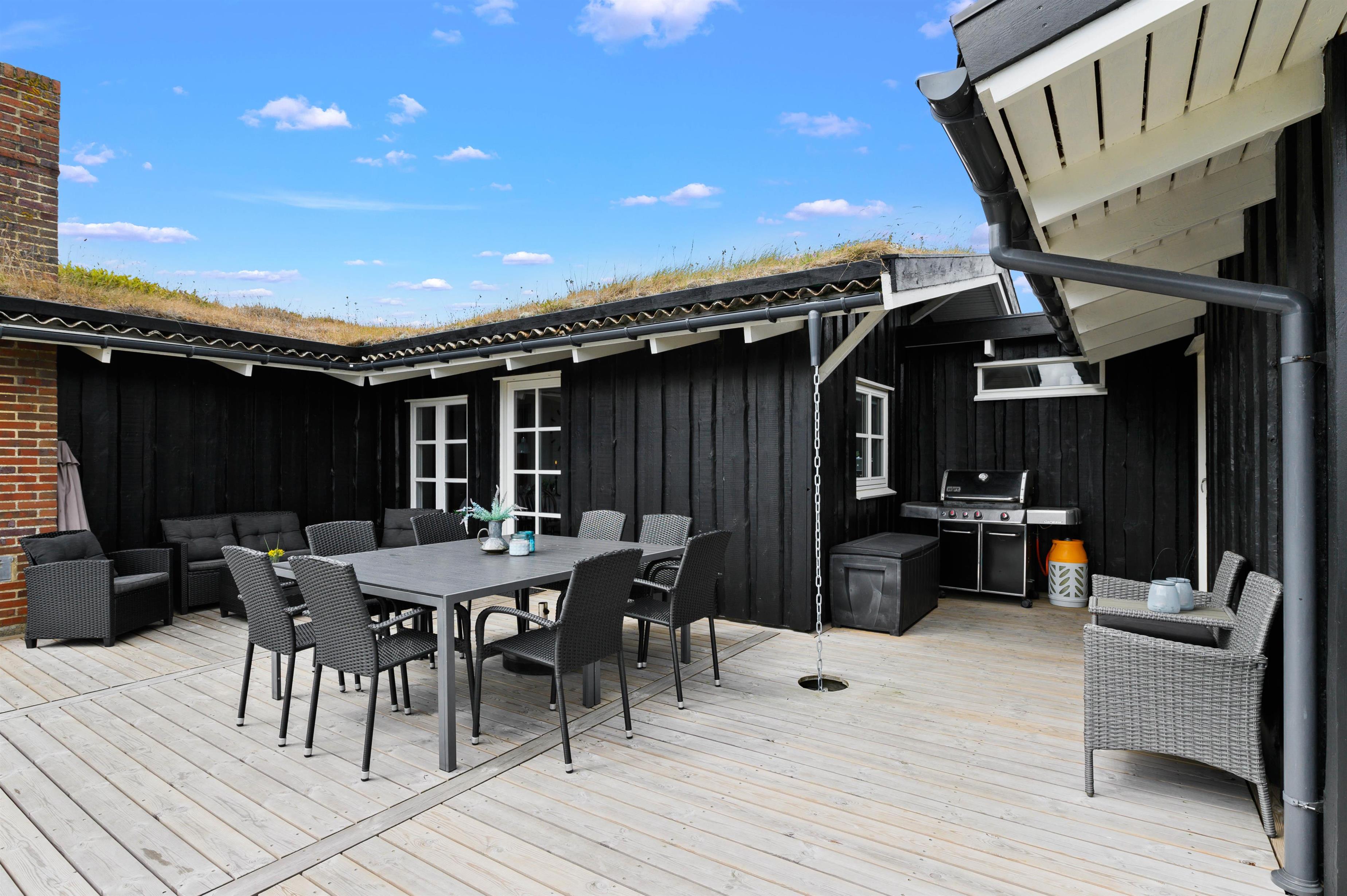 Feriehusets terrasser indbyder bestemt til at rykke udenfor i det gode vejr og nyde den friske havluft. Her er sørget for gode havemøbler, loungesæt og en praktisk gasgrill, så I hurtigt kan tænde op og tilberede maden på grillen.