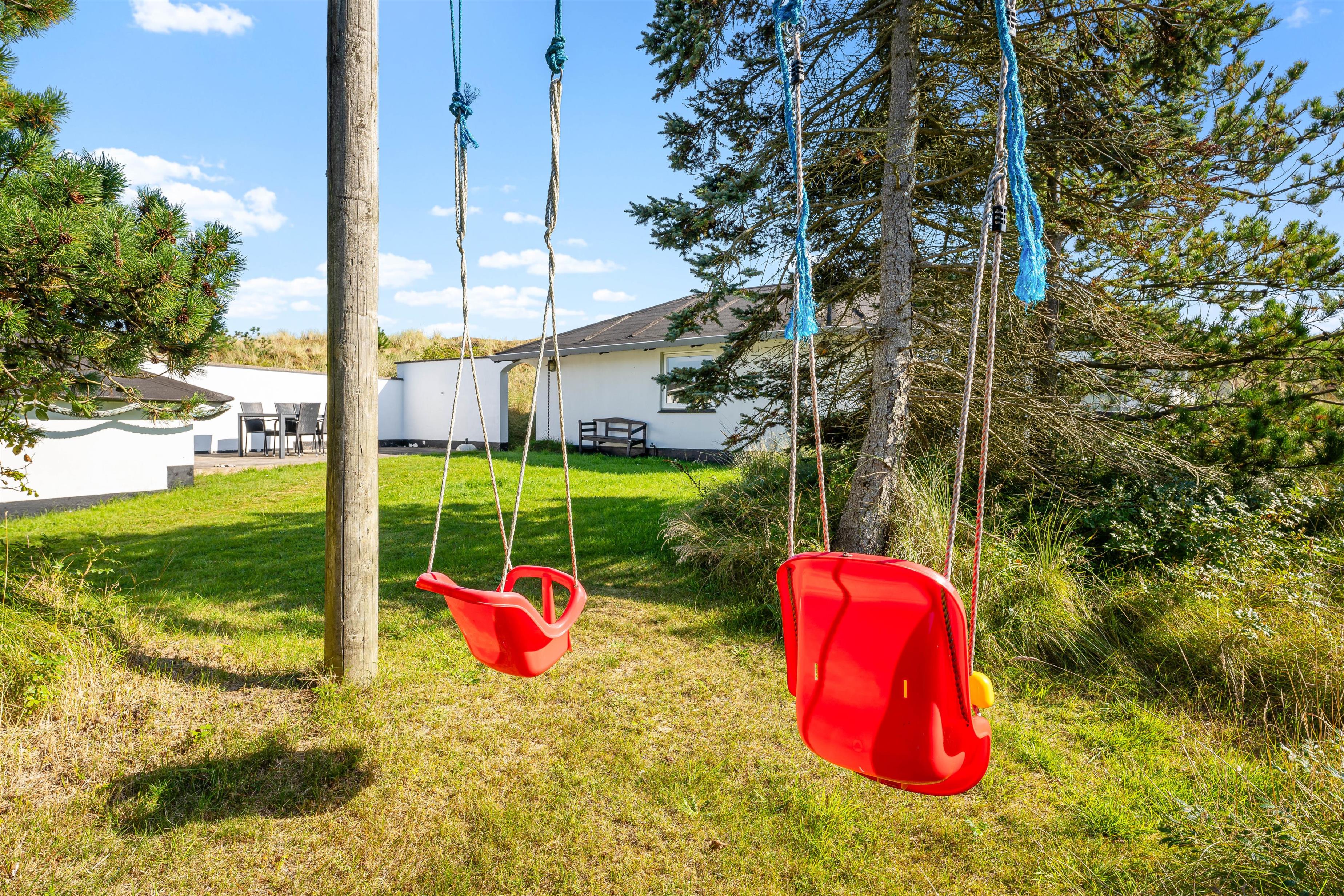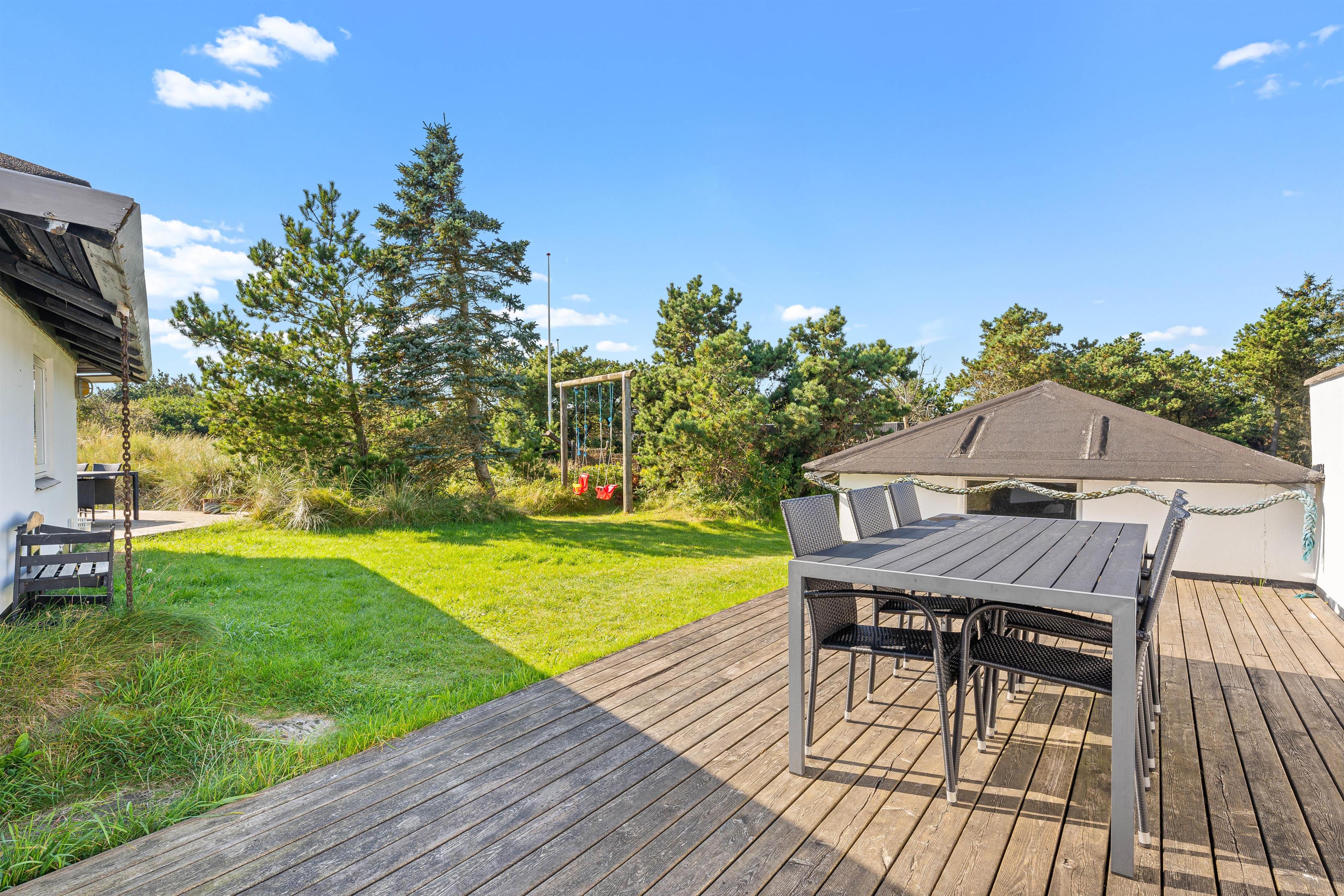 Sommerhusområdet Houvig er et skøntnaturområde og I har kun 500 meter til det brusende og rå Vesterhav. Ved sommerhuset finder I en dejlig afskærmet terrasse og et godt uderum med gynge, havemøbler og liggestole. Grunden på Sneppedalen 20 er på godt 3500 m2 og der er således masser af plads til at boltre sig på. Der hører også en grill med til huset, så I kan nyde de lune sommeraftener med en god middag på terrassen.