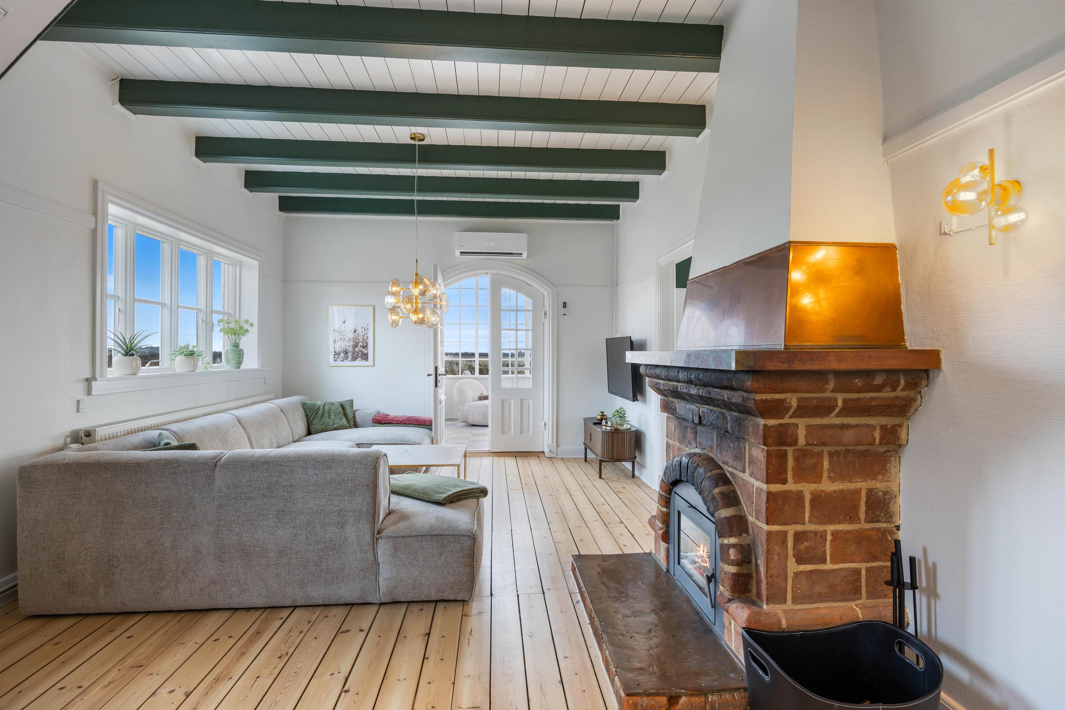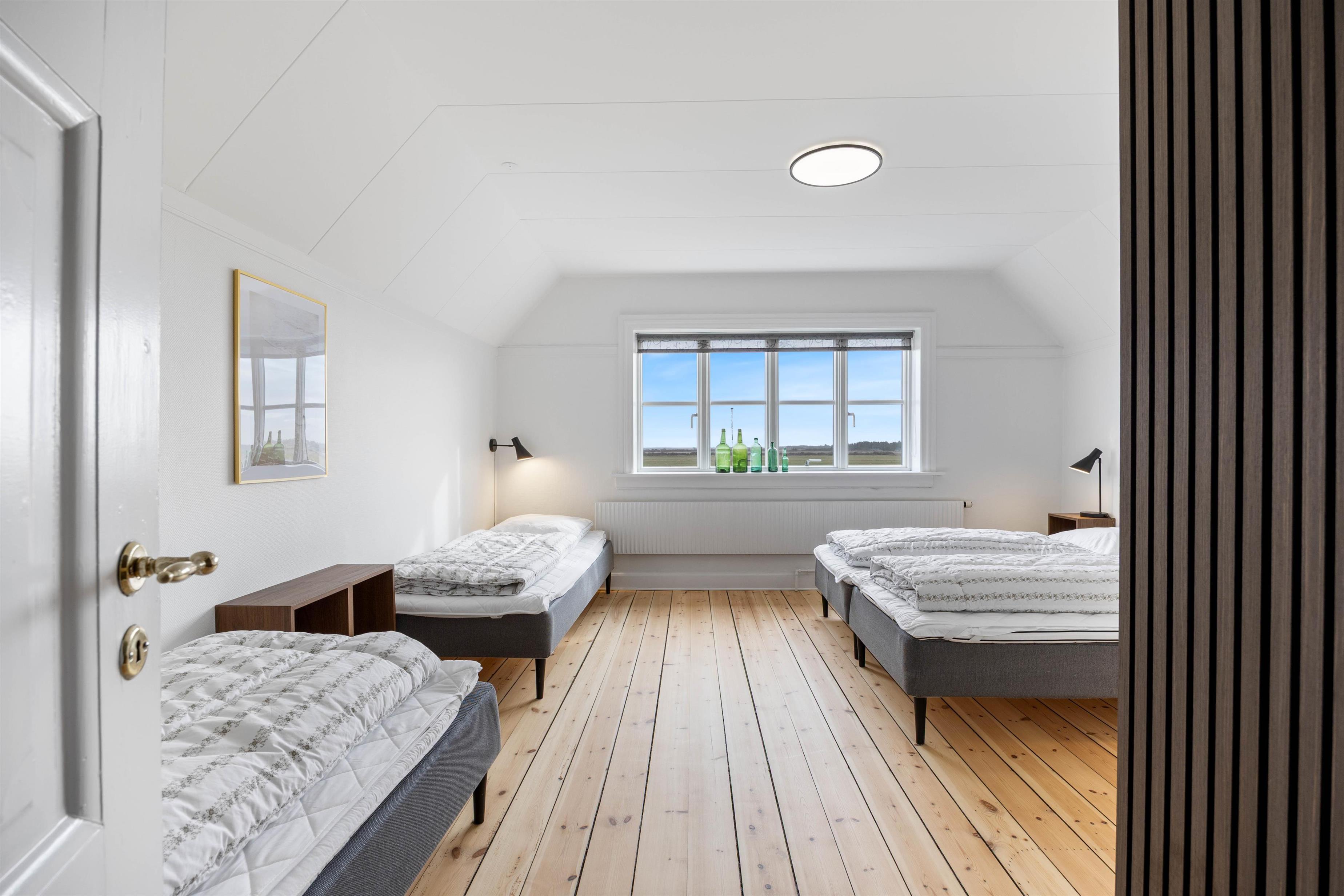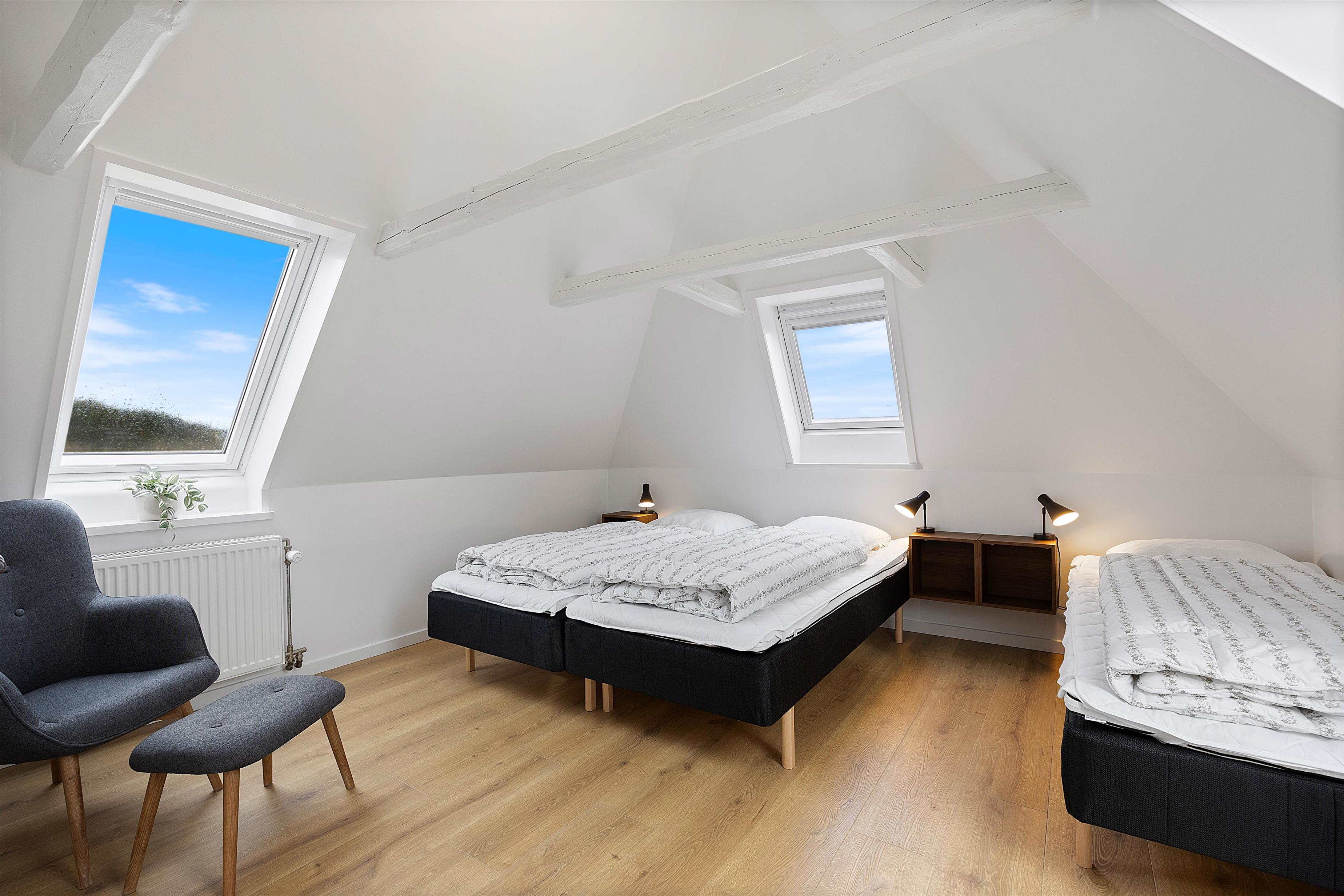 Det rummelige feriehus består af ikke mindre end 7 soveværelser, med 18 sovepladser, med 2 ekstra senge i annekset. Der er fire fuldt udstyrede badeværelser, hvoraf tre har gulvvarme, hvilket der sørger for at I ikke skal bekymre jer om kolde fødder om morgenen her. En energibesparende luft-til-vand-varmepumpe sørger for behagelige temperaturer i feriehuset hele året rundt.