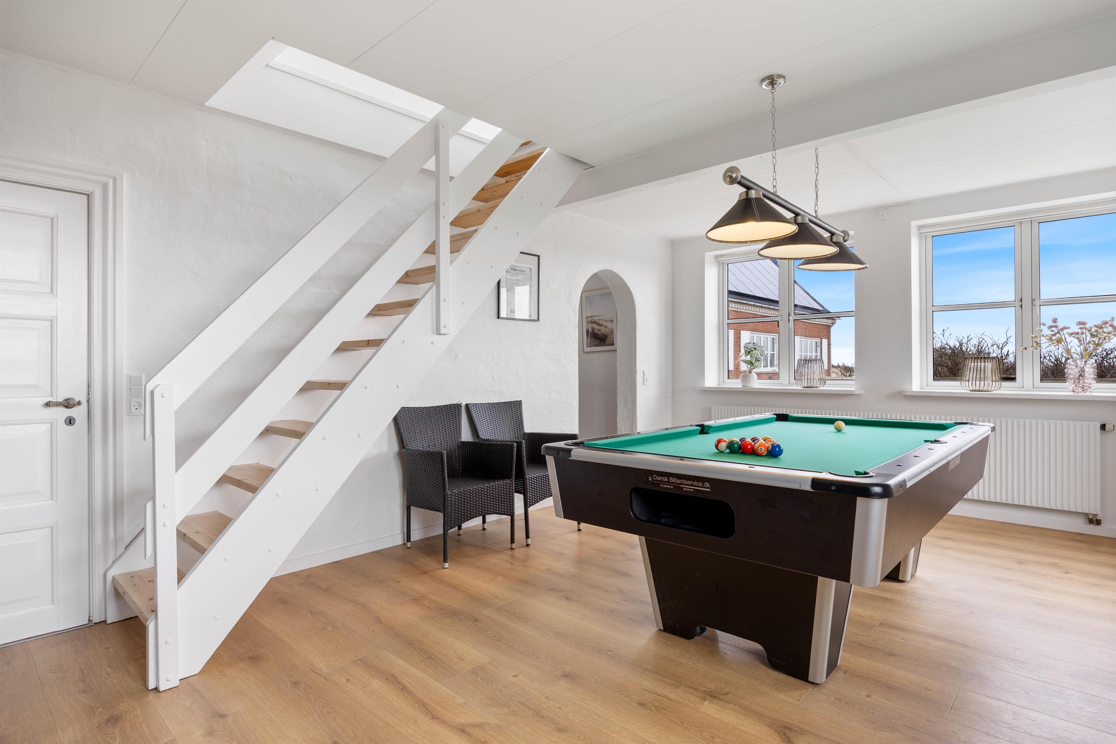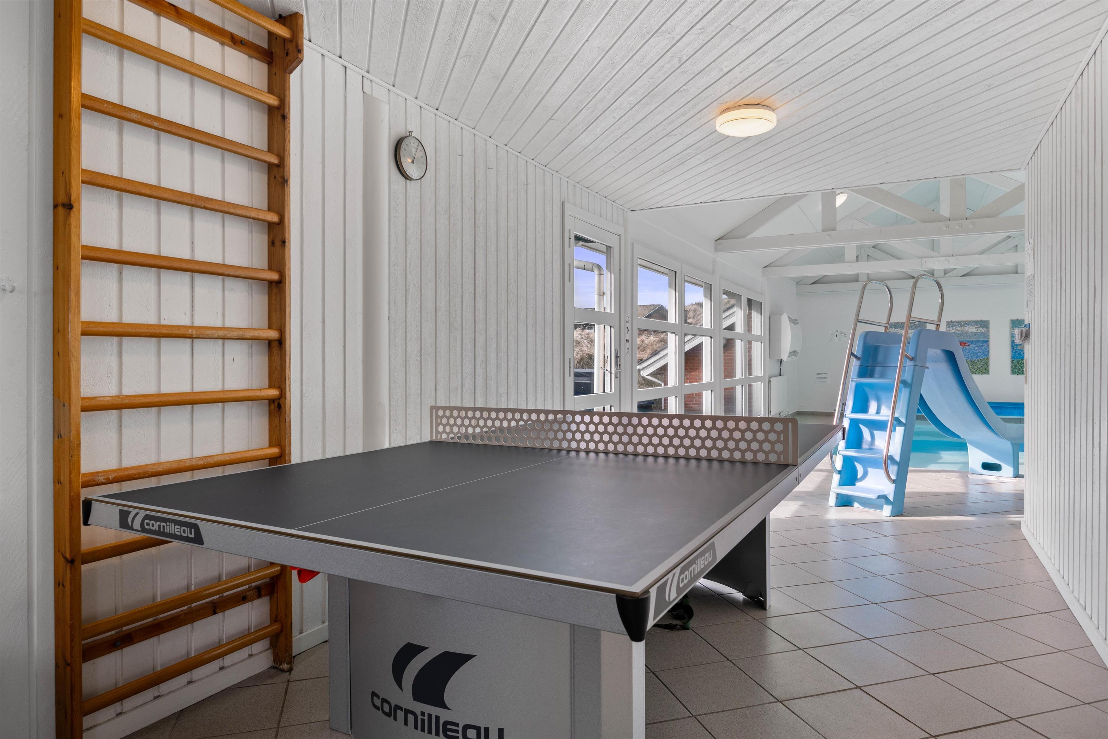 Bliv imponeret over alle de aktiviteter, der er tilgængelige for jer i feriehuset. Hop en tur i den 20 m² store swimmingpool, eller tag en tur i det udendørs spabad. Efter en lang dag i klitterne, kan det helt klart anbefales at tage en tur i saunaen, som helt sikkert vil give jer en ekstra god af afslapning. For spilentusiaster er der et poolbord, bordtennis og bordfodbold - her er der garanti for sjov.