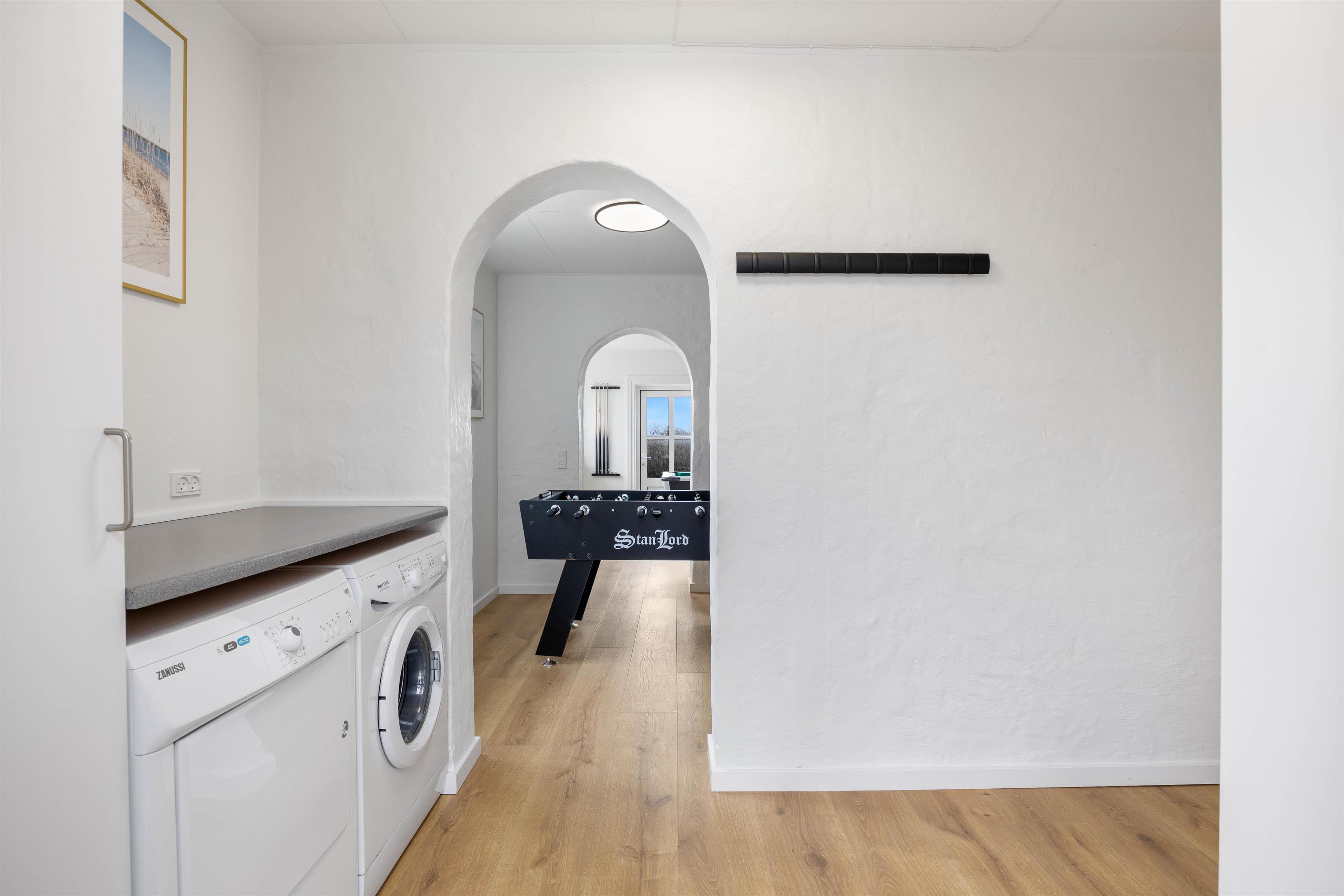 Feriehuset byder på mange gode faciliteter, som vil gøre jeres ophold særligt behageligt. Det moderne, fuldt udstyrede køkken har bl.a. en opvaskemaskine, så I kan fokusere mere på at lave mad sammen og mindre på at vaske op. Der er også en vaskemaskine og en tørretumbler der er med til at gøre ferielivet lidt mere bekvemt for jer alle.