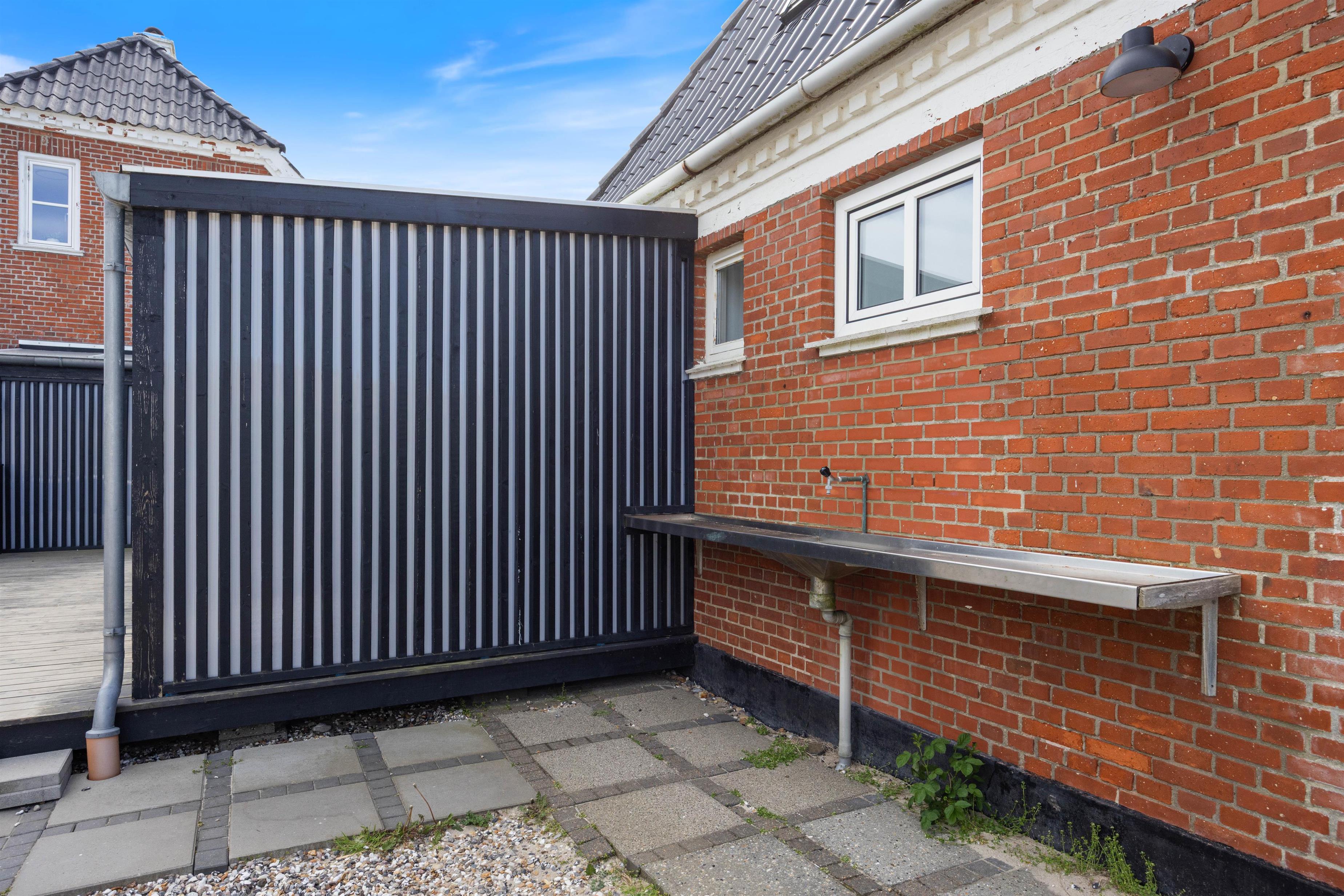 Den 6000 m² store ejendom byder på uendelig plads til at nyde naturen i al dens pragt. Rundt om feriehuset finder i også en række forskellige terrasser, som venter på jer- åbne, overdækkede og afskærmede områder giver den rette plads til enhver vejrsituation. For de yngre gæster er der en gynge og en sandkasse på grunden. Aftenerne kan rundes af med en hyggelig grillaften på terrassen. For fiskeentusiaster er der et udendørs område, hvor man kan rense sin fangst og tilberede den til umiddelbar indtagelse.