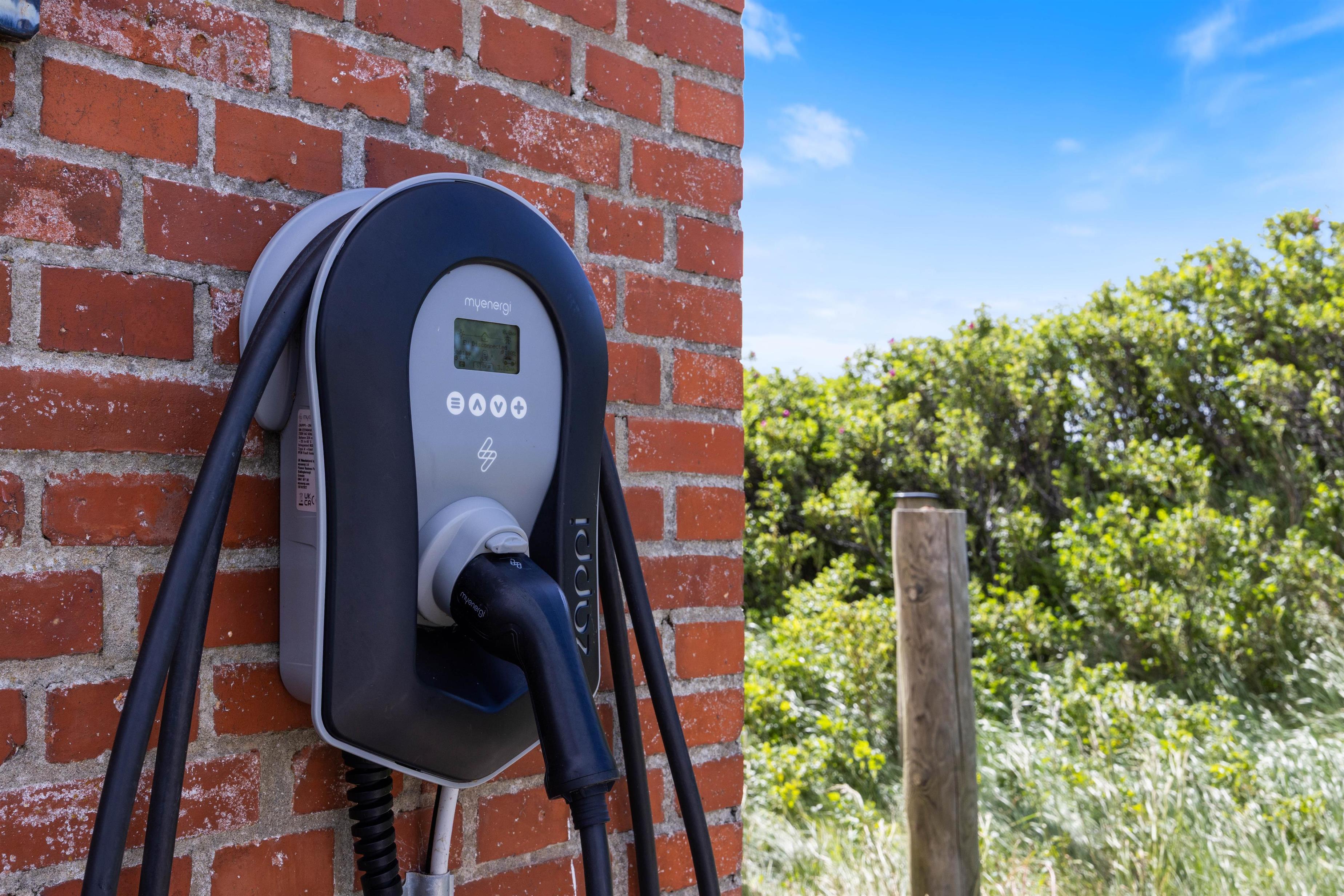 Hvis i rejser i el-bil, har i her mulighed for at lade direkte ved feriehuset, i skal blot huske at medbringe jeres eget ladekabel.