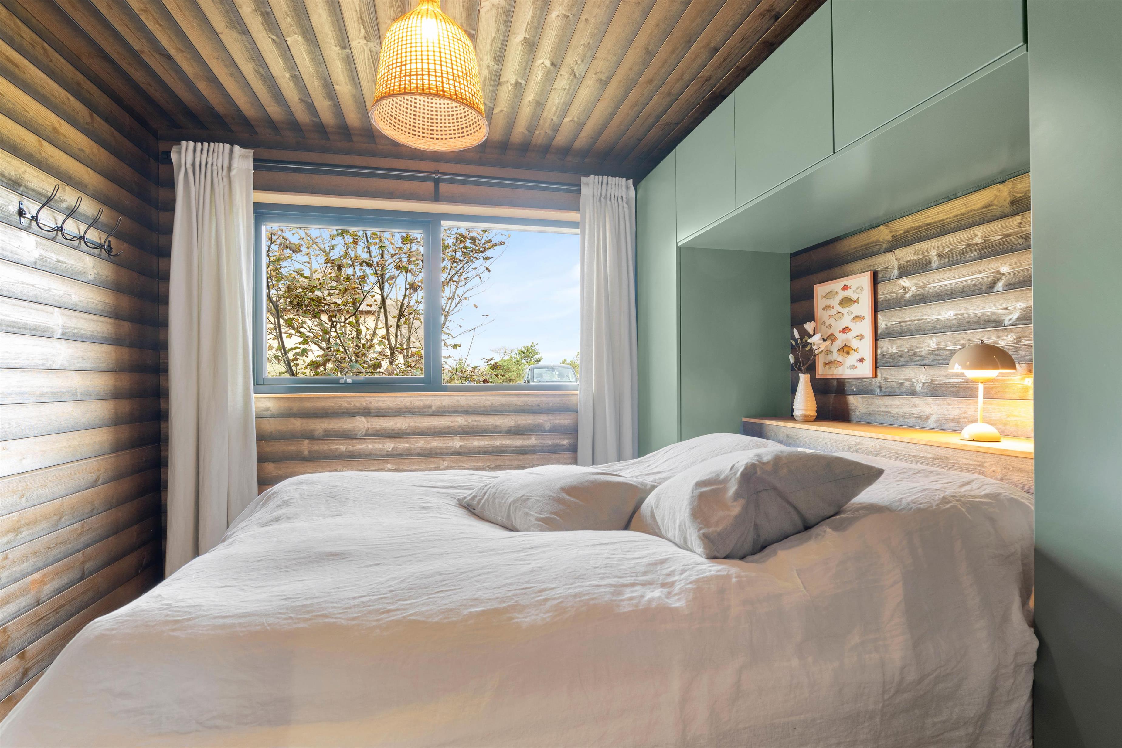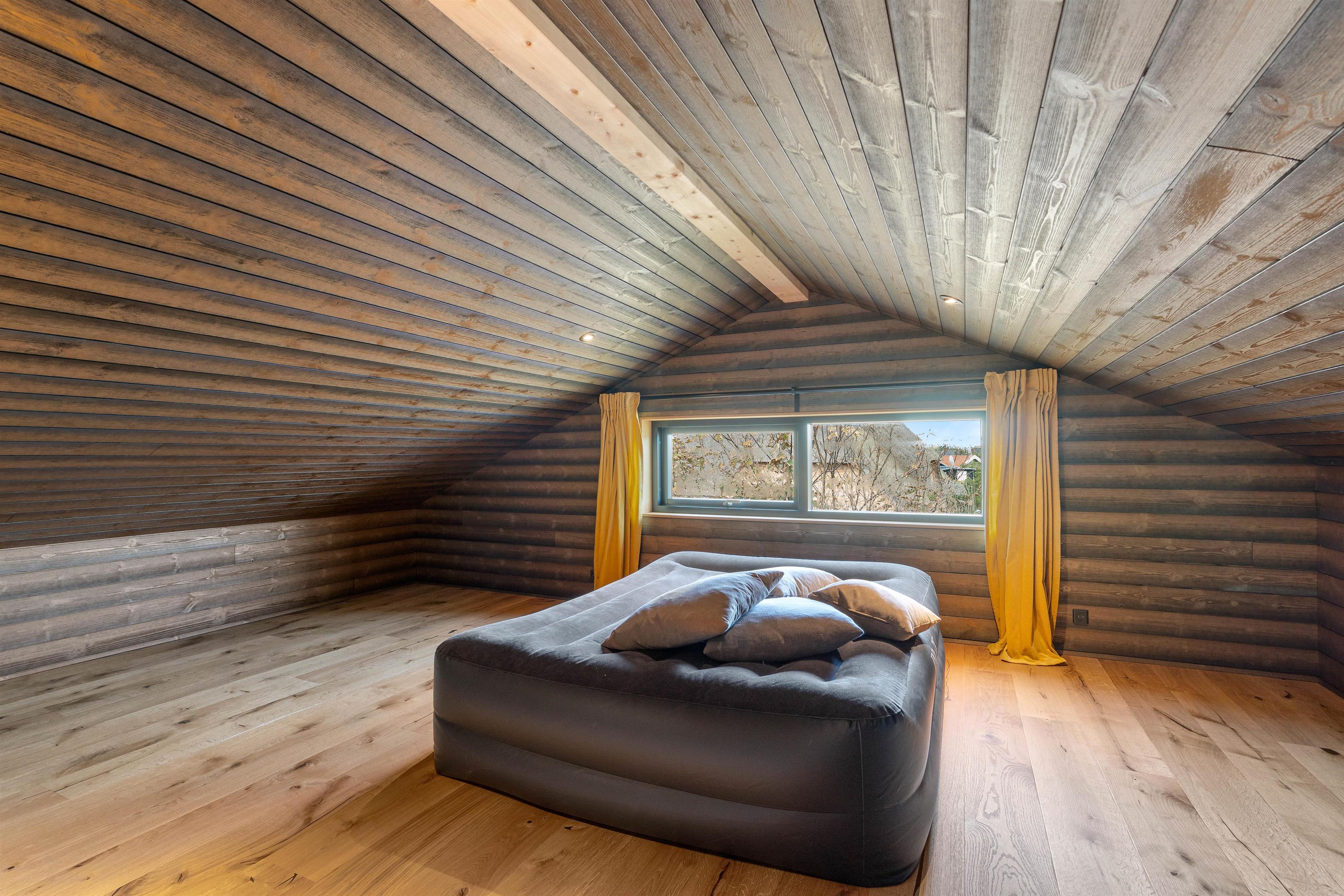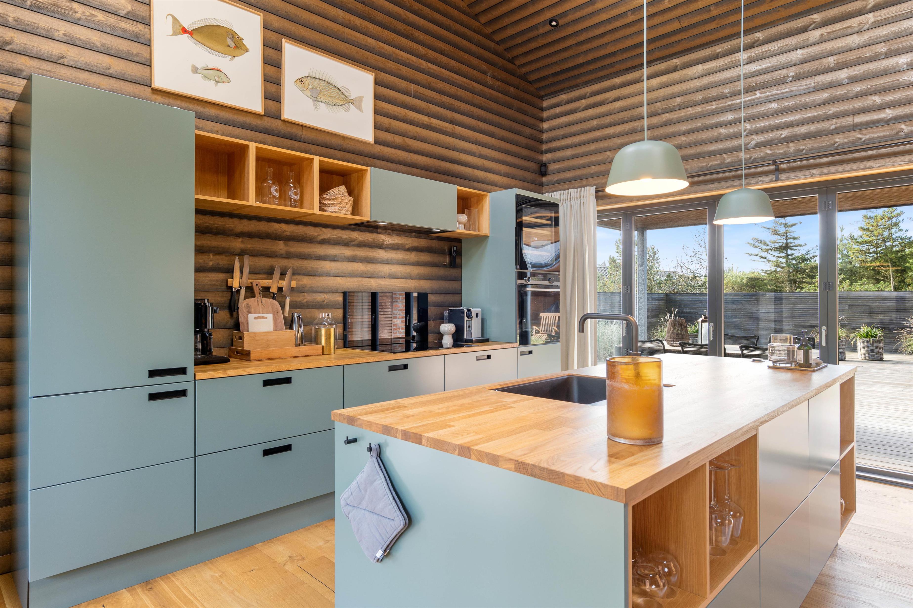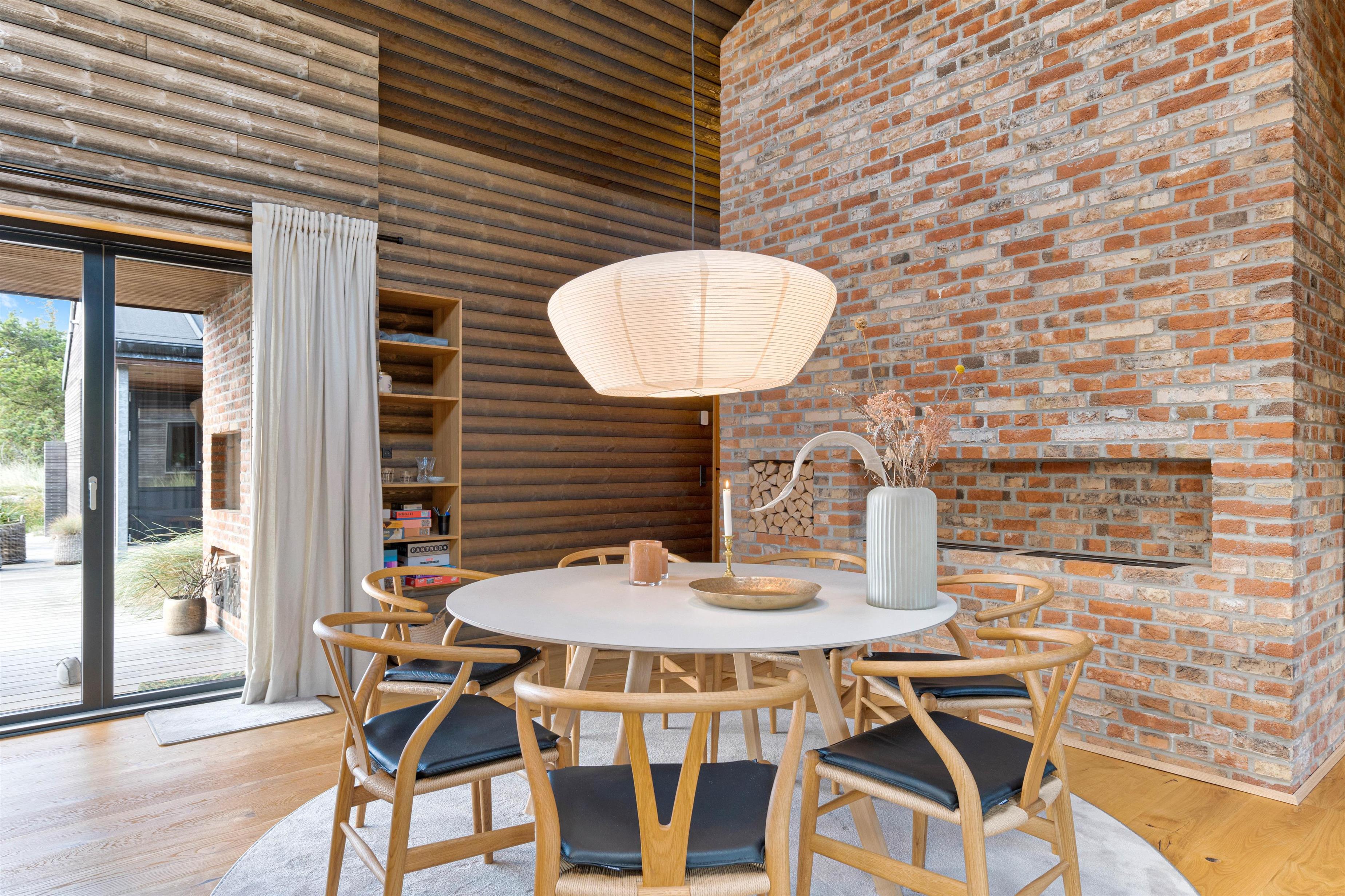 Sommerhuset har en helt unik indretning og de store Velux ovenlysvinduer tillader sollyset at strømme ind i feriehuset. Der er 3 soverum med dobbeltsenge og et flot badeværelse med badekar samt gæstetoilet. I stuen finder I bl.a 2 indbyggede biobrændere, hvor I kan sidde og slappe af og nyde flammerne i pejsen efter en dejlig spadseretur på stranden.