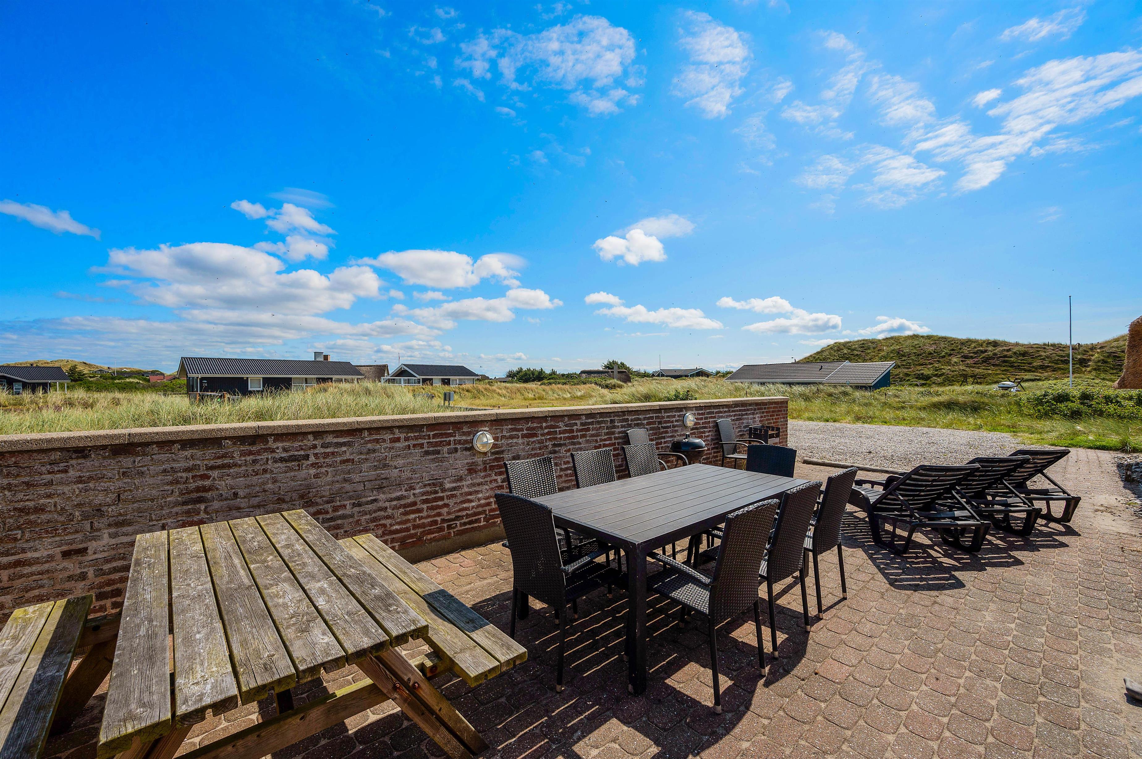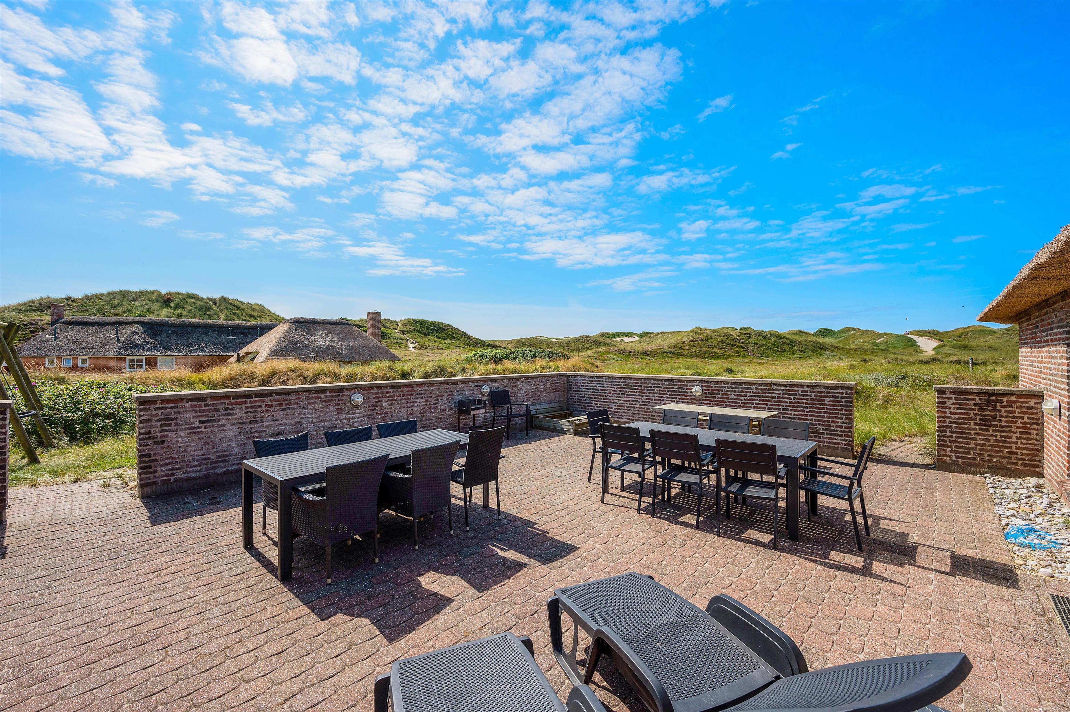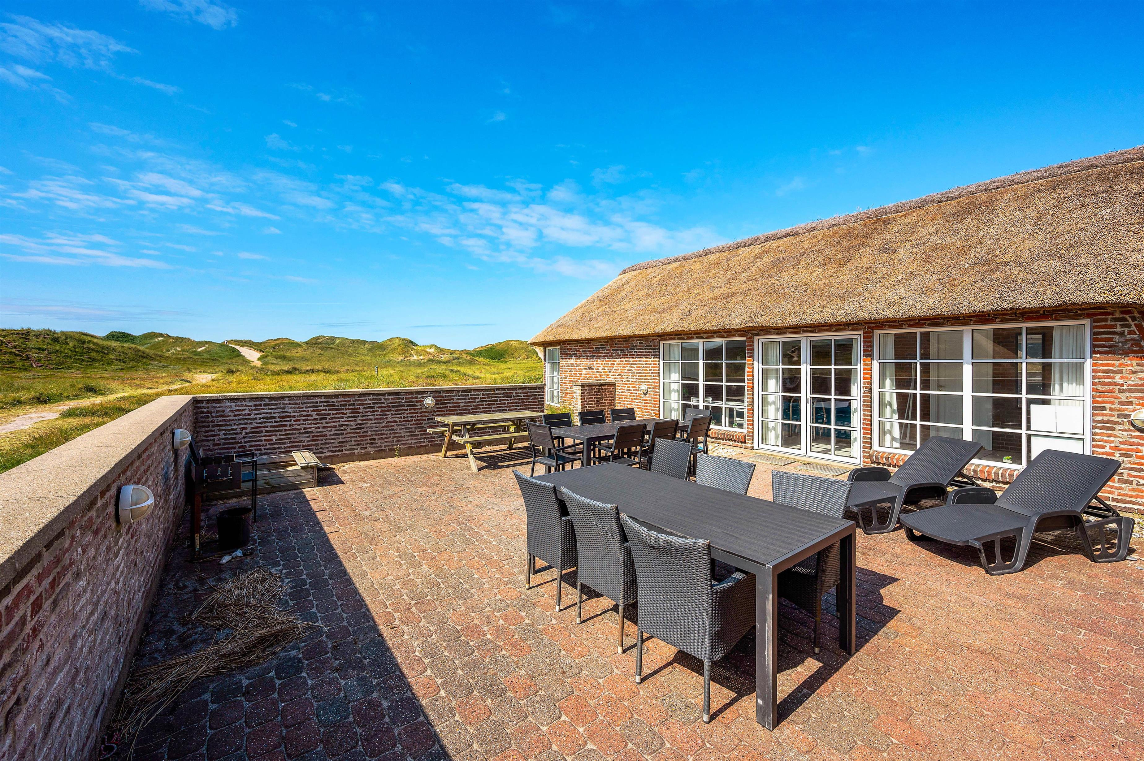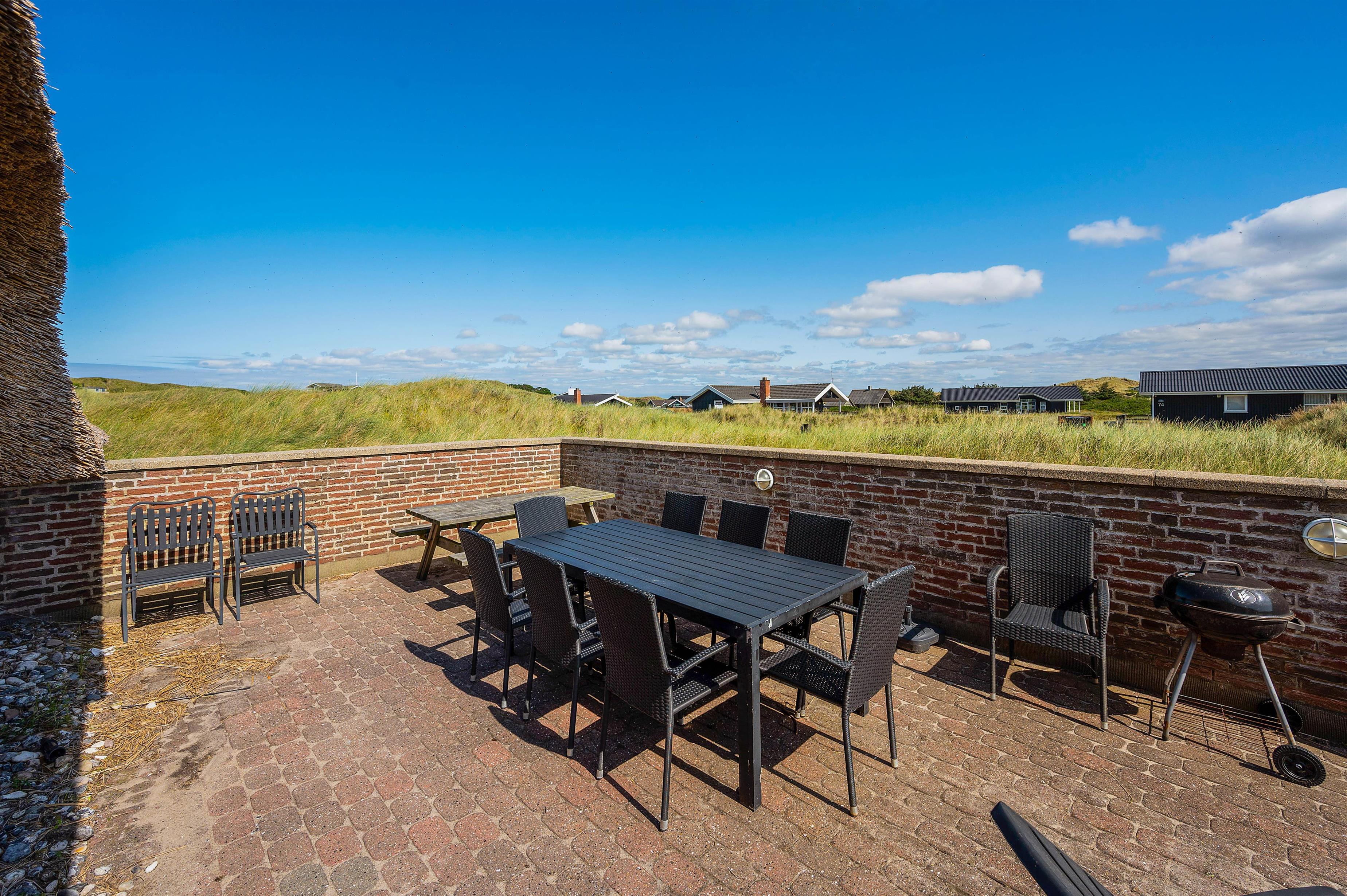 Sommerhuset ligger ved sidste klitrække inden Vesterhavet og kun 150 meter fra vandet. Det betyder, at udsigten fra husets er helt enestående. Her kan du nyde synet af de vidstrakte klitter og svajende marehalm.