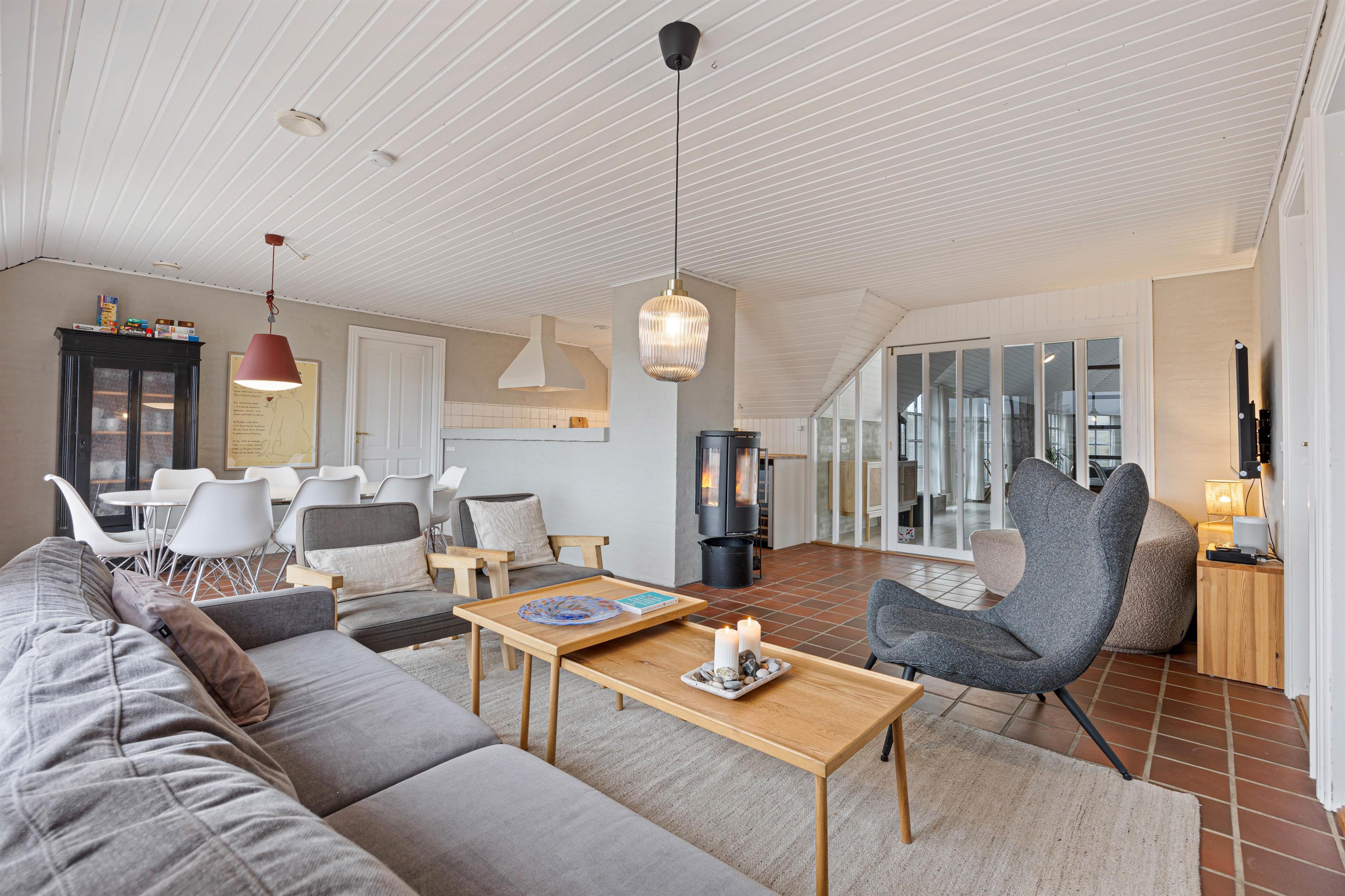 Sommerhusets indretning er moderniseret i 2022 med vandskurede vægge, renoverede badeværelser samt hvidmalede træpaneler, som sammen med de mange vinduer giver lyse og dejlige rum. Med brændeovnen i midten af det store køkkenalrum og stuen er der mulighed for at skabe en hyggelig atmosfære i huset, som er perfekt til en afslappende ferie. Fra stuen er der indgang til det skønne poolområde med spabad. Huset har 4 soverum, som alle er med dobbeltsenge, og huset rummer i alt over to dejlige badeværelser.