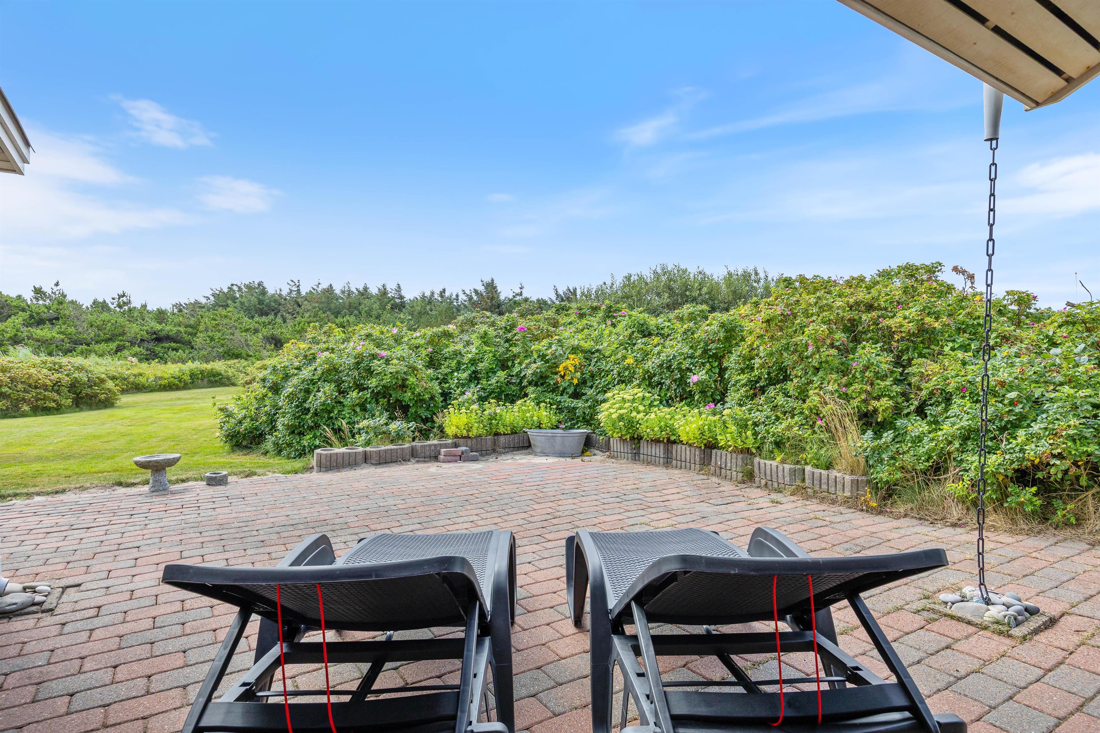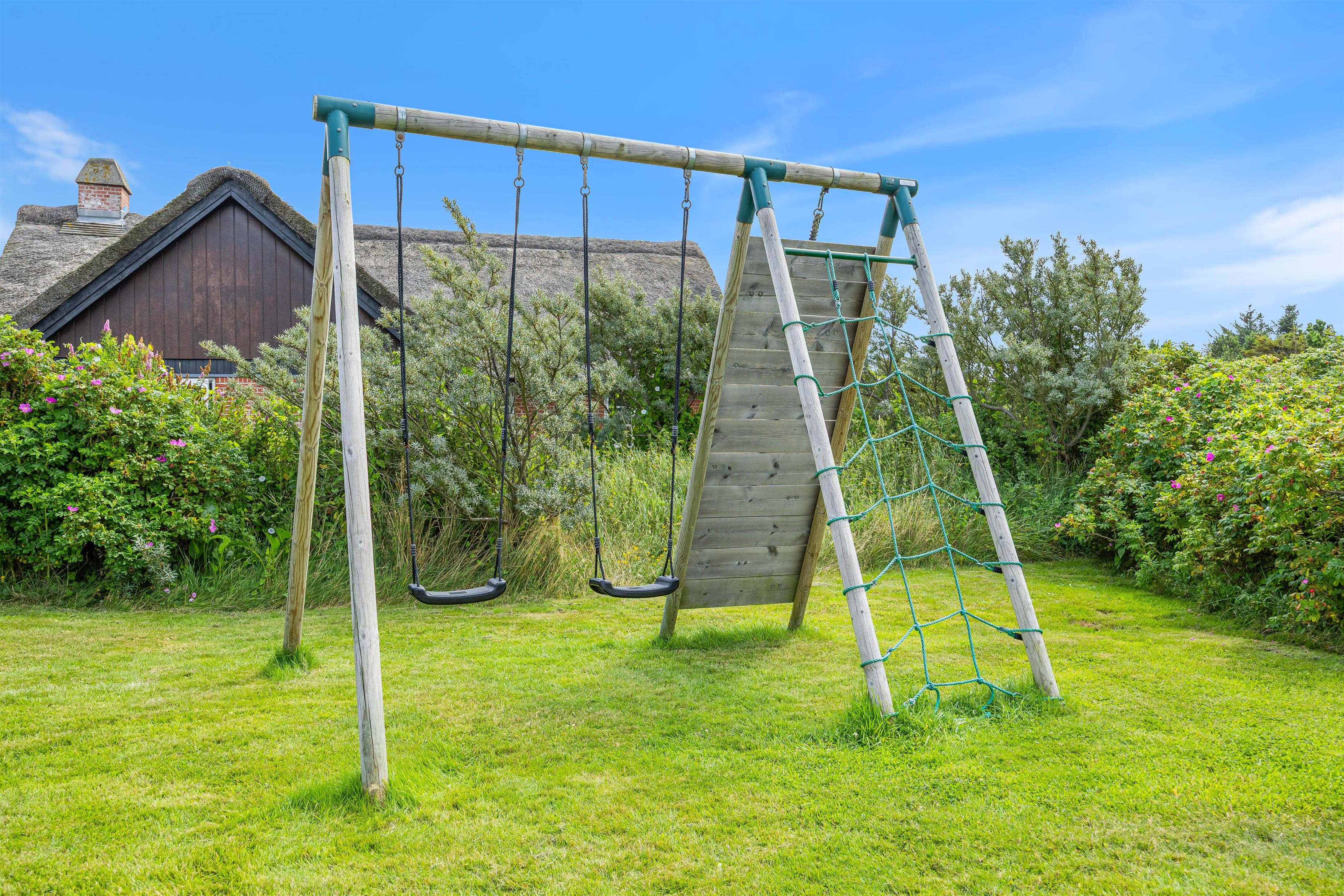 Udenfor er sommerhuset omkranset af en fin plænegrund, der giver mulighed for leg og afslapning i det fri. De små vil elske at bruge timerne på gyngen, mens resten af jer kan nyde de solrige dage på den afskærmede terrasse. Her er der også gode havemøbler og en grill, så I kan tilberede lækre måltider under åben himmel.