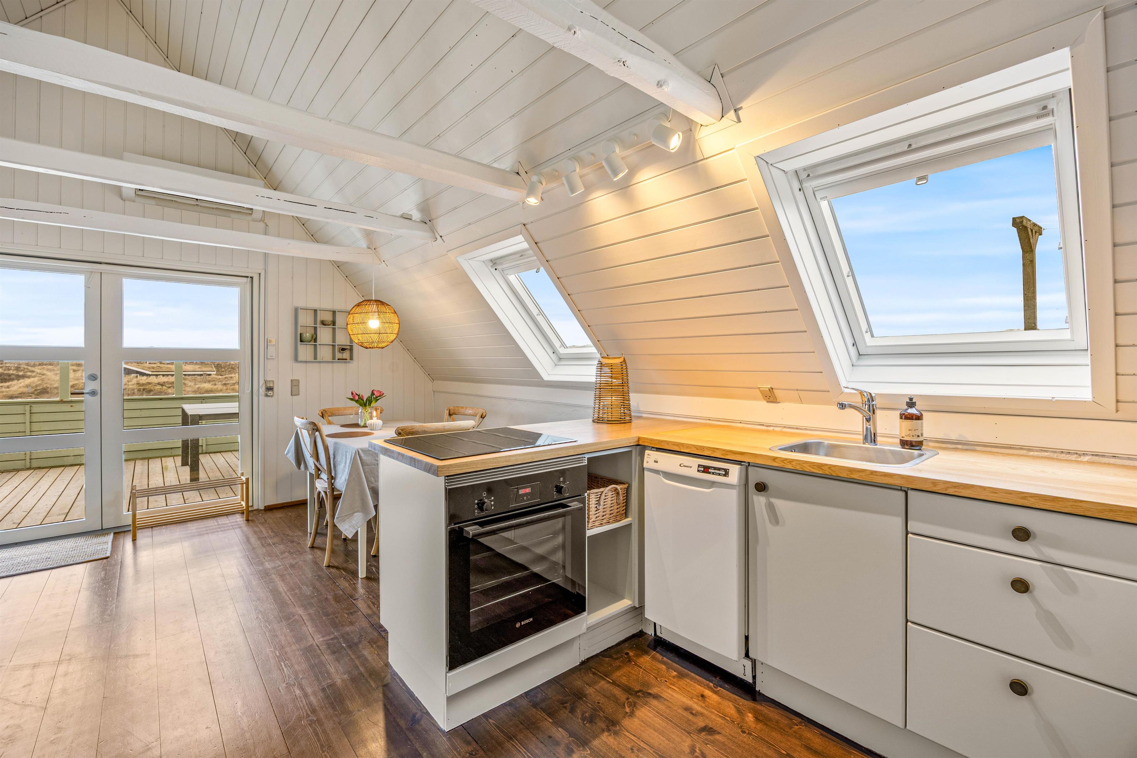 Stuen er indrettet med et lille fladskærms-tv, DVD, radio og CD-afspiller. I det fine og funktionelle køkken finder I også alt, hvad I får brug for på jeres ferie blandt andet opvaskemaskine og køleskab med 48 liters fryser. I huset finder I også et skønt badeværelse med bruseniche, flisegulv og gulvvarme. I tilknytning til det dejlige badeværelse er der desuden en rigtig fin sauna med god plads. Så efter en frisk dukkert i havet, kan I efterfølgende nyde varmen herfra.