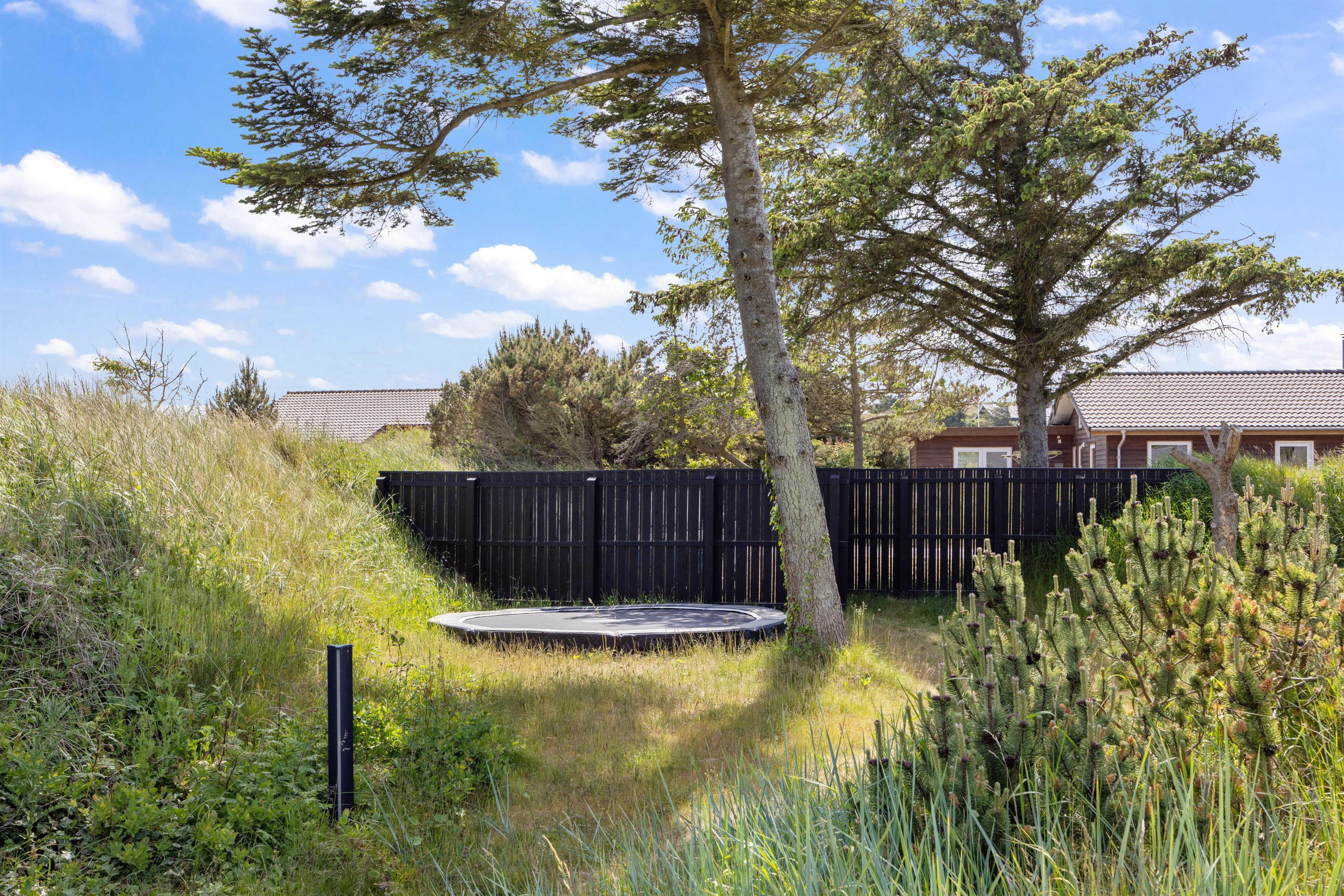 Feriehuset på Skovdalen 8 i Houvig ligger på en lukket naturgrund på godt 1250 m2, som giver mange muligheder for at lege og boltre sig på grunden. Trampolinen, der er gravet ned i jorden, vil helt sikkert blive et hit for de mindste i familien. Terrassen går næsten hele vejen rundt om feriehuset, så I kan altid finde et læfyldt sted alt efter solens placering og vindretning. Der er både hængekøje, grill og havemøbler til rådighed på terrassen. Her kan I sidde og slappe af og nyde solen, mens I tilbereder et lækkert måltid mad i udekøkkenet.