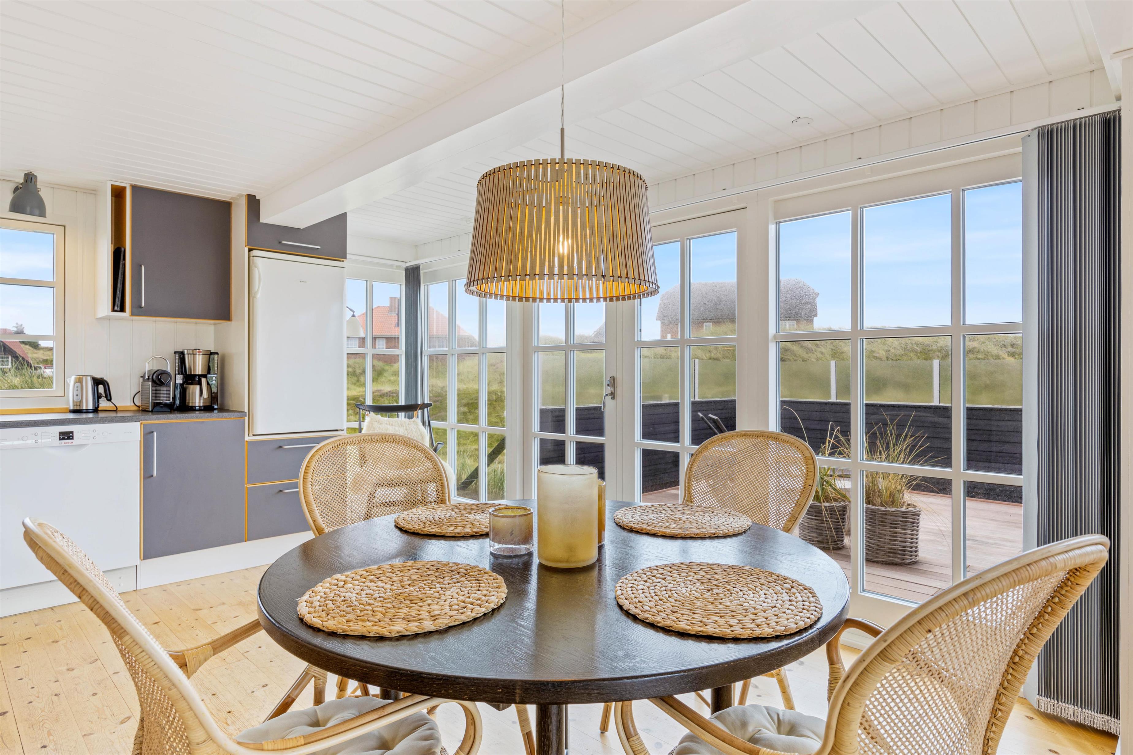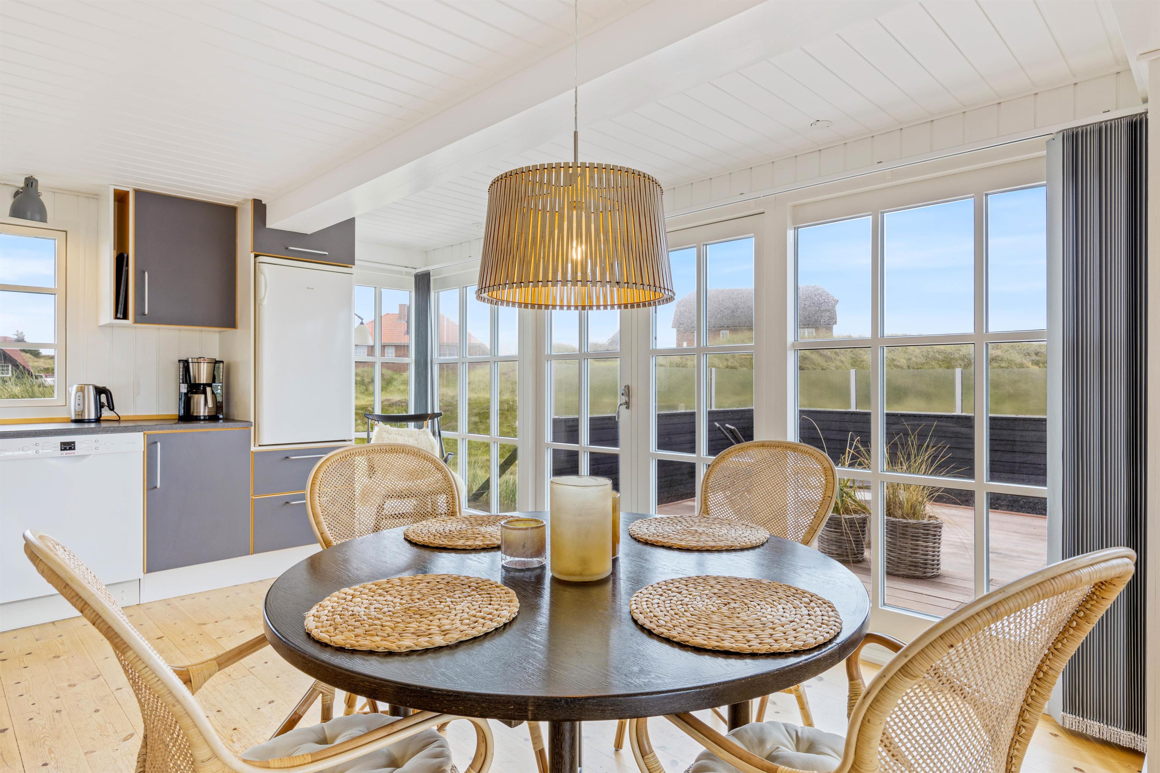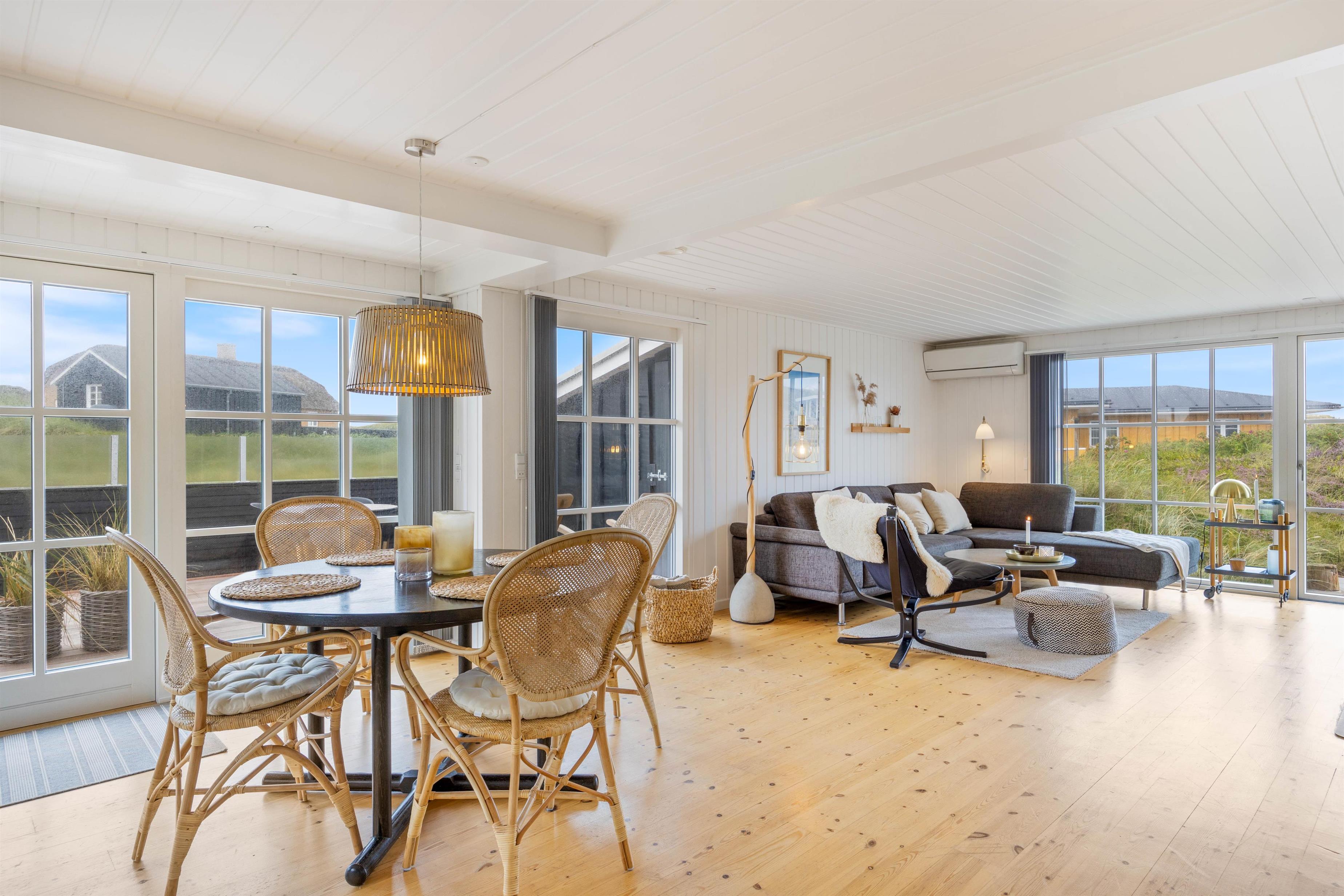 Husets hjerte er det store opholdsrum, som binder køkkenet, spiseområdet og stuen sammen. I køkkenet er der god plads til at lave mad sammen, og gennem det store vinduesparti falder der et flot lys ind i opholdsrummet. Ved det runde spisebord kan I samles til lækre feriemiddage eller brætspilsaftner.