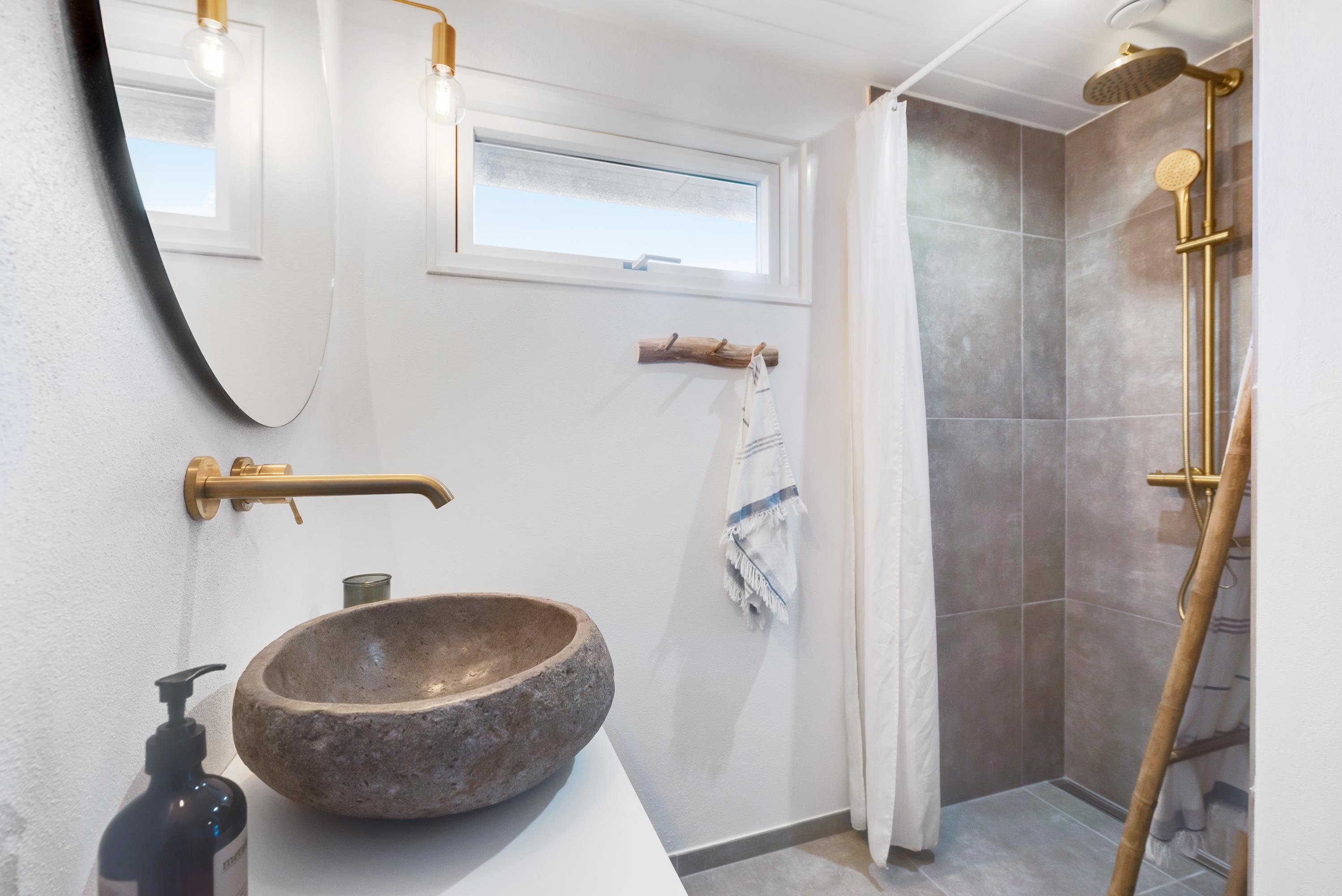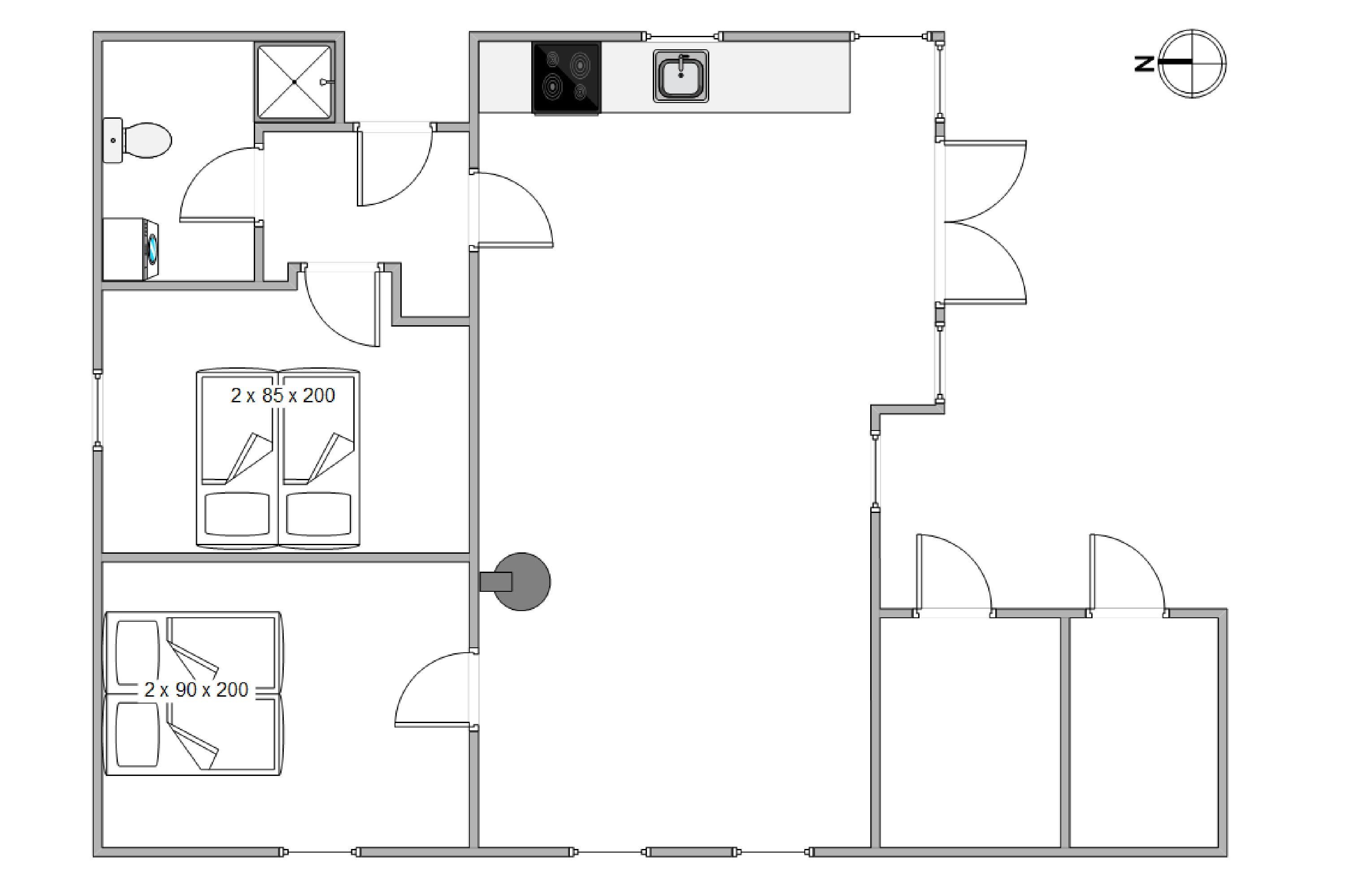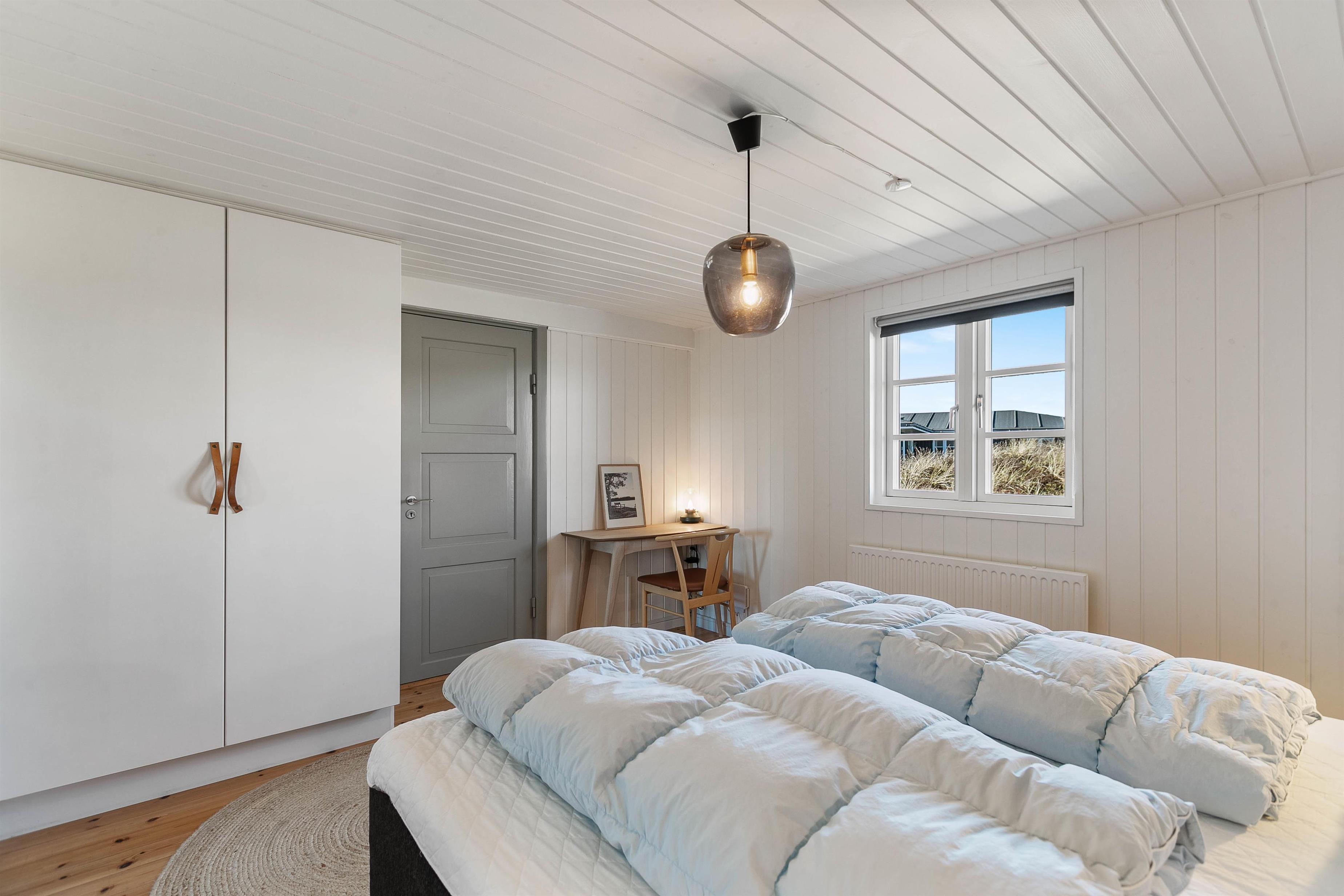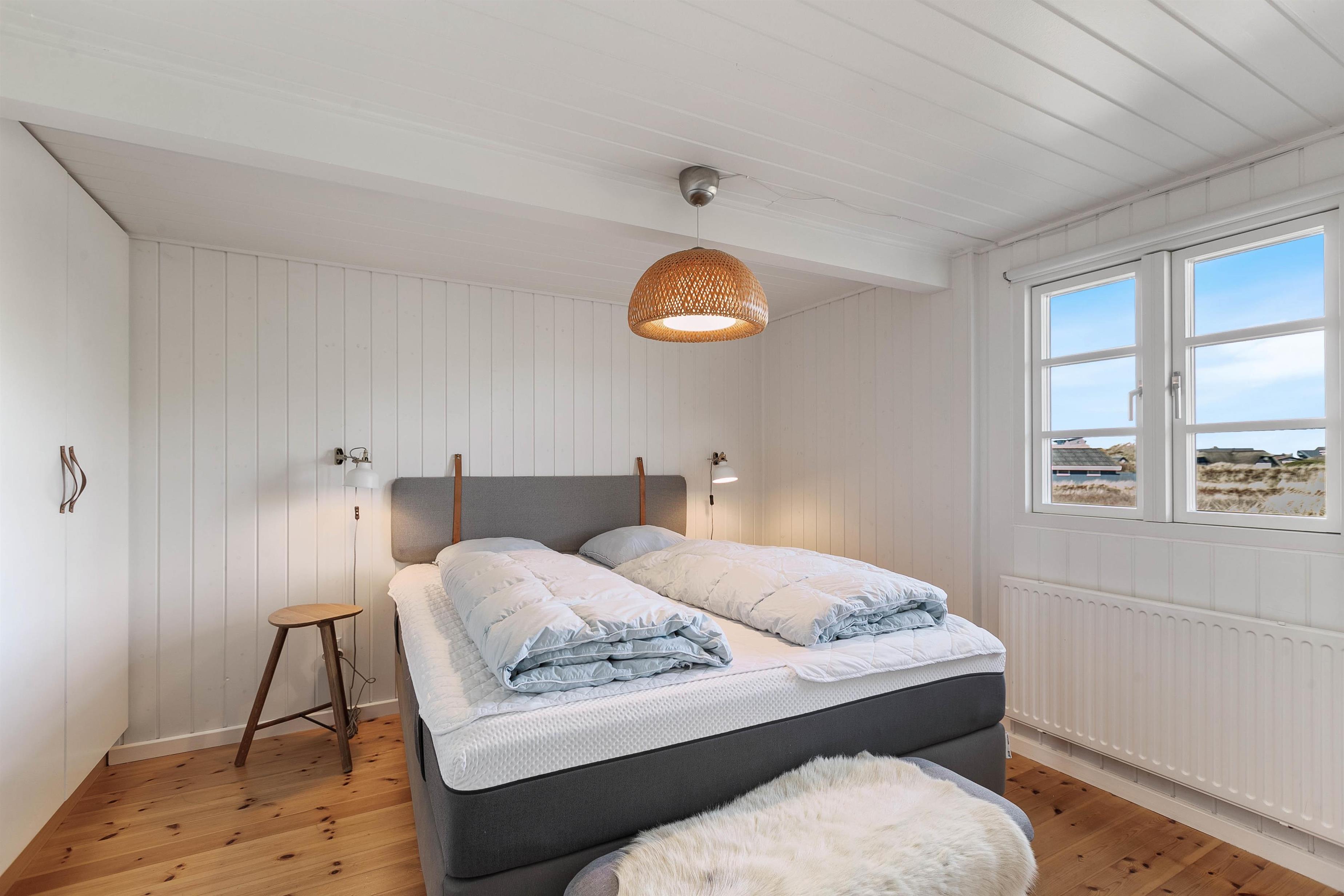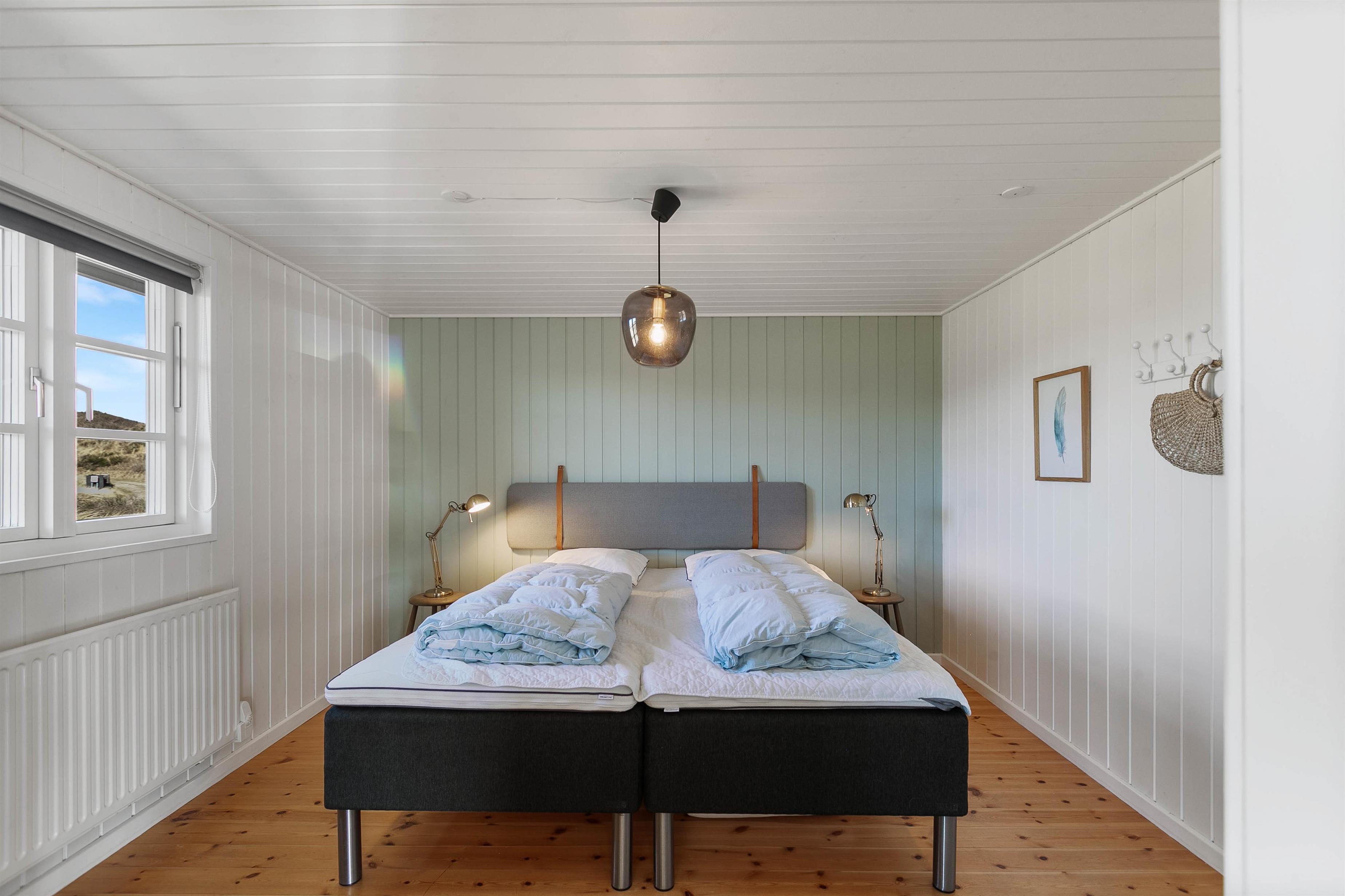 Sofaområdet indbyder året rundt til mere afslapning og hygge foran den dejlige brændeovn med yndlingsfilmen kørende på TV’et ved hjælp fra husets chromecast. De 2 store soveværelser er indrettet med brede dobbeltsenge, hvor I kan få en god nattesøvn under hele ferien. Om morgenen sørger gulvvarmen på det lyse badeværelse for, at I ikke fryser fødderne.