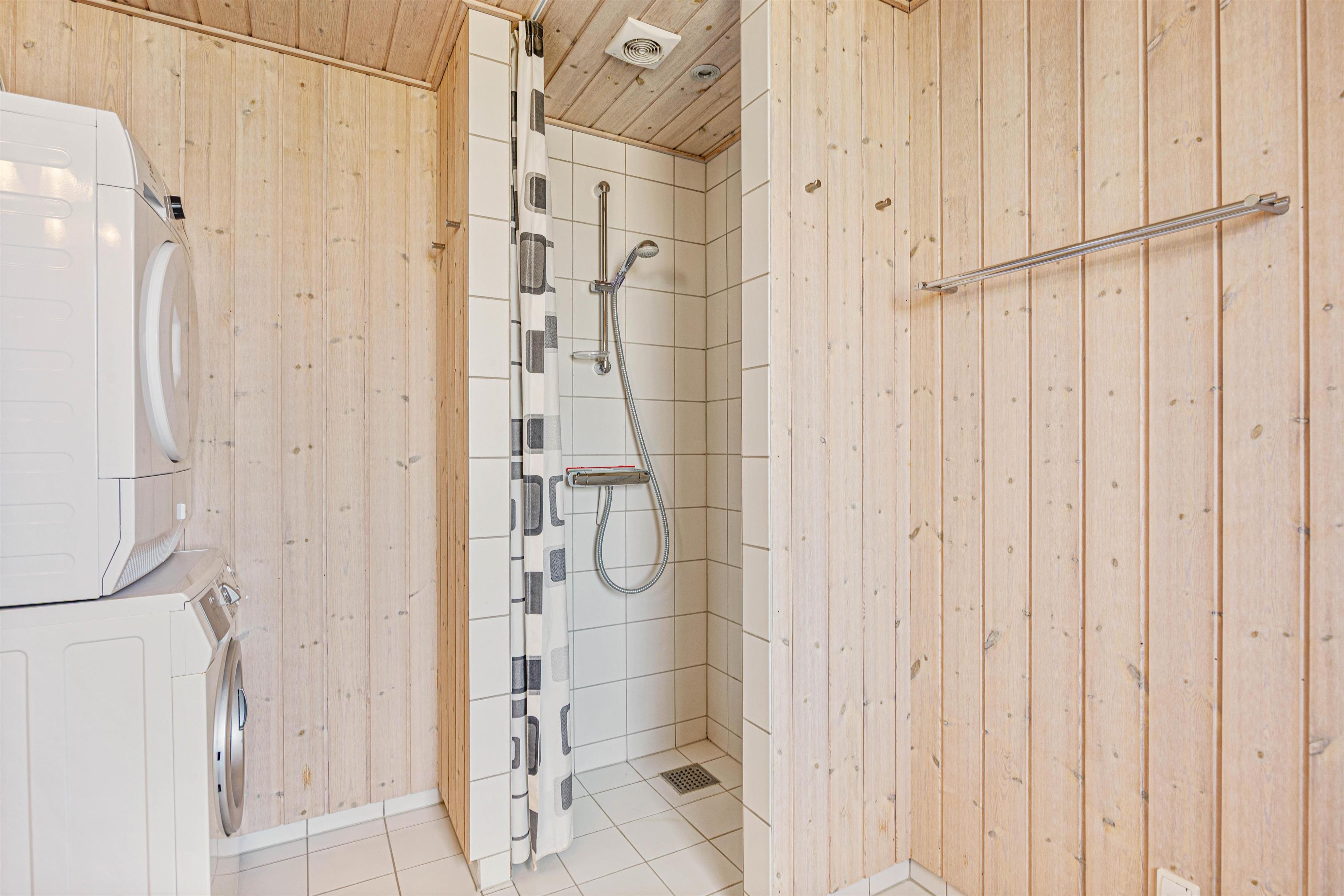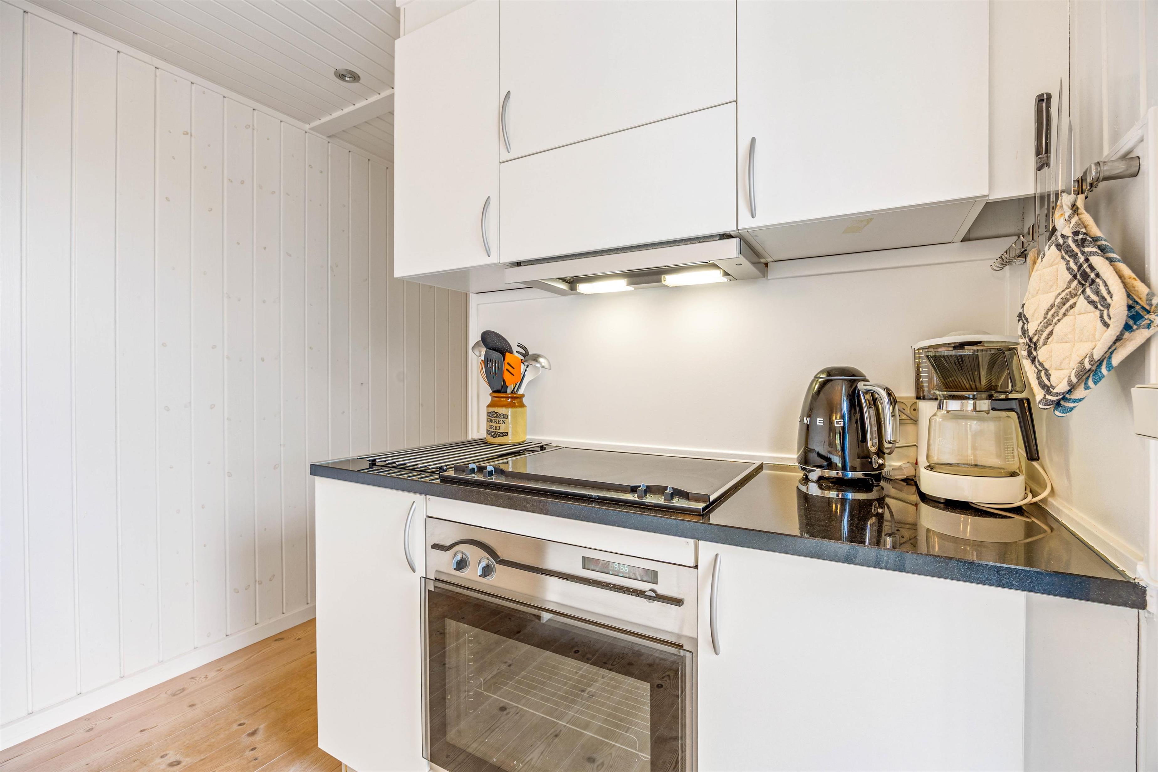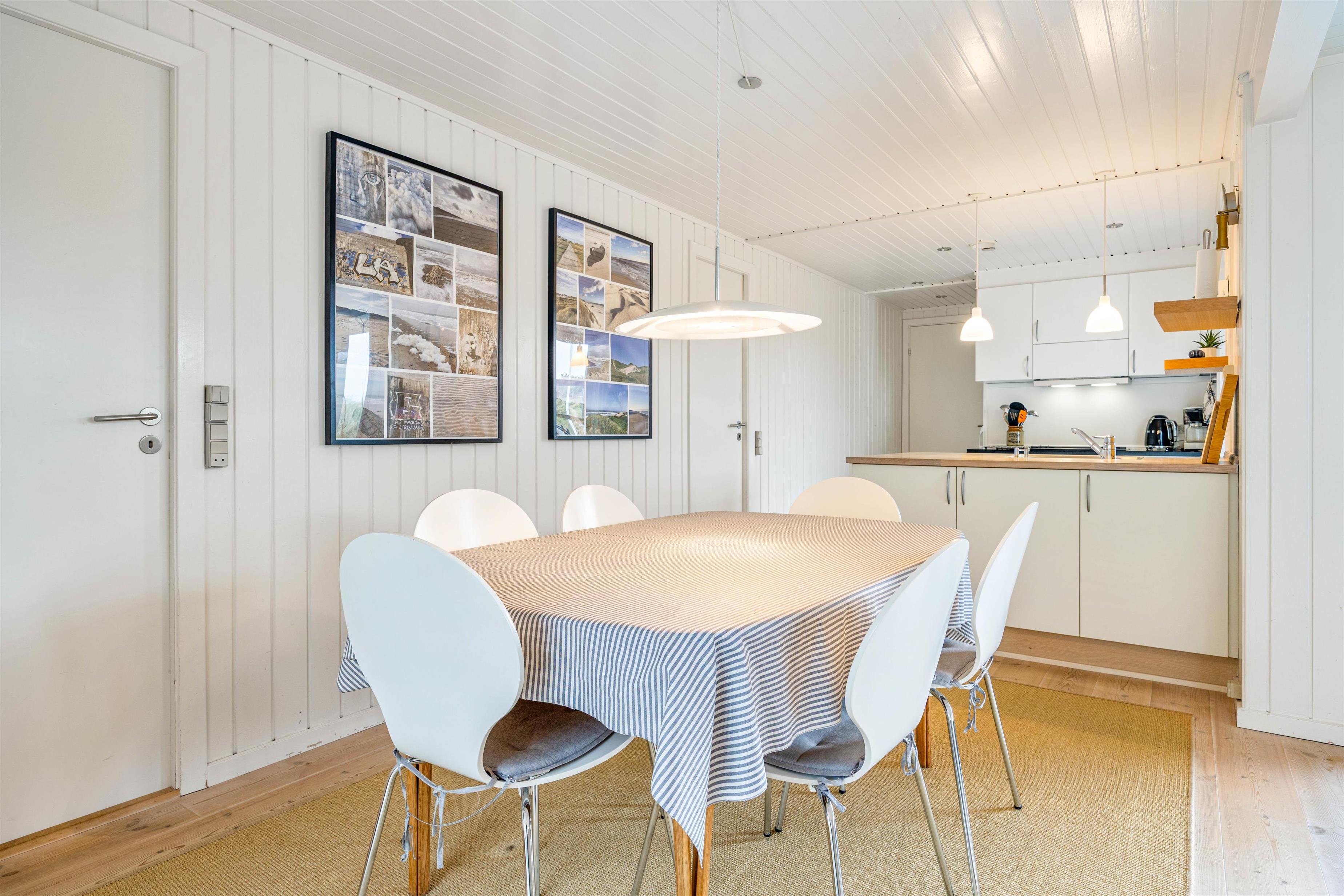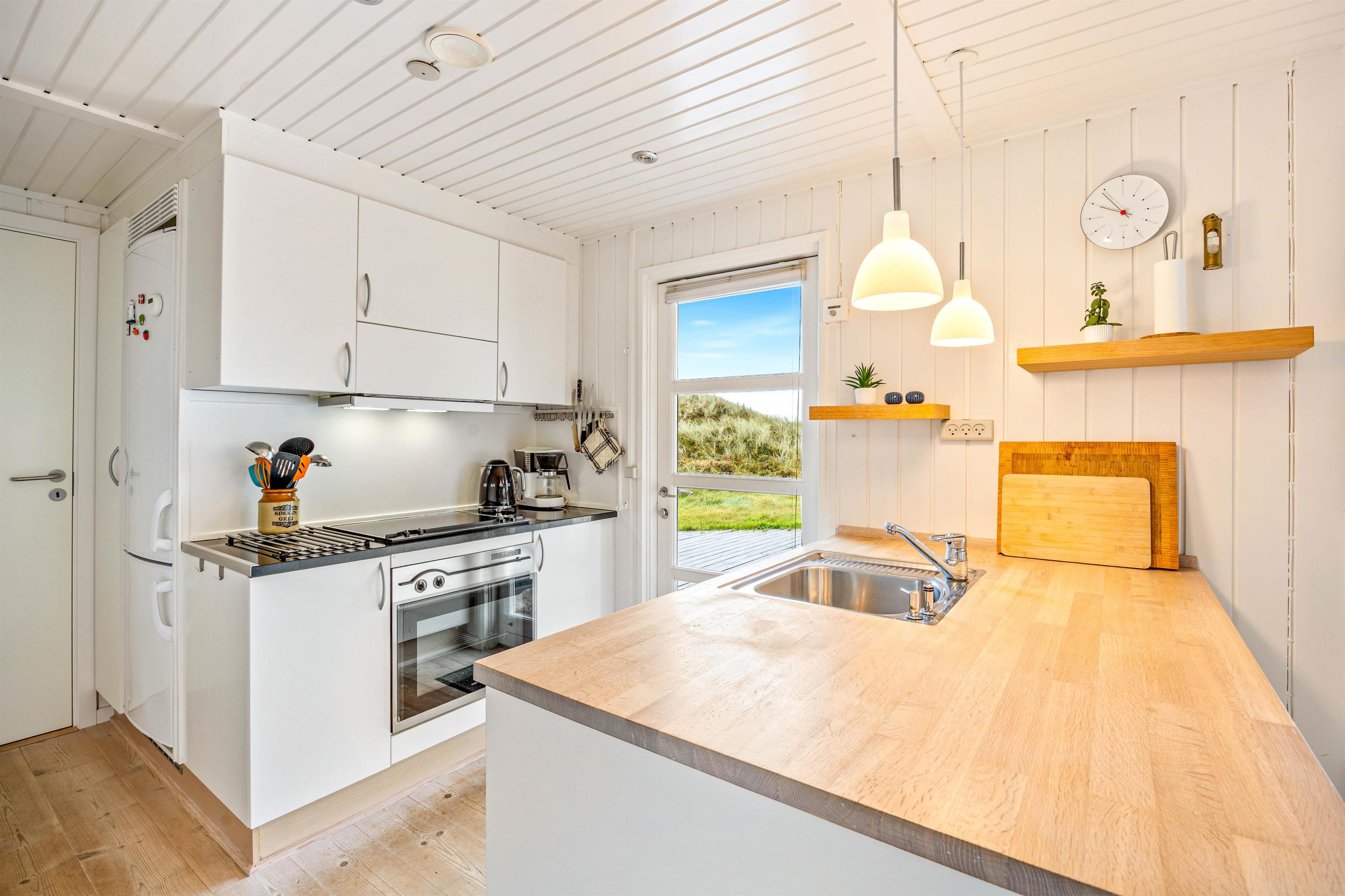 Feriehuset er både hyggeligt og praktisk indrettet, og mens køkkenet er udstyret med opvaskemaskine, kan I også hurtigt få vasket tøj ved hjælp af husets vaskemaskine og tørretumbler. En hurtig internetforbindelse sørger for, I kan streame film og serier i massevis, og de 2 badeværelser hjælper til at undgå de lange toiletkøer om morgenen.