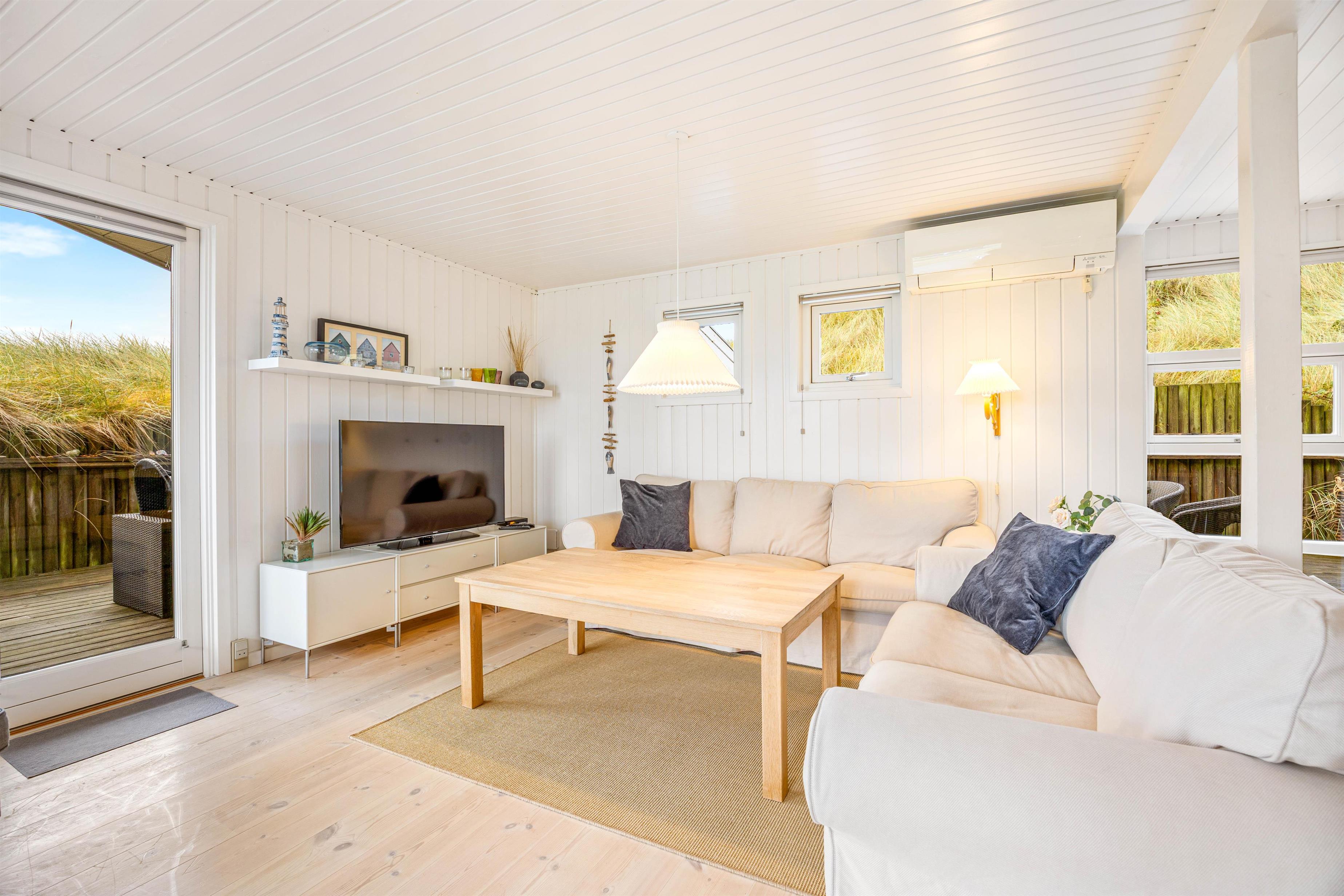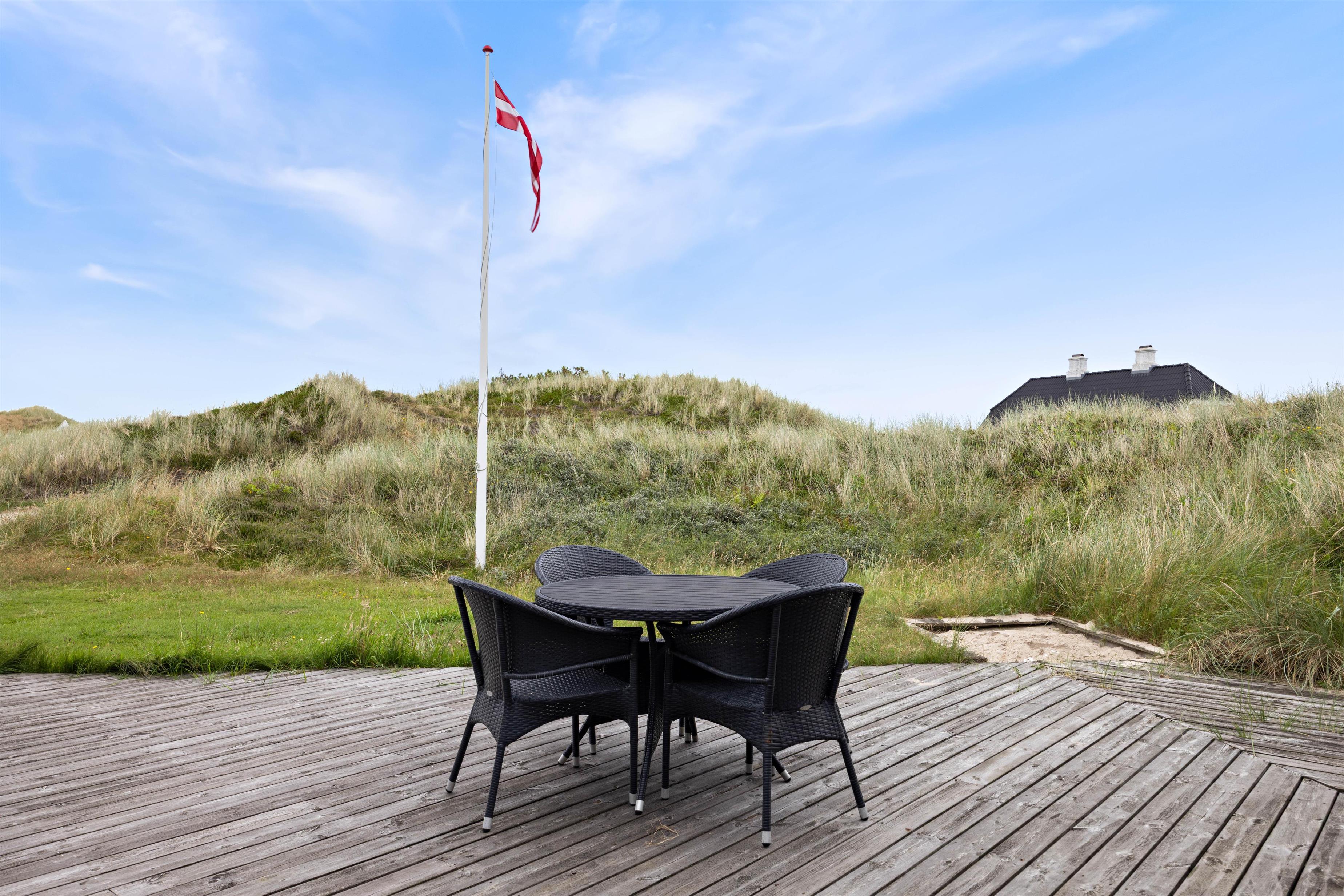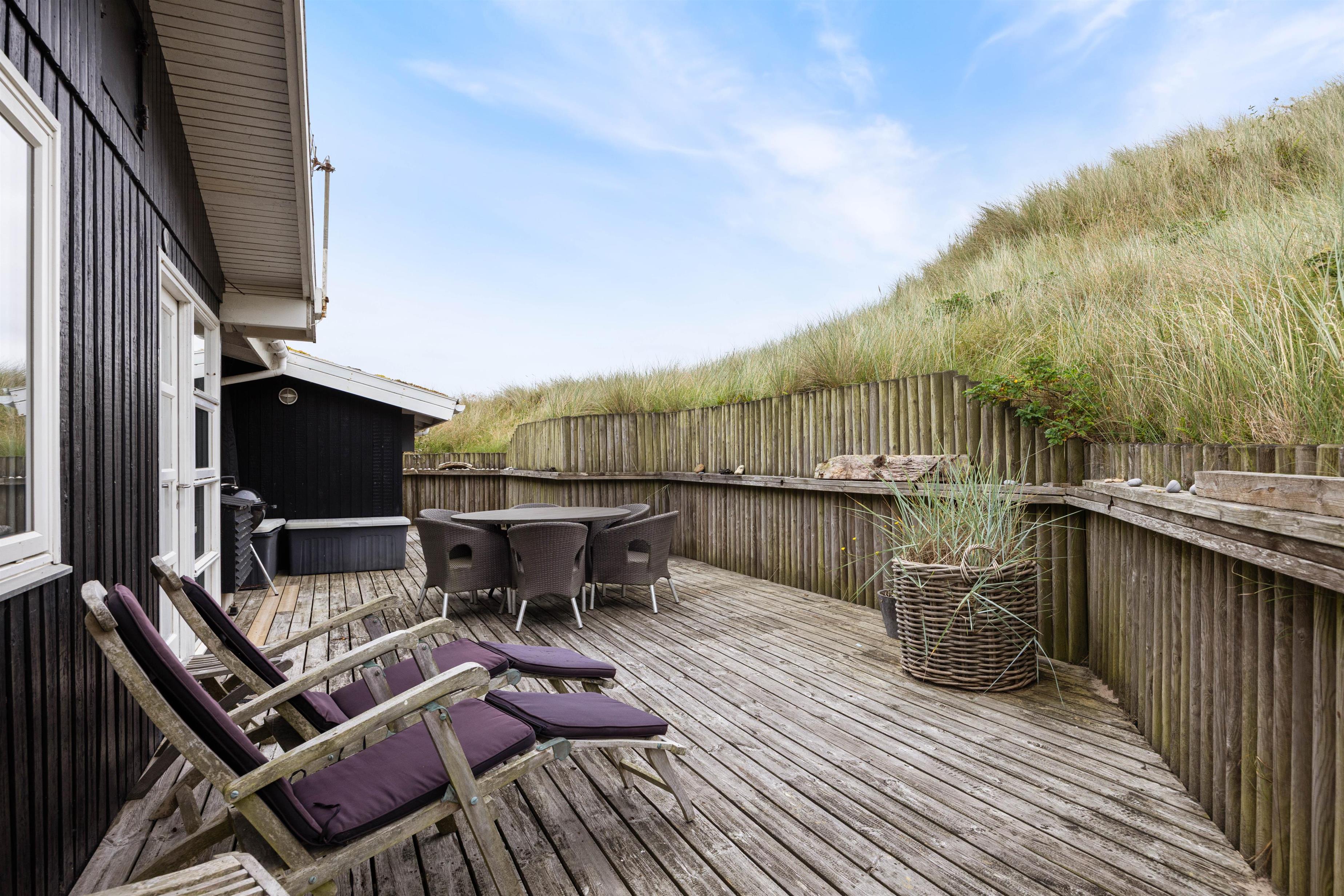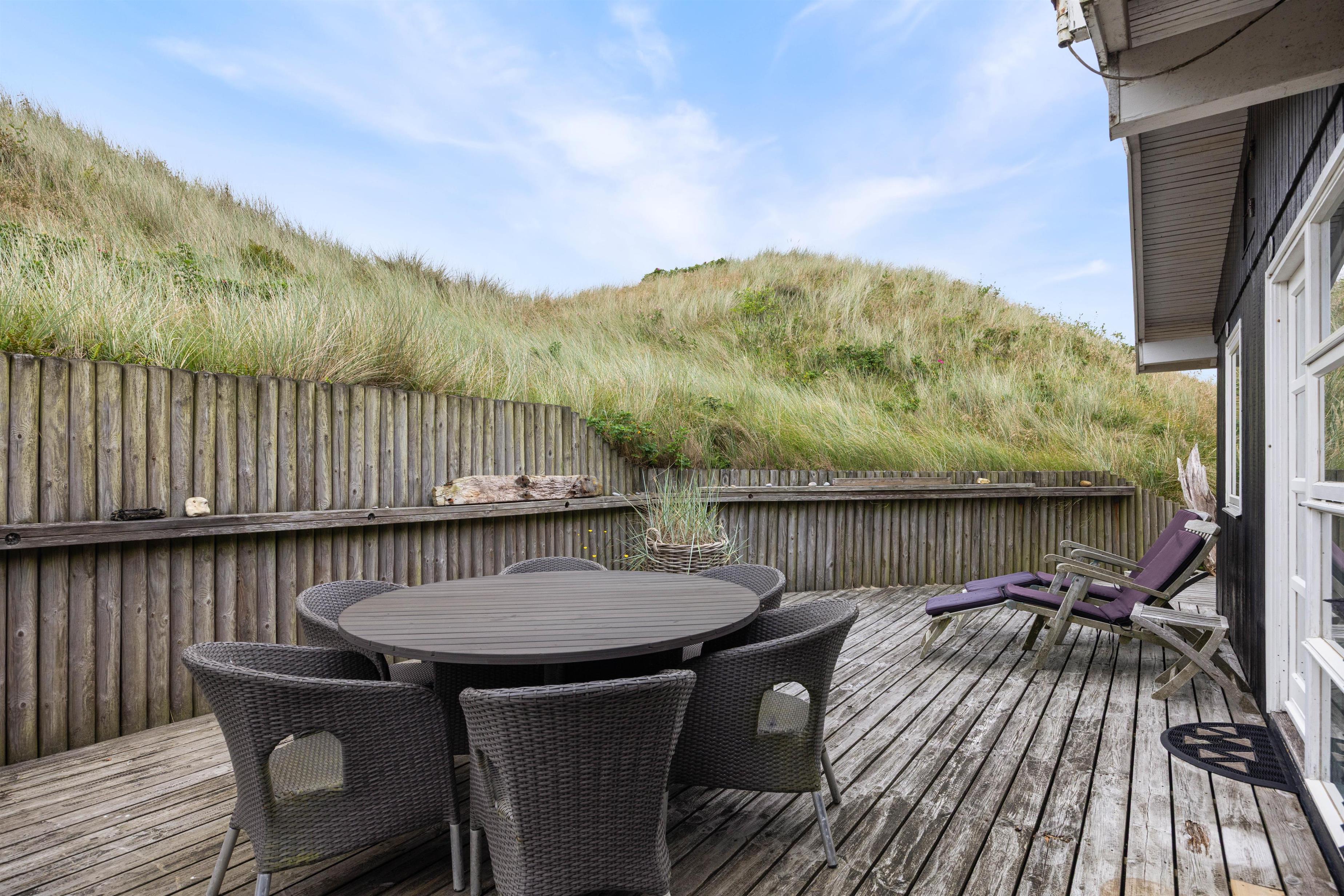 Houvig er et roligt og naturskønt ferieområde med smukt klitlandskab, så langt øjer rækker. Nyd udsigten fra den store, læfyldte terrasse, som har en overdækket del og giver jer mulighed for at sidde ude i den friske luft i næsten alt slags vejr.