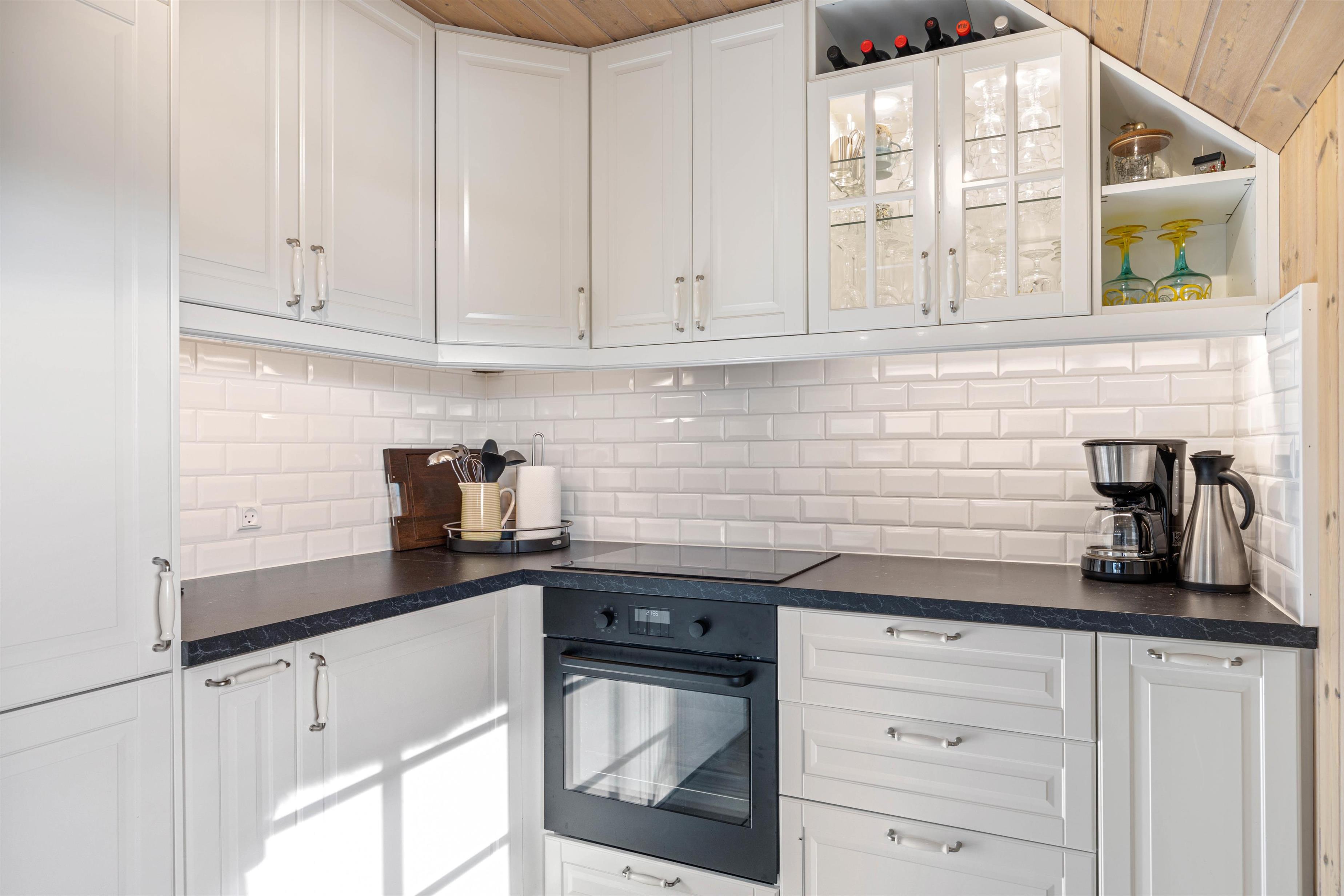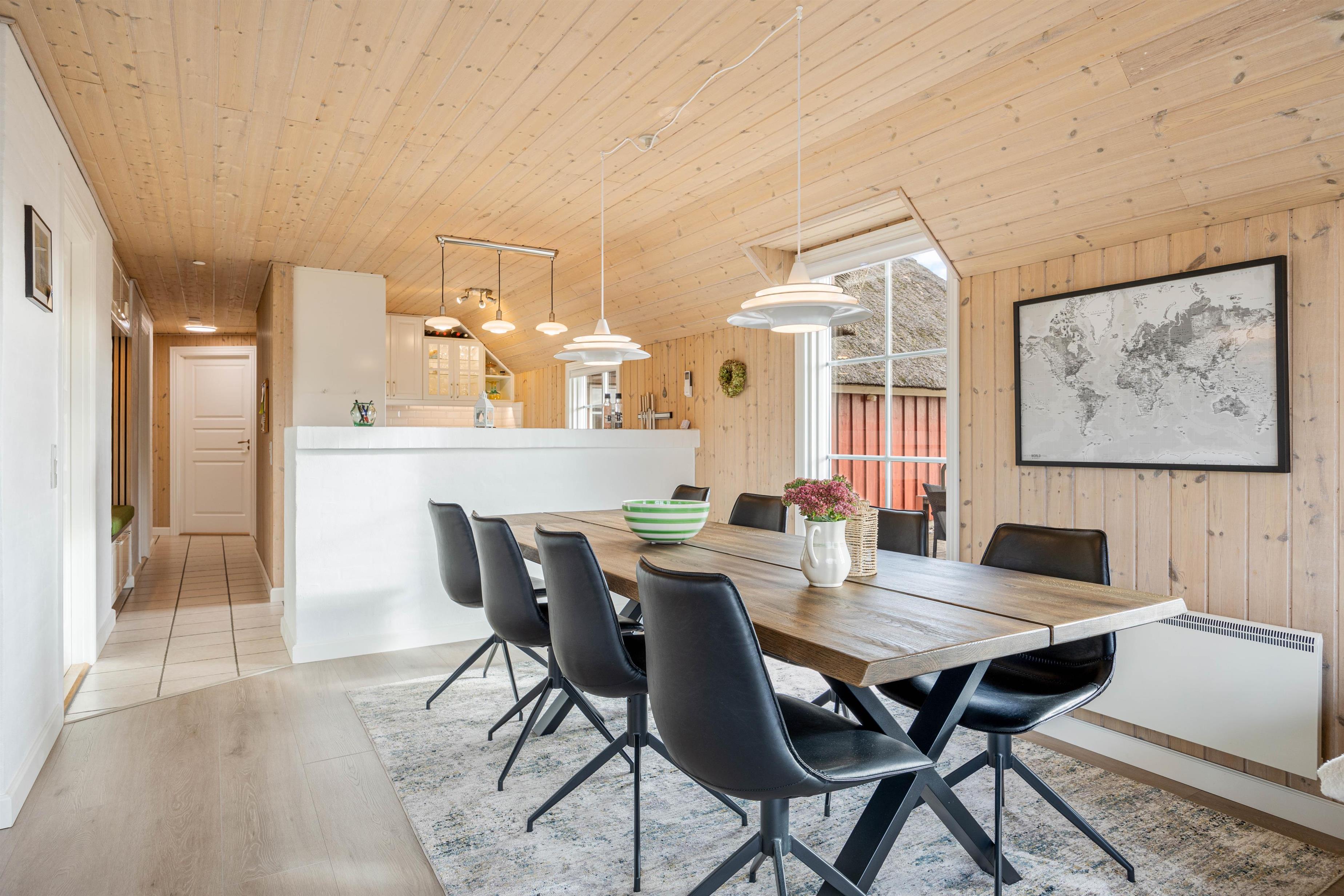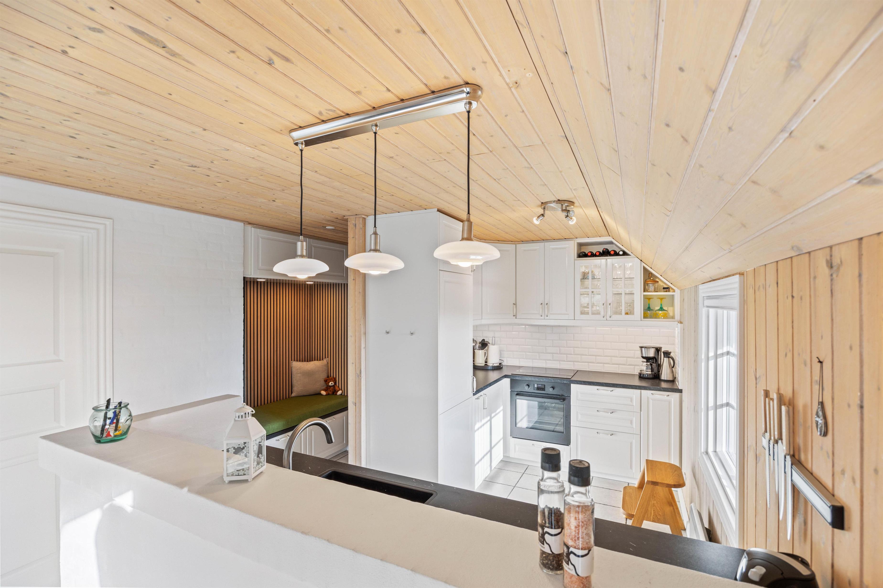 Feriehuset rummer alt, hvad I har brug for, for at holde en god og uforglemmelig ferie sammen. Her bliver det en fornøjelse at lave mad, i det fuldt udstyret køkken, der er indrettet med en opvaskemaskine, så I slipper for den kedelige opvask. Om aftenen kan I sætte jer sammen, arrangere en sjov spilleaften eller planlægge den næste dags ferieaktiviteter. Den hyggelige brændeovn, som I finder i stuen, bidrager til den helt rigtige feriestemning. Er brændeovnen ikke tændt, kan I bruge den energibesparende luft-til-luft varmepumpe, som sørger for et behageligt indeklima hele året rundt.