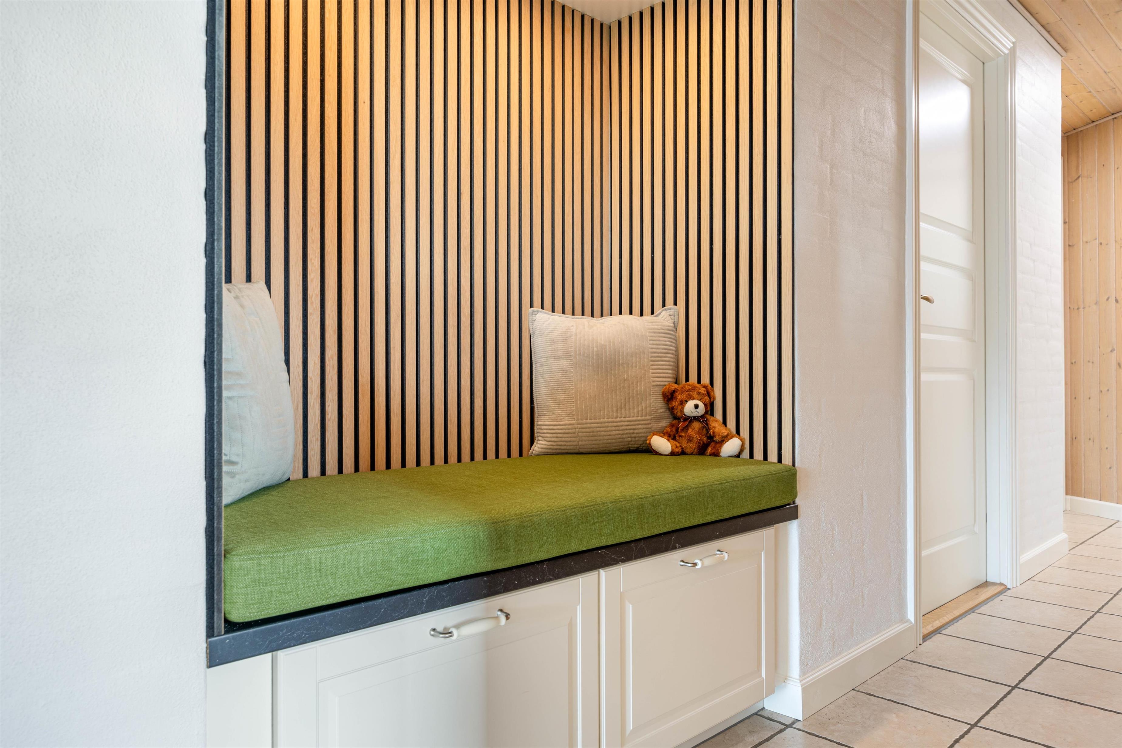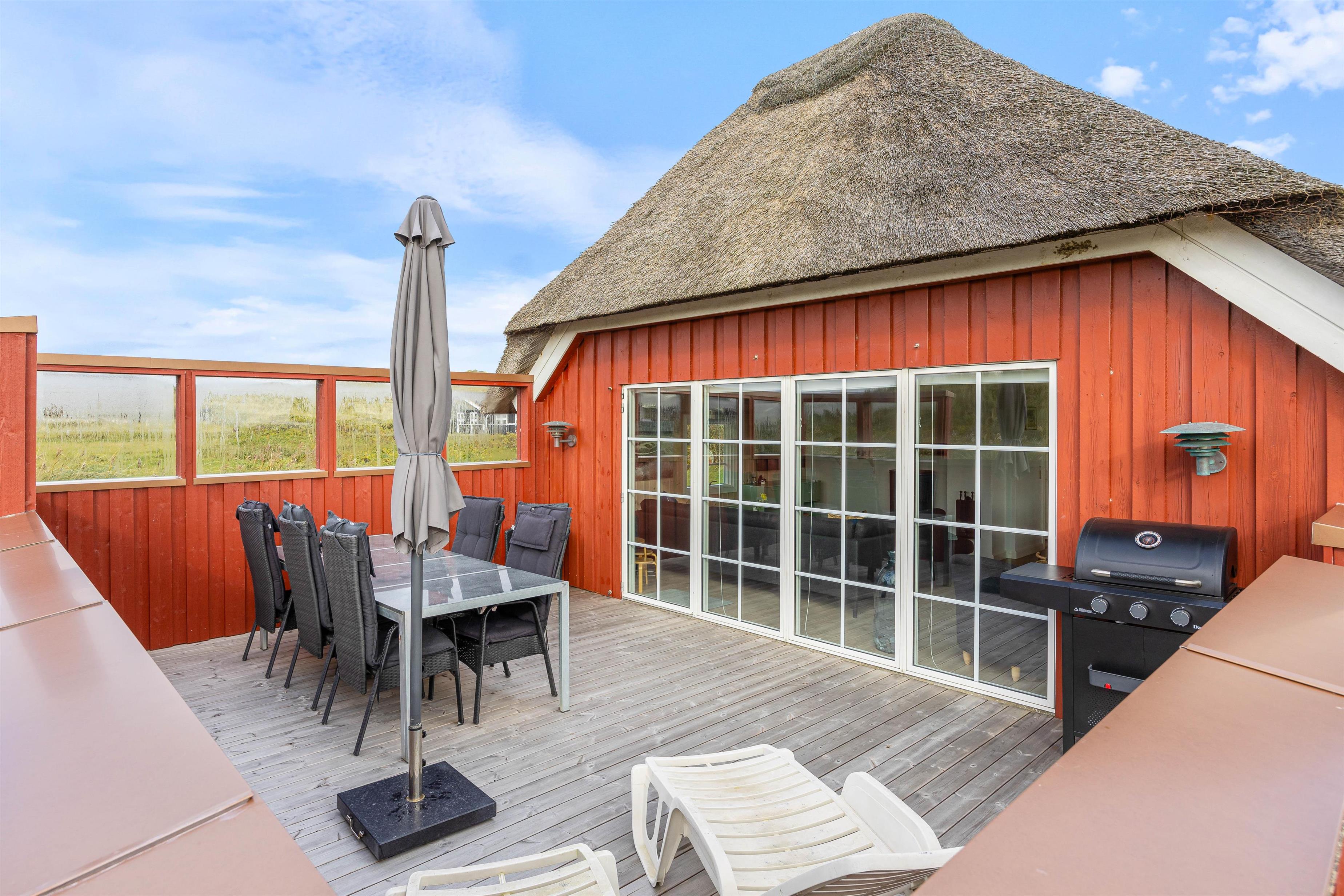 Den afskærmede terrasse med komfortable havemøbler, indbyder til hyggelige stunder i det fri, mens børnene leger på gyngen, eller spiller bold på græsplænen. Med kun ca. 350 ned til den kilometer lange sandstrand, kan det klart anbefales på de varmere sommerdage at tage en tur i vandet for at blive kølet af, eller blot ligge på stranden og nyde solens varme stråler.