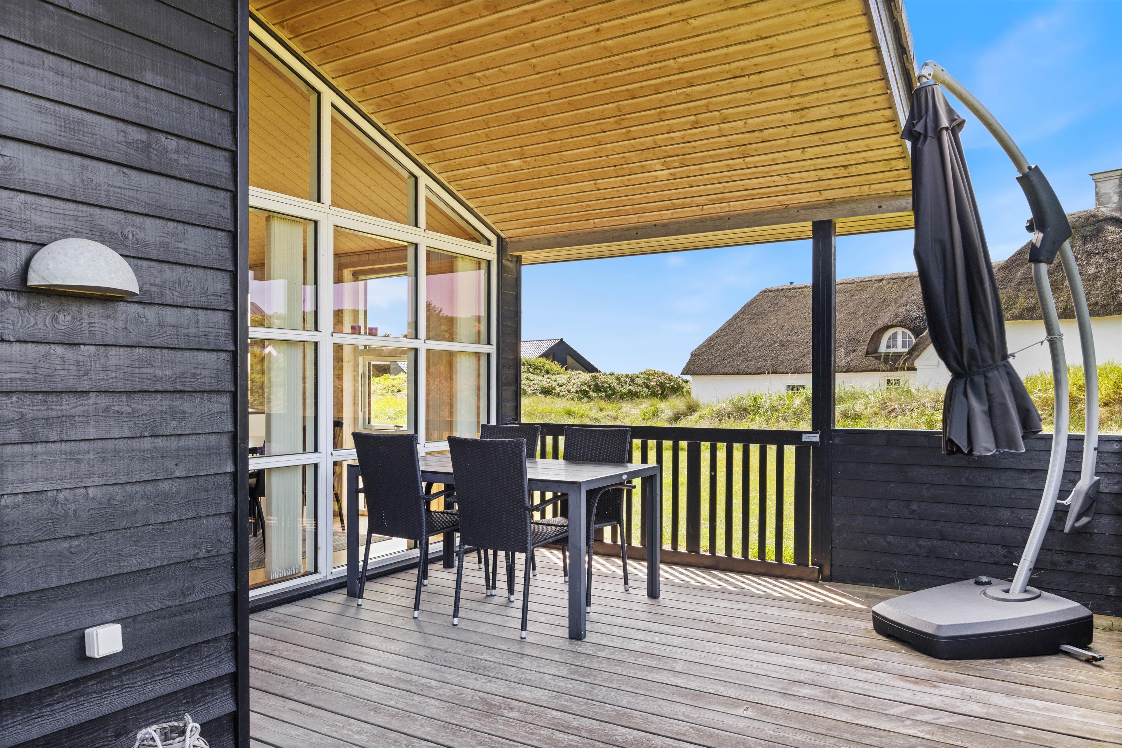 Området Houvig er skønt og unikt. Sommerhus grundene er forskelligartede, nogle er kuperede, nogle ligger i skovbevoksning og nogle ligger i klitterne. Dette hus ligger tæt på et bevokset område, og grunden er delvis en plænegrund og delvis en naturgrund. Hvis I kommer til huset med børn, vil de med sikkerhed elske muligheder for at lege rundt omkring på grunden.