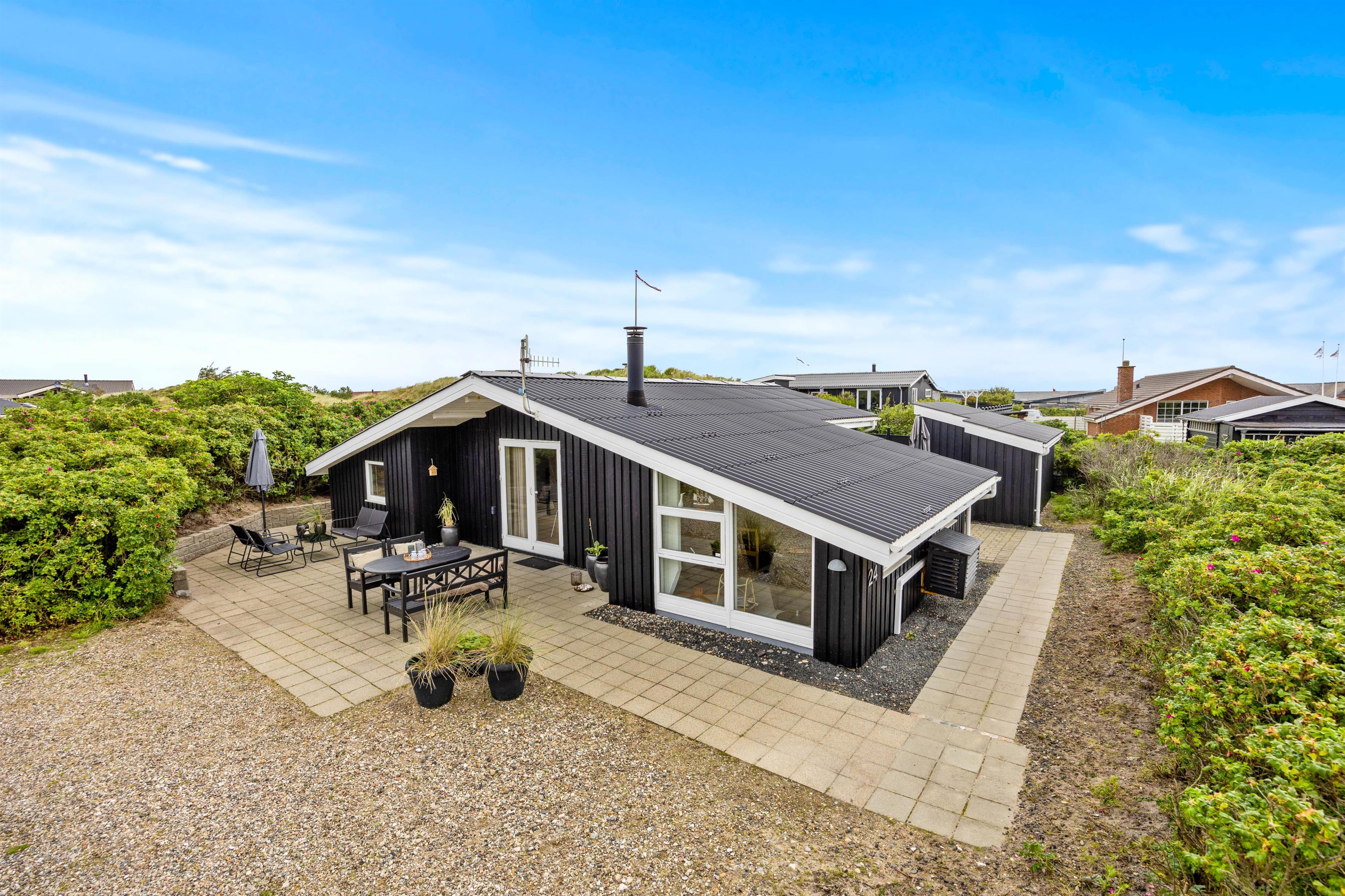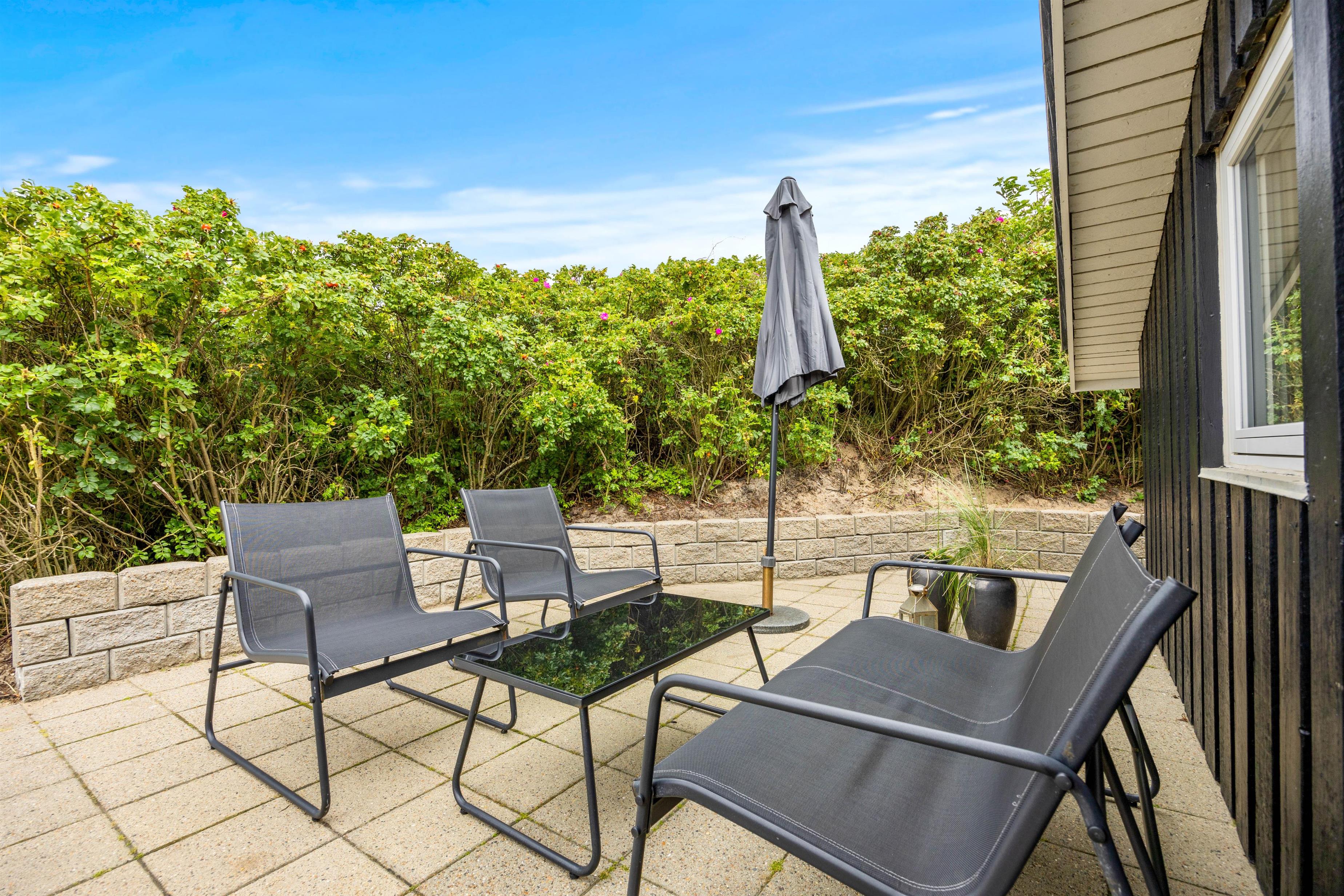 Det brusende Vesterhav ligger blot en kort spadseretur væk, og kun 500 meter skiller jer fra den nærmeste strandopgang. Har i været en tur på stranden og fødderne er fulde af sand, kan i bruge udendørsvandhanen til at skylle sandet af. Den er også effektiv til at skylle hunden ren efter en god og aktiv feriedag.