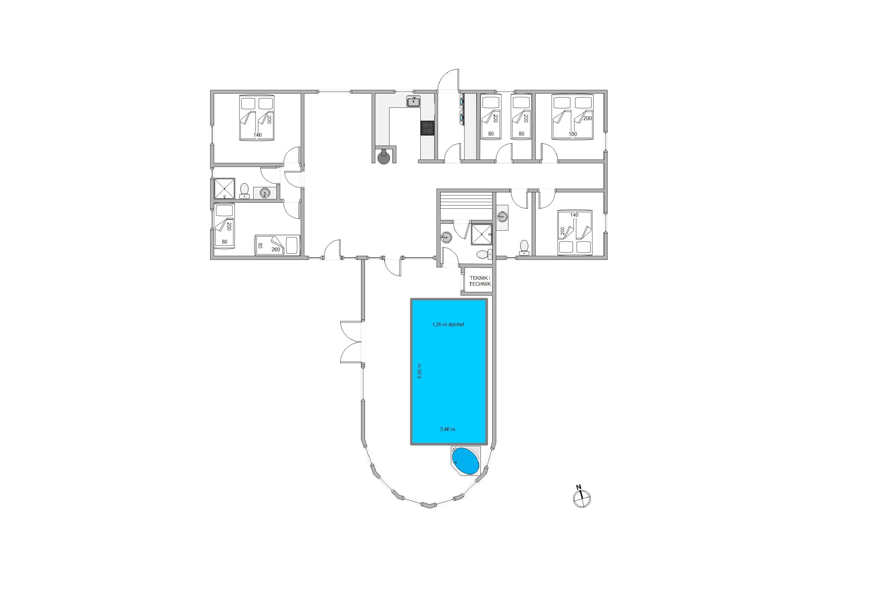 Det store 10-personers sommerhus har en 16m2 stor pool, der sikrer timevis af underholdning. Her er I aldrig afhængige af vejret. Poolen er altid åben og klar til at hoppe i. Der er også plads til, at man kan svømme nogle baner frem og tilbage, inden børnene kaster sig over vandet. Der er samtidig et spabad, hvis I ønsker mere afslapning. Har I brug for at få varmen, så kan I benytte jer af saunaen.