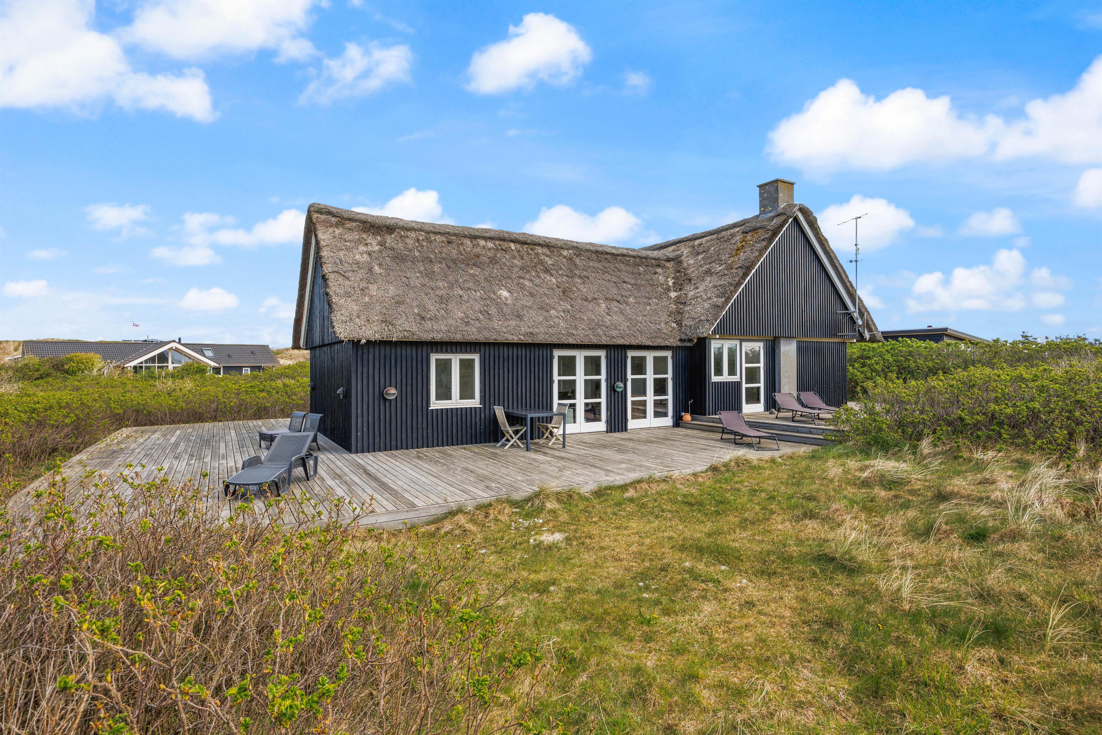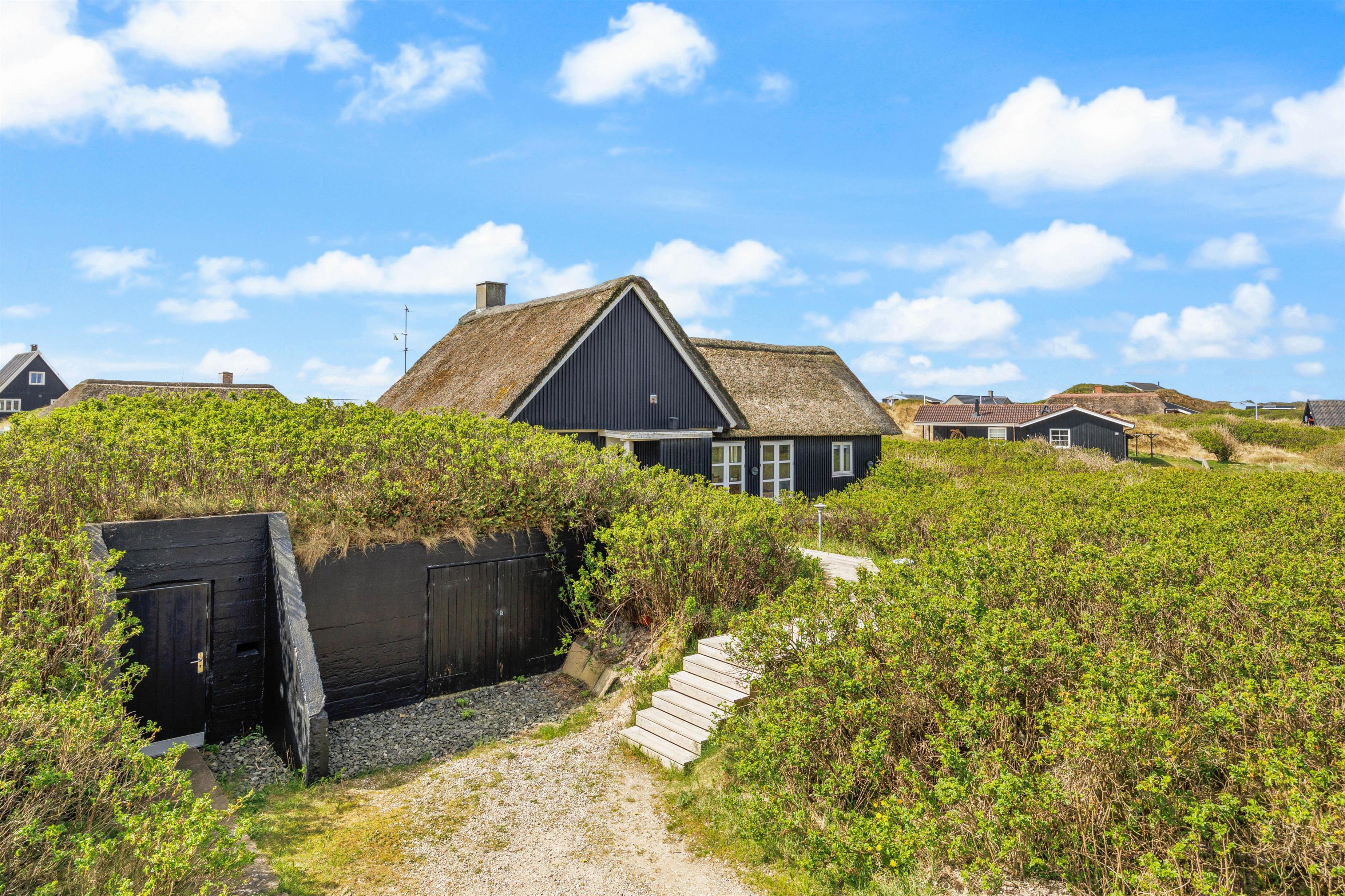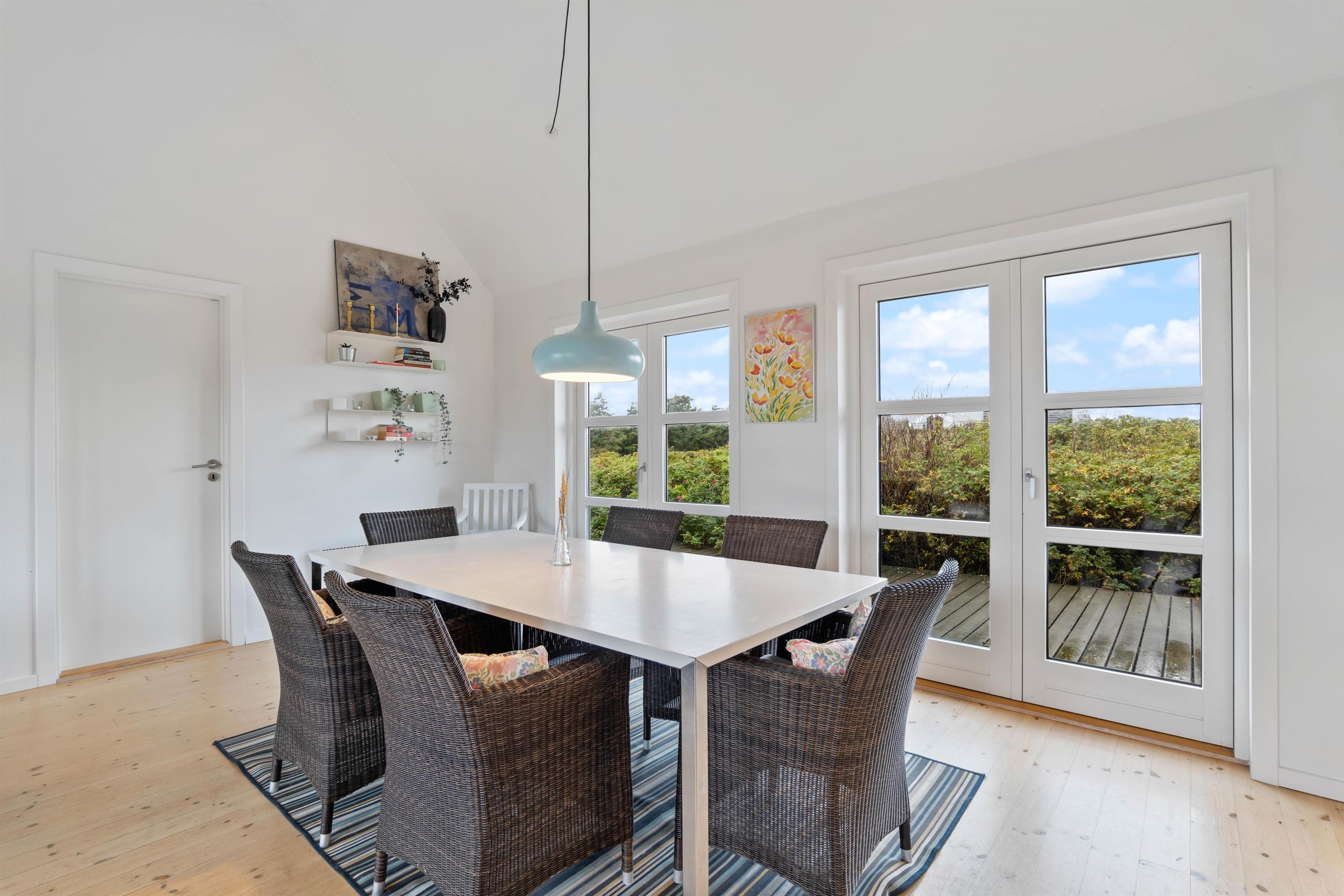 Når I tilbringer tid på terrassen, kan I høre lyden af brændingen i baggrunden. Vesterhavet ligger nemlig kun 450 meter fra feriehuset. Dermed vil det heller ikke tage lang tid for jer at nå frem til de smukke strande og brusende bølger.
