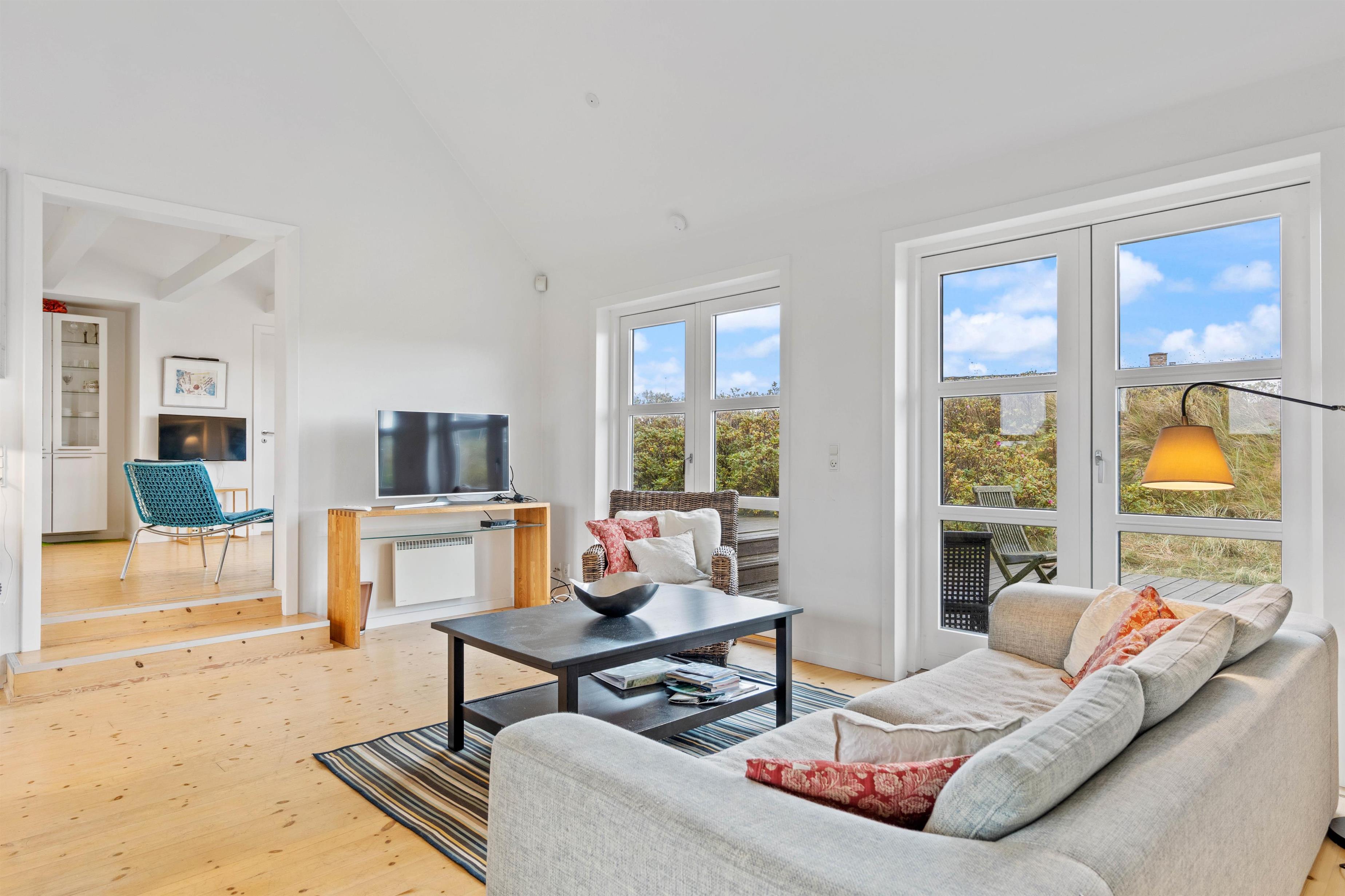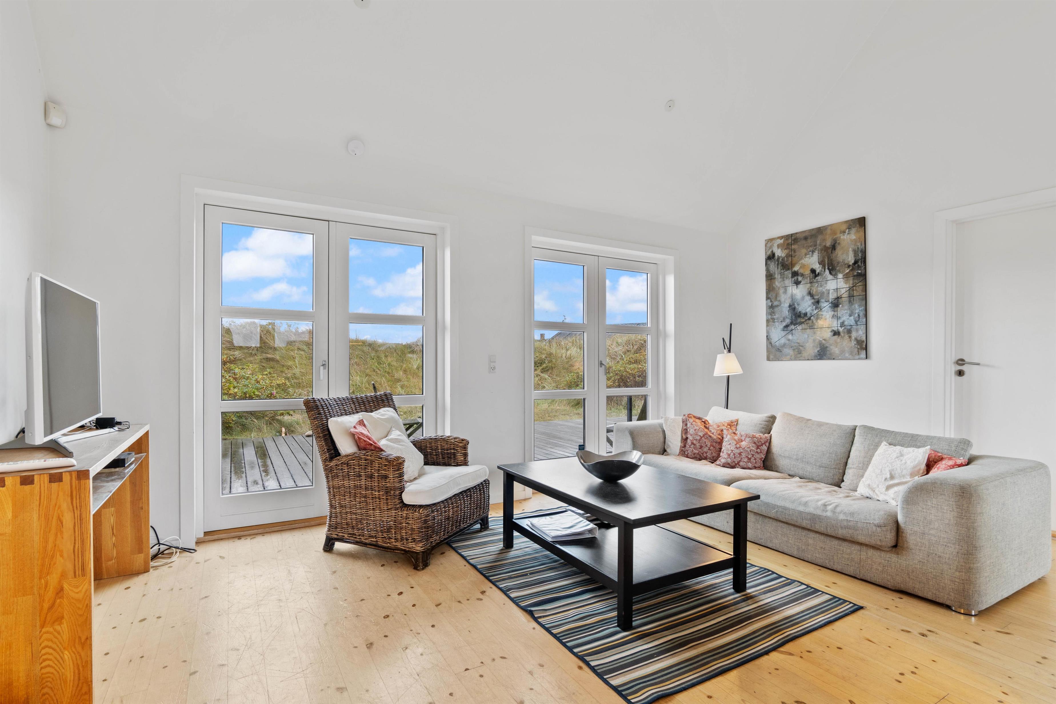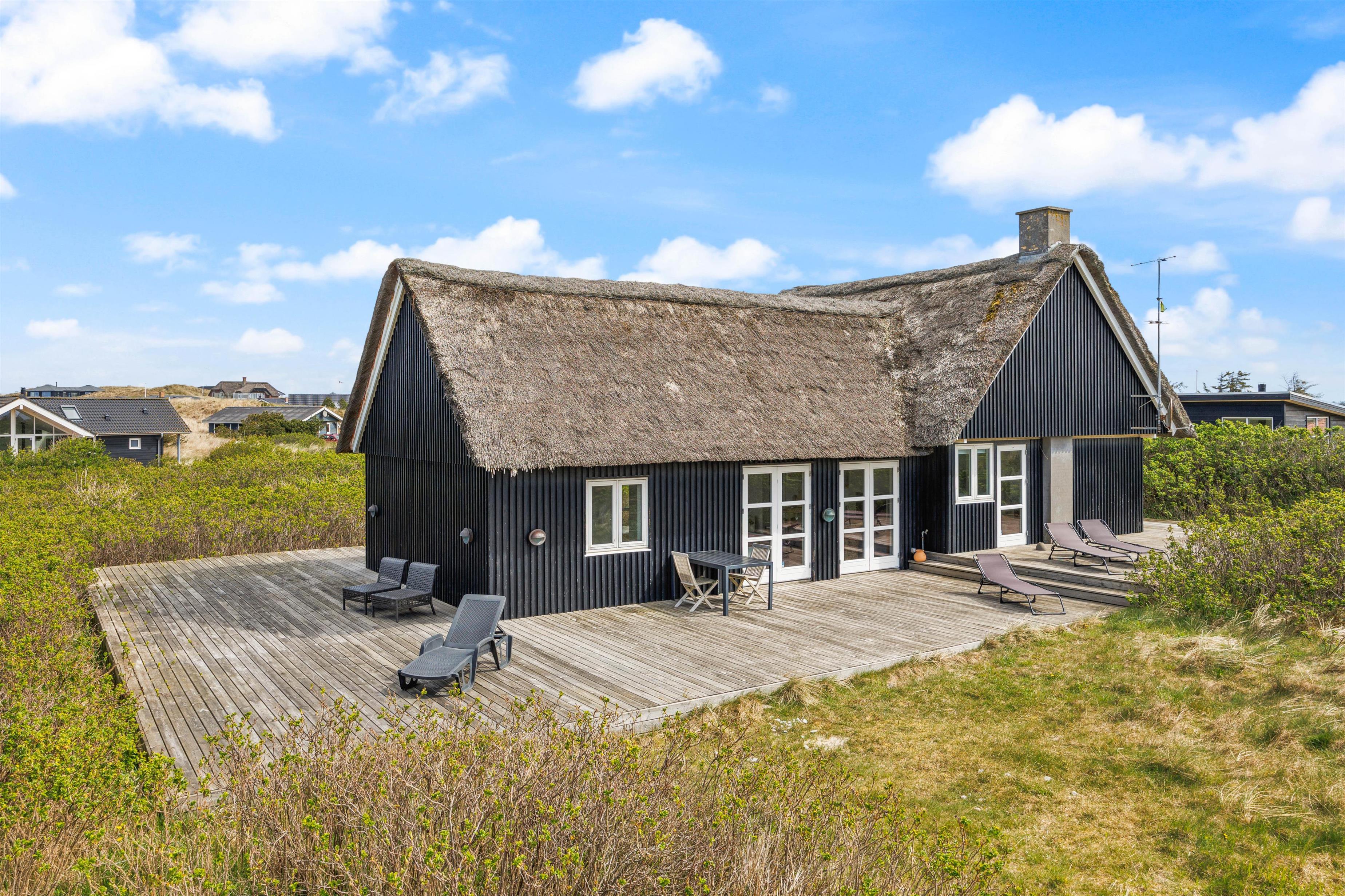 Når I tilbringer tid på terrassen, kan I høre lyden af brændingen i baggrunden. Vesterhavet ligger nemlig kun 450 meter fra feriehuset. Dermed vil det heller ikke tage lang tid for jer at nå frem til de smukke strande og brusende bølger.