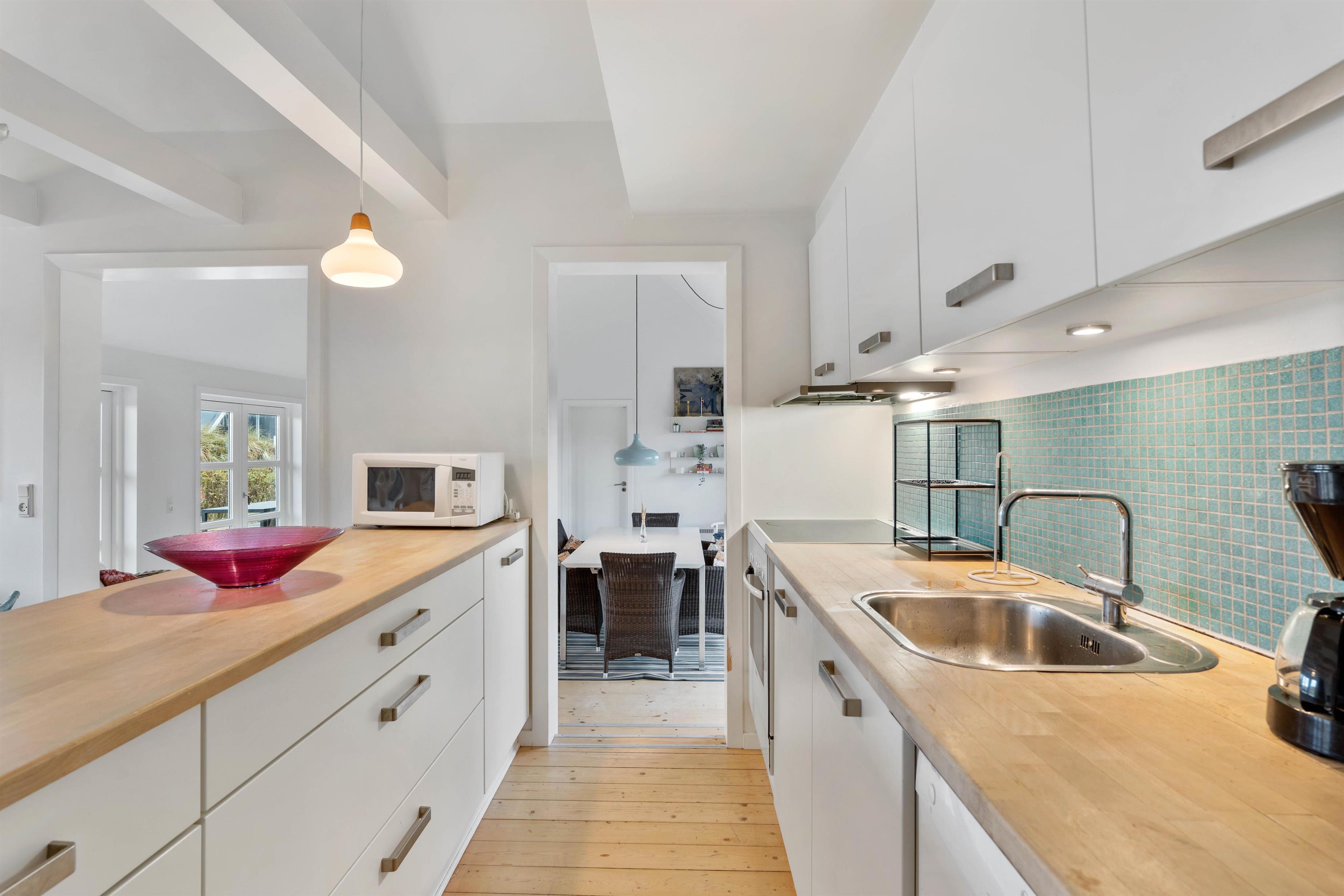 I sommerhuset er der lagt op til, at I kan tilbringe mange hyggelige stunder i løbet af ferien. Her ligger køkken, stue og spiseplads nemlig i åben forbindelse, så I har mulighed for at være sammen om at lave mange forskellige ting i løbet af ferien. I kan også nyde hinandens selskab, selvom I laver forskellige ting i alrummet.