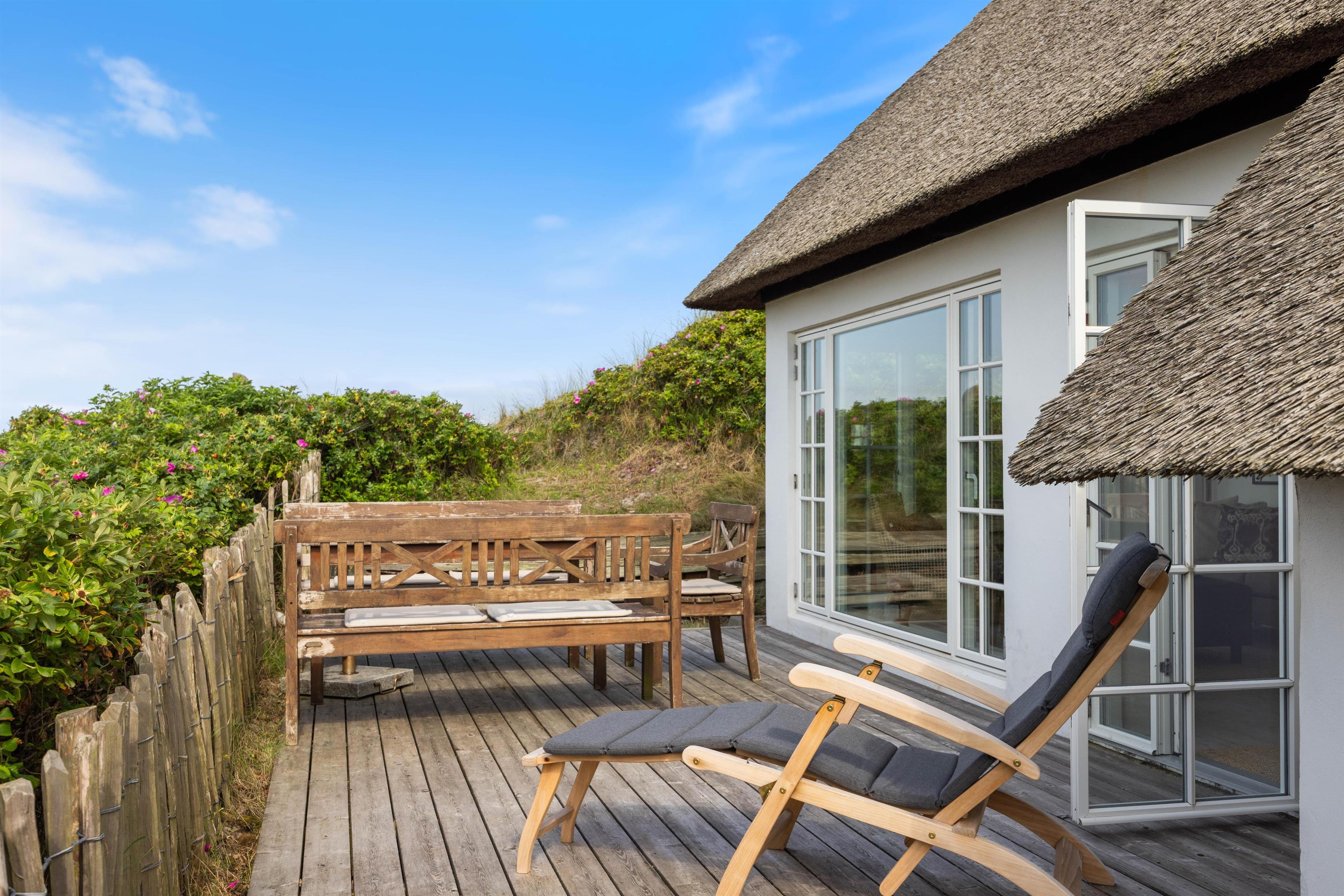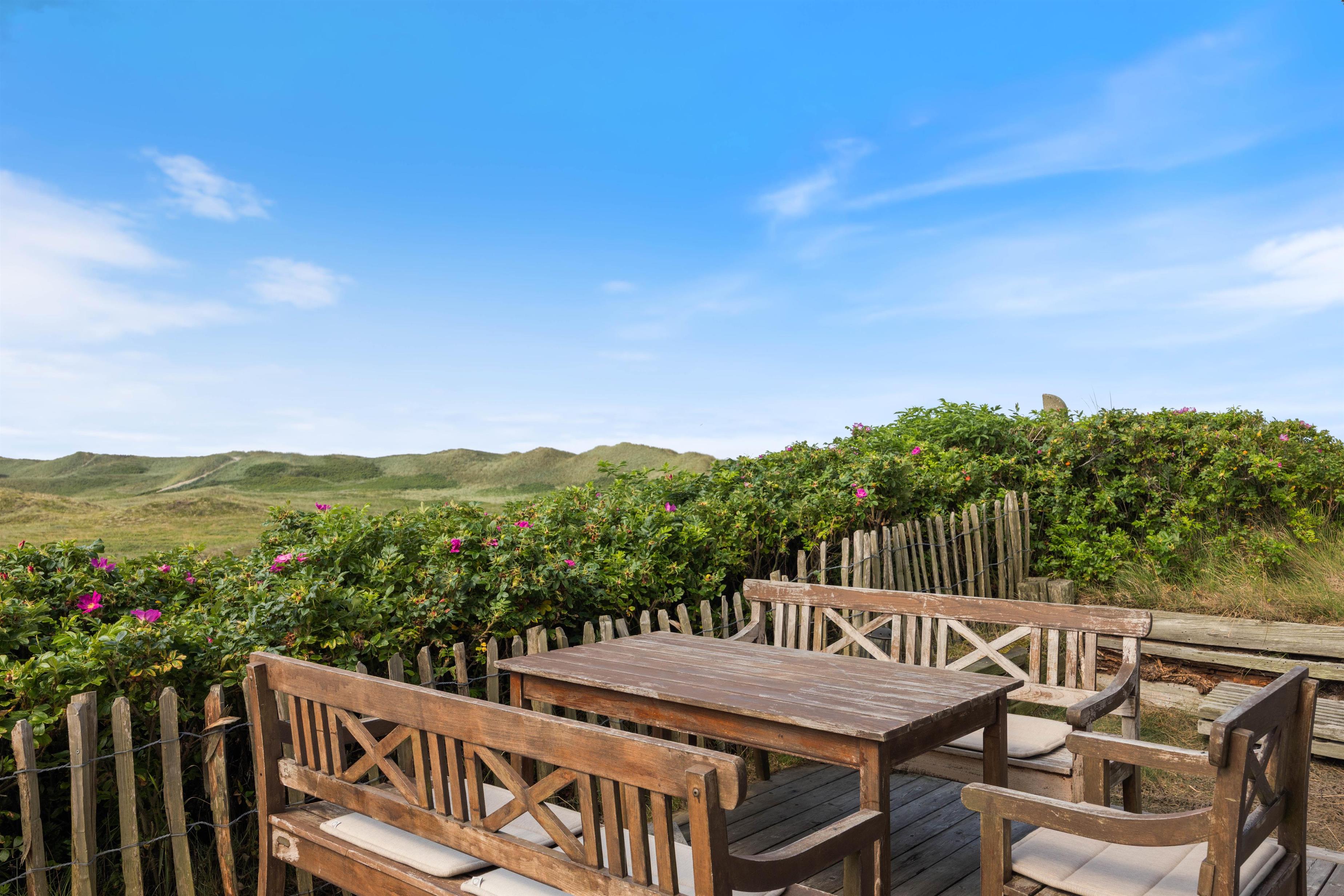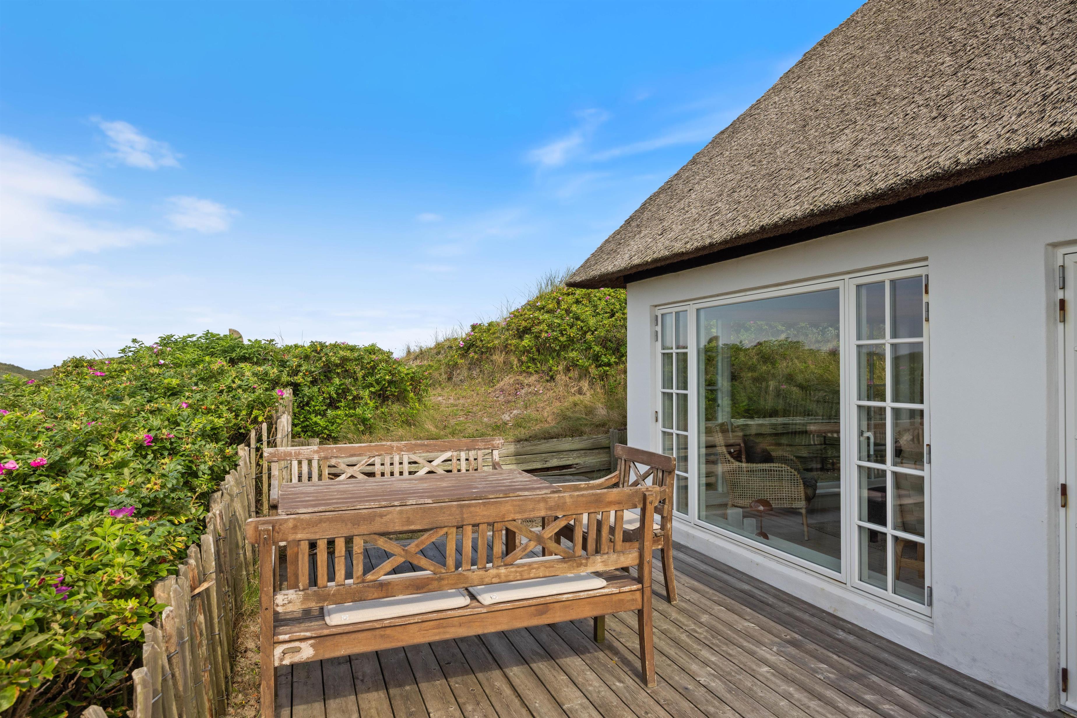 Udenfor på den afskærmet terrasse, har I et dejligt og fantastisk panoramaudsigt over klitterne i området og der er selvfølgelig sørget for havemøbler til at slænge jer i. Der er også en grill, som kan hjælpe med at tilberede en fantastisk grillmiddag på de dejlige sommeraftenener. Tæt på sommerhuset er der en garage, som I må parkere i.
