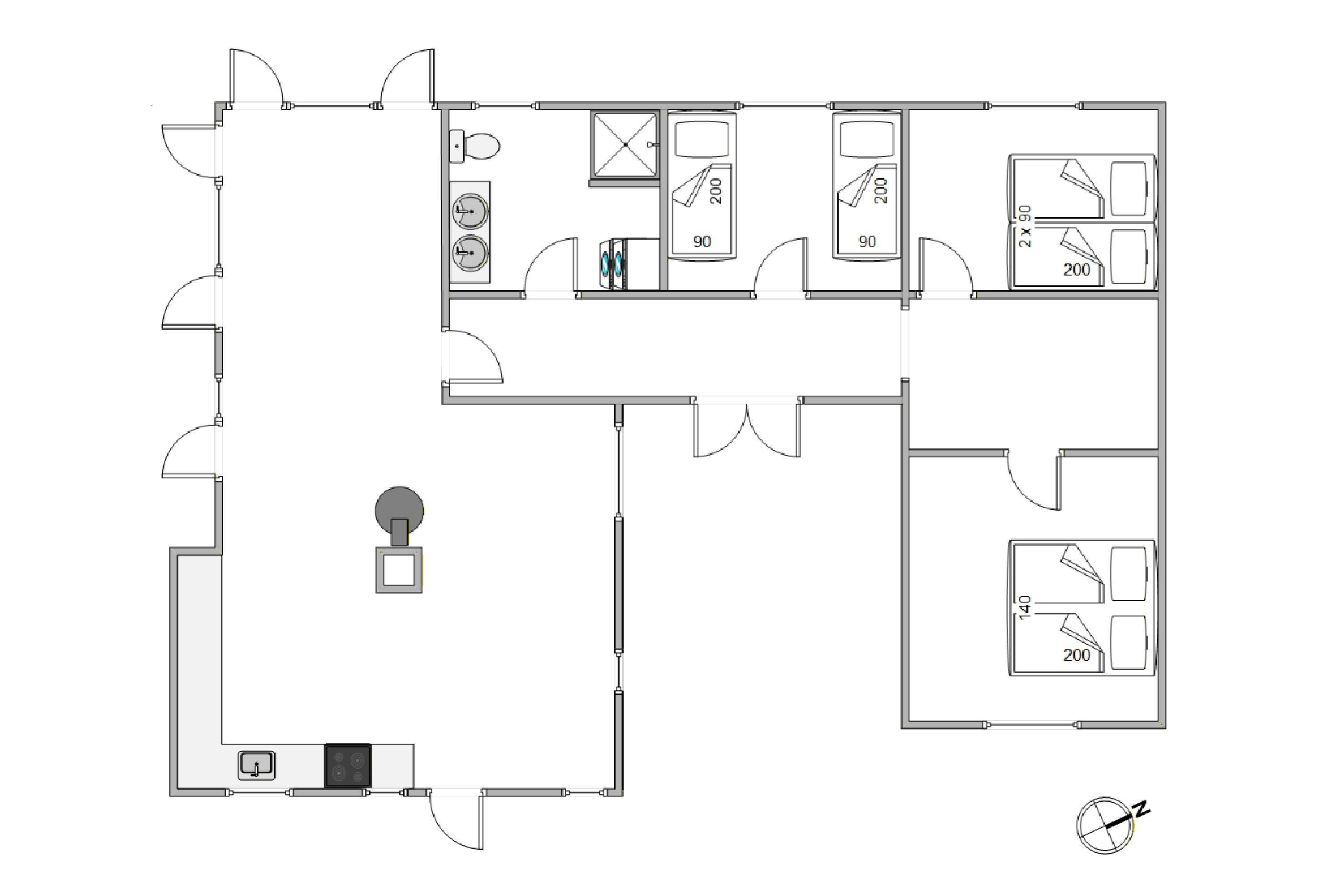 Sommerhuset er indrettet med to soverum, der giver jer ro og afslapning efter en dejlig feriedag. I det ene soveværelse finder I en dobbeltseng og det andet soveværelset er udstyret med to enkelsenge, der er ideelt til børn eller et vennepar.