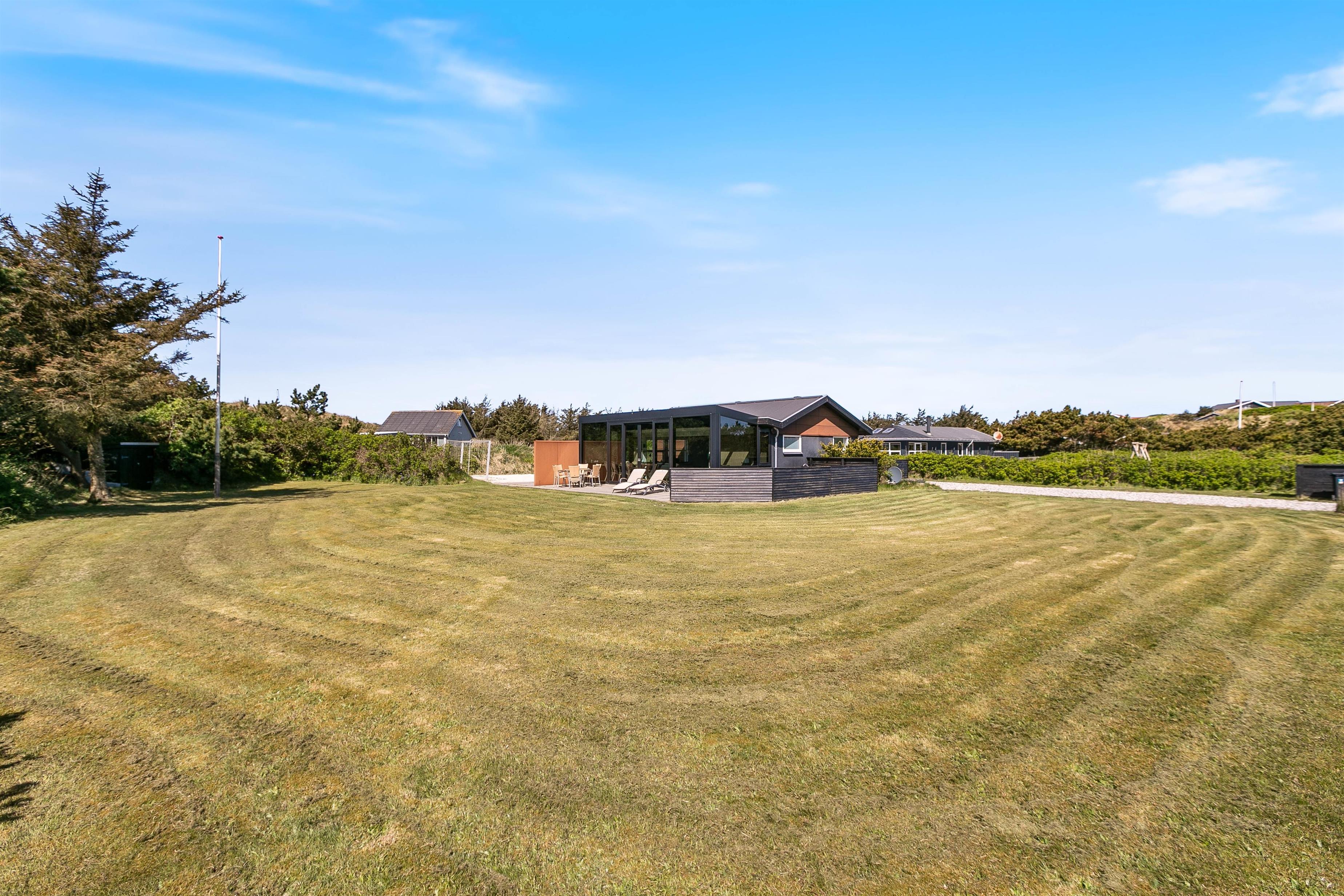 Omgivet af en skøn naturgrund finder i et ideelt miljø til afslapning. Sandet på sommerhusets grund giver de små gæster mulighed for at slå sig løs med at bygge et sandslot, mens I voksne kan slappe af i de behagelige havemøbler. Terrassen indbyder til dejlige sommeraftener hvor I kan tilberede lækre måltider på grillen og bare nyde den friske luft. Med en afskærmet del af terrassen har I også mulighed for at nyde den friske luft og slappe af i private omgivelser.